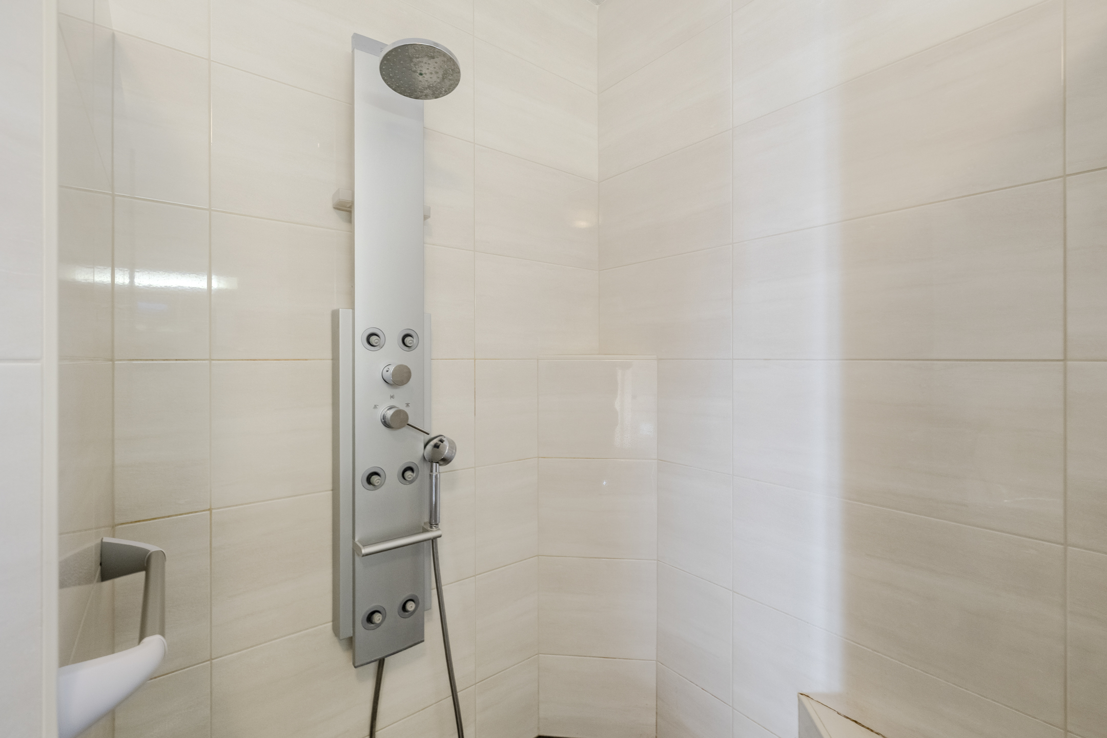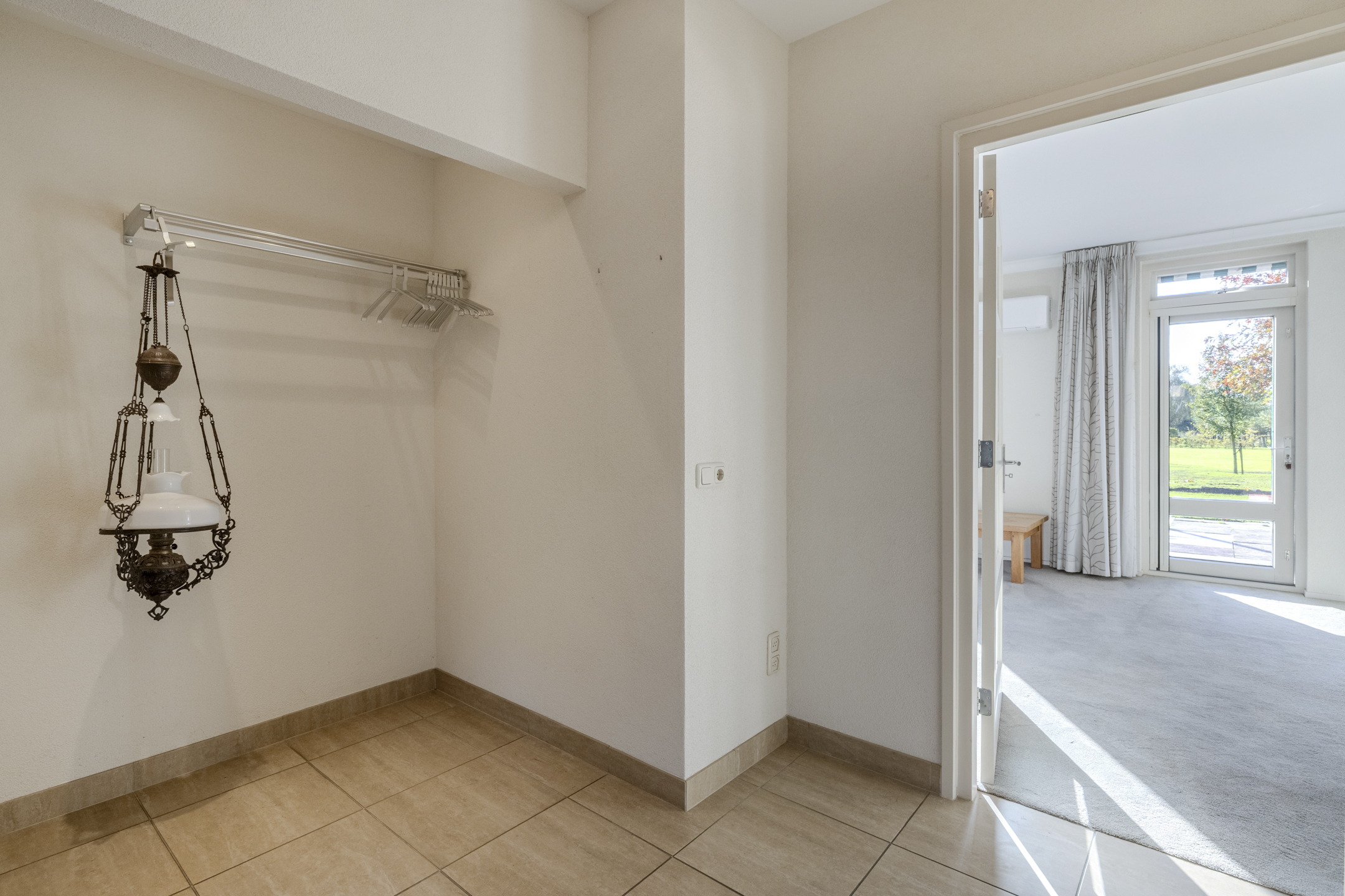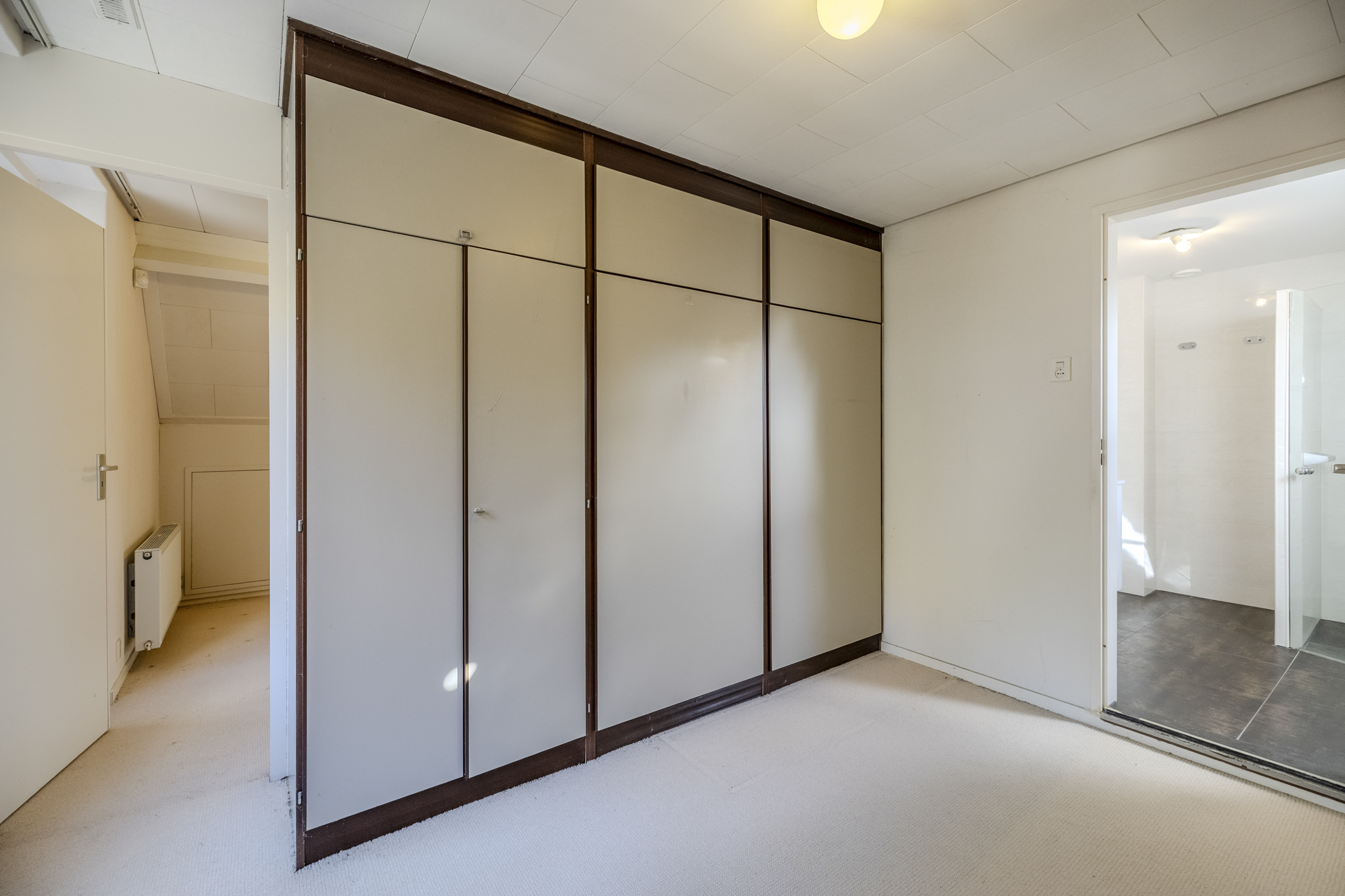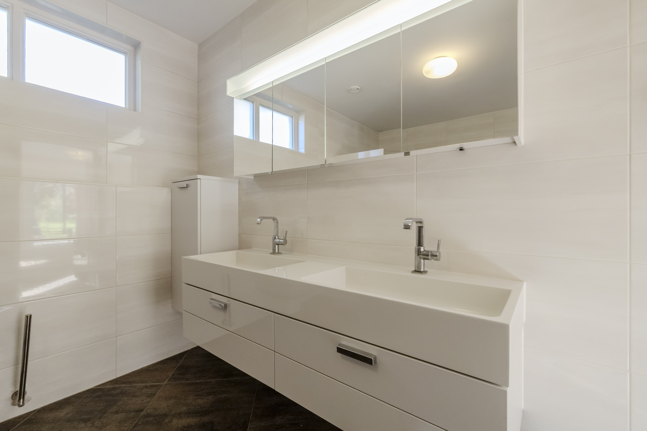 Vanuit de hal/achterom toegang tot de bijkeuken met witgoedaansluitingen grote slaapkamer (ca. 30 m²) met directe verbinding naar de luxe badkamer, uitgerust met dubbele wastafel, inloopdouche en whirlpool.