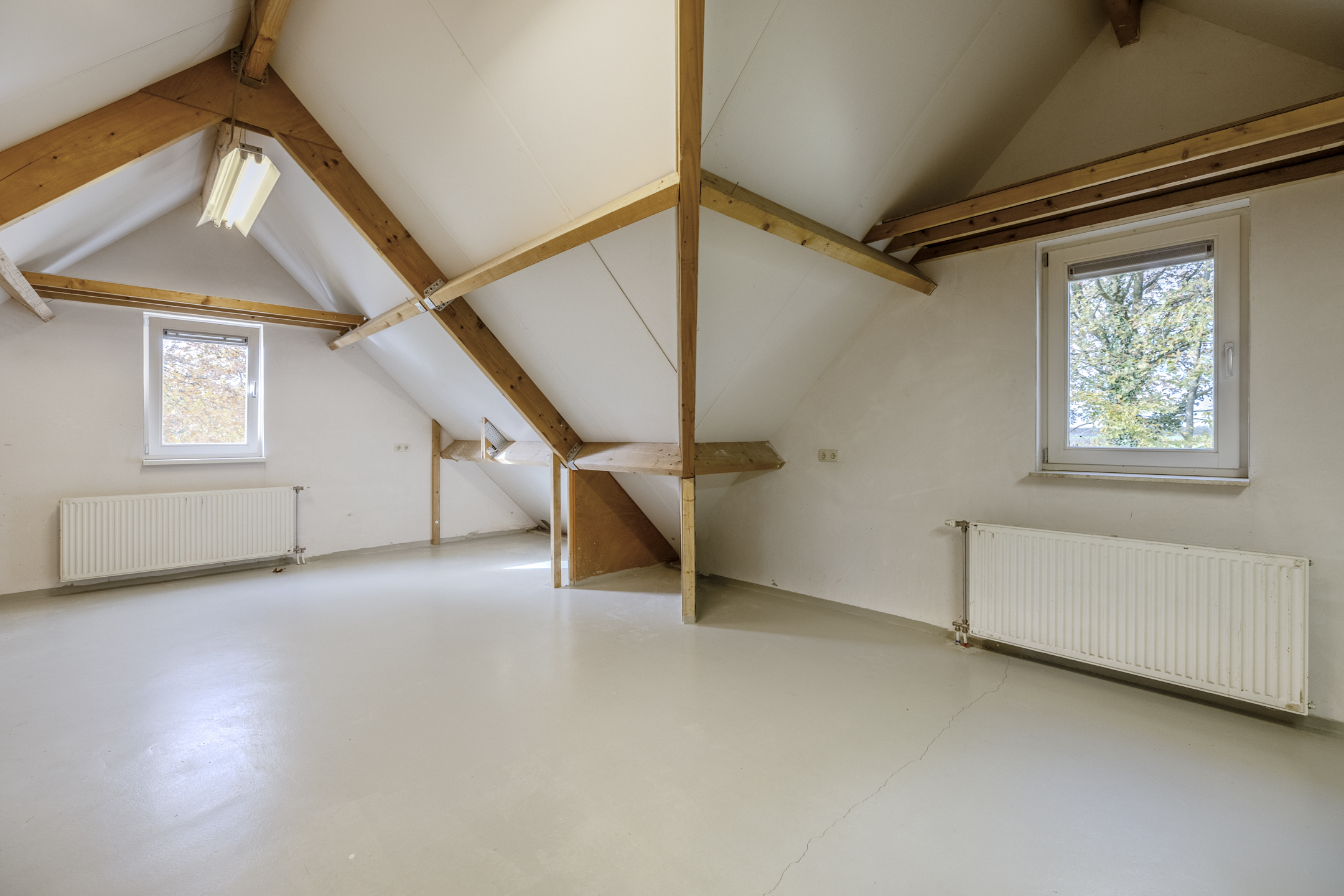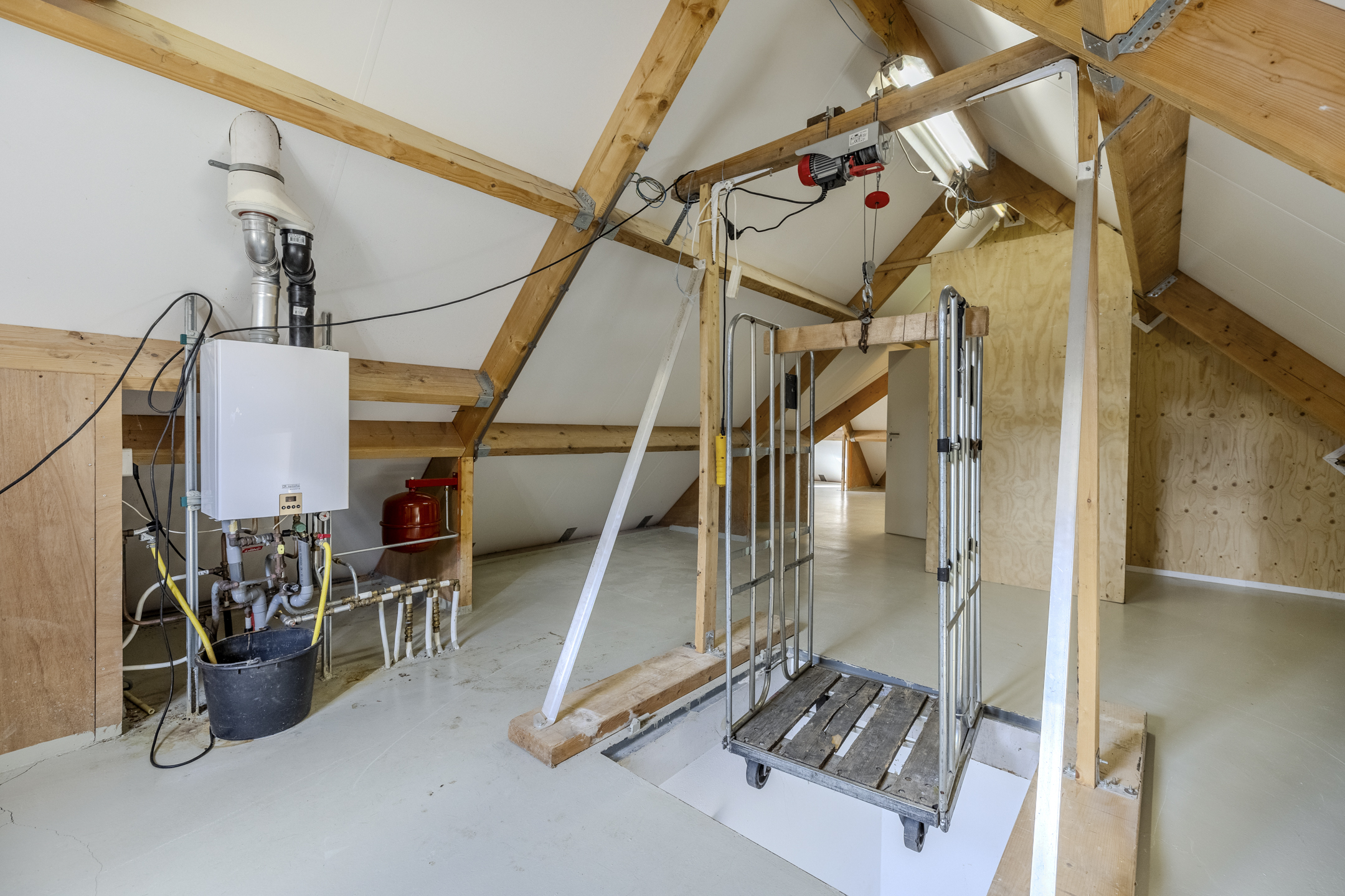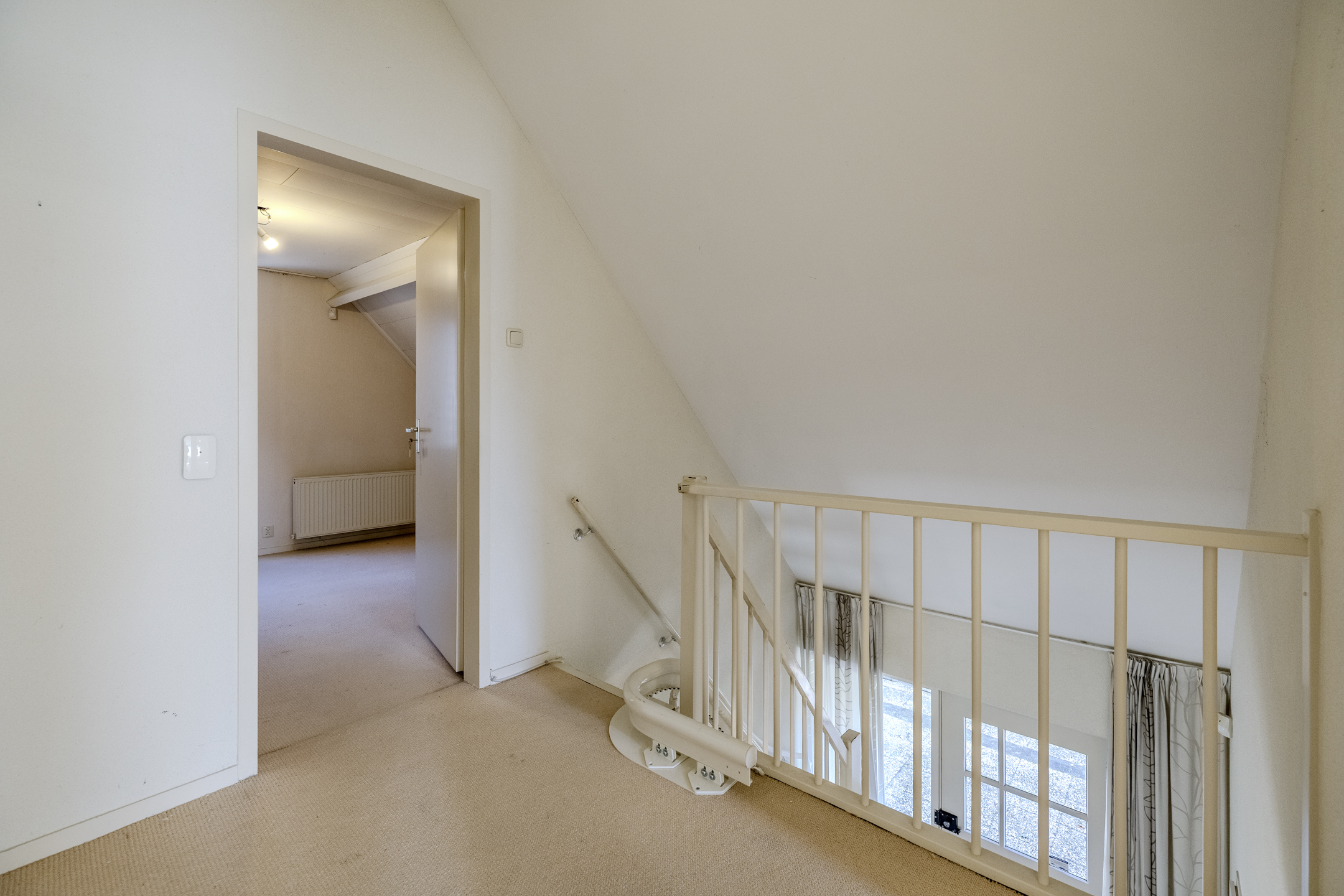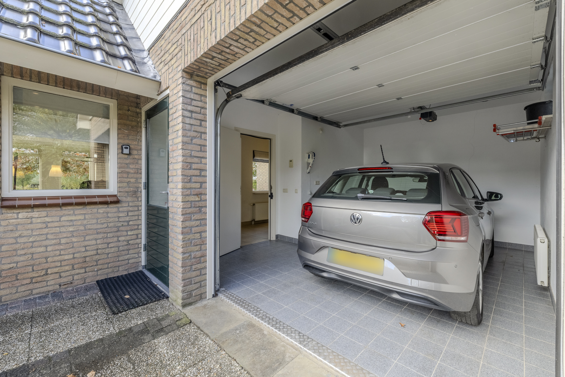De woning beschikt over een geïsoleerde en verwarmde inpandige garage met vliering, loopdeur en elektrische overheaddeur. Boven de garage bevindt zich extra ruimte die bereikbaar is via een vaste trap vanuit de bijkeuken, ideaal voor het creëren van één of twee extra kamers.