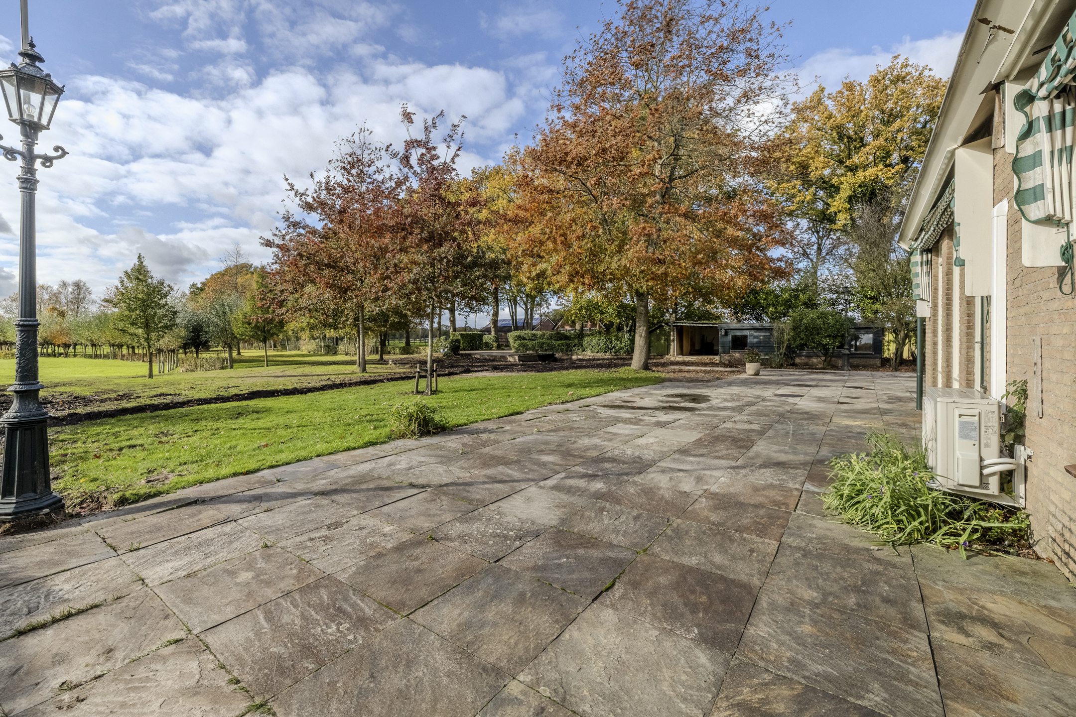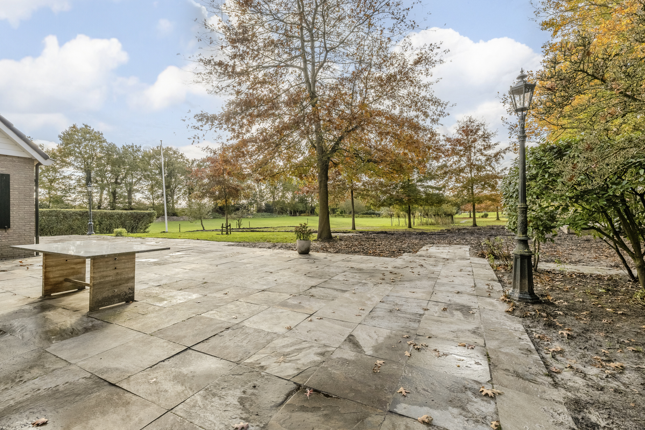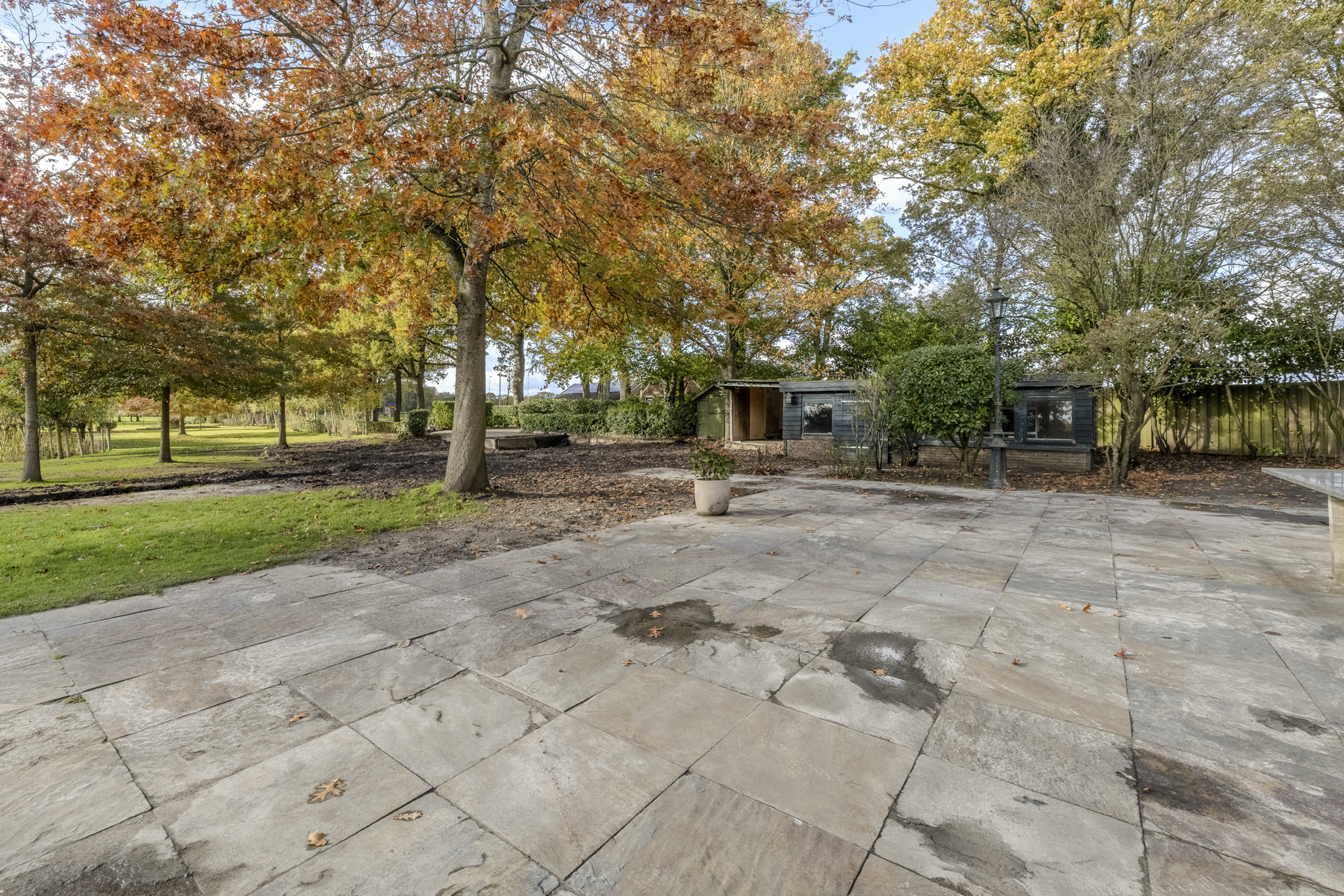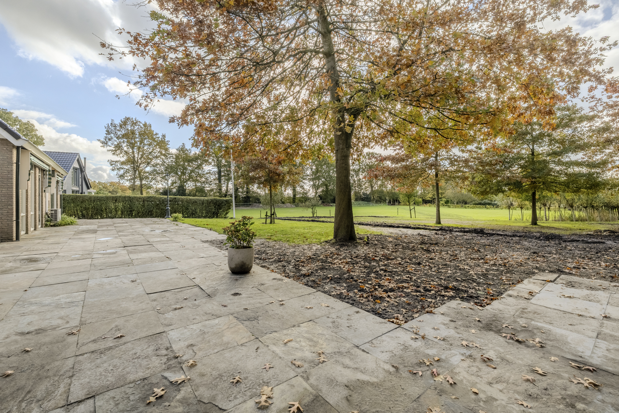 De tuin is rondom de woning gelegen, biedt volop privacy en heeft een gunstige ligging op het zuidwesten. De oprit biedt voldoende ruimte om meerdere auto’s op eigen terrein te parkeren.