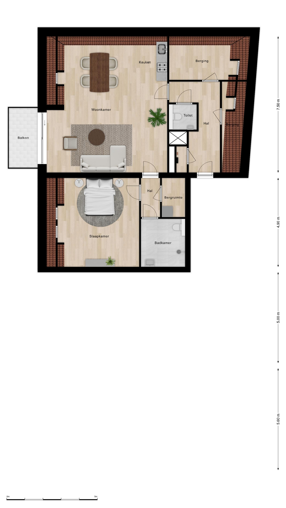 Entree met (separaat) toilet, technische ruimte, badkamer met toilet, berging, vrij in te delen ruimte, woonkamer, open keuken, één slaapkamer en balkon