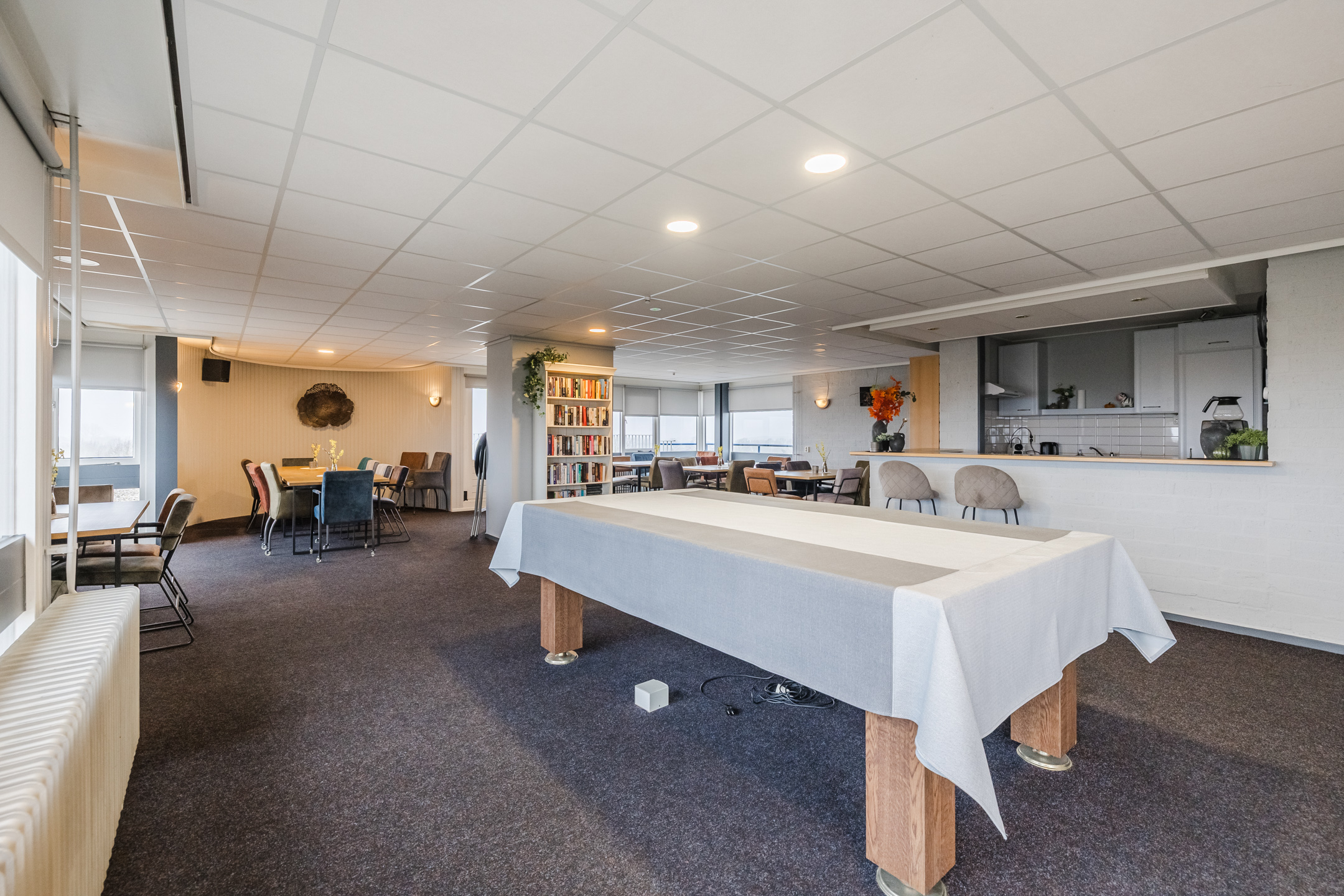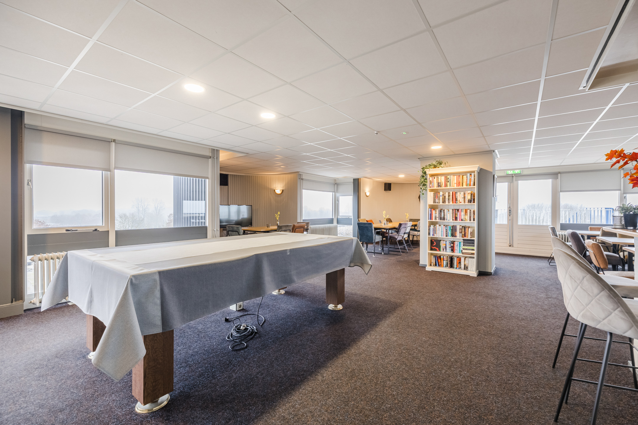 De ruime recreatieruimte met gemeenschappelijk dakterras kan door iedere bewoner gebruikt worden.
