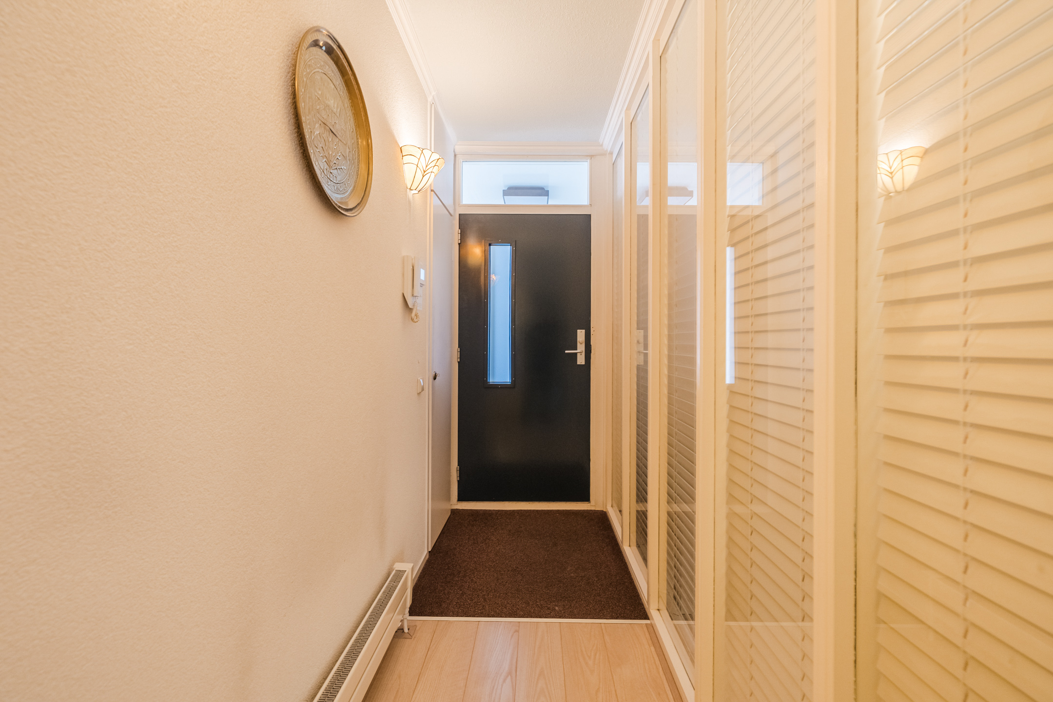 Entree met garderobe, lichte en ruim bemeten woonkamer met schuifpui naar het zonnige balkon, halfopen keuken met enige inbouwapparatuur, bijkeuken met witgoedaansluitingen en CV-ketel (2015), toilet, badkamer met een ligbad, inloopdouche en wastafel en een ruime slaapkamer.