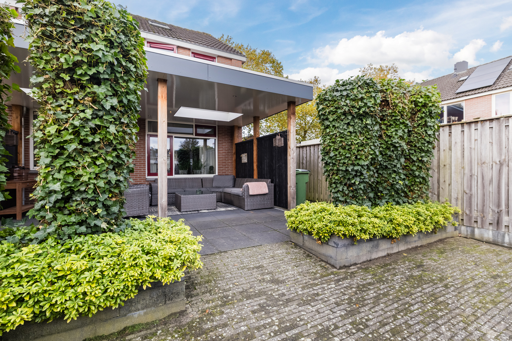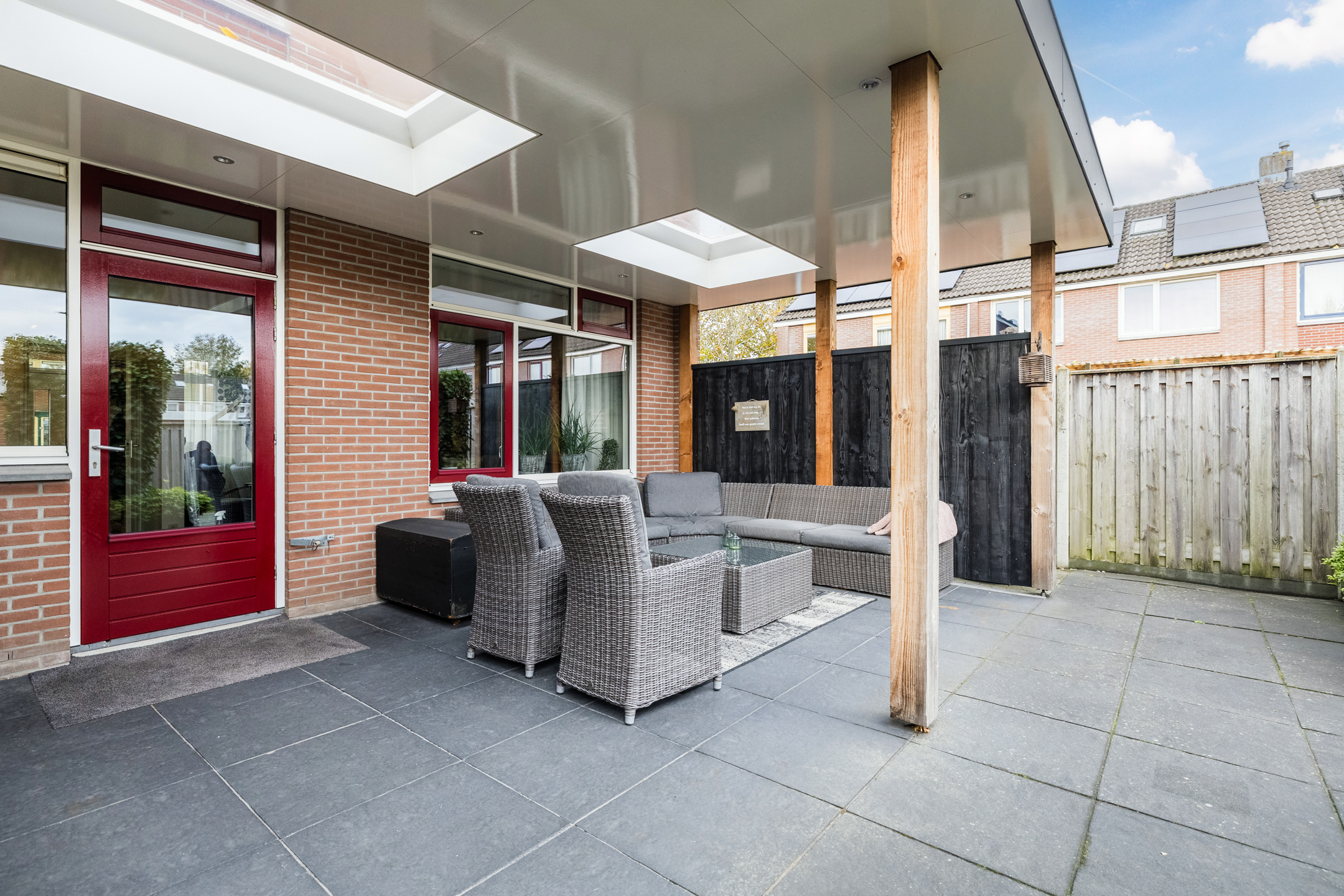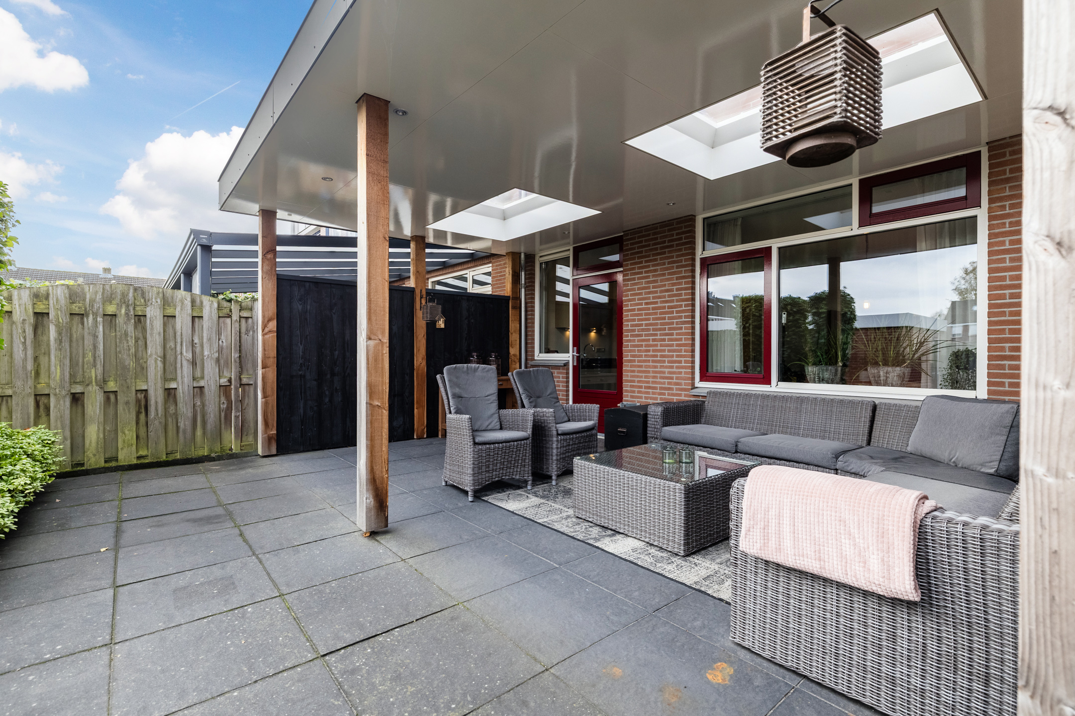 – Achtertuin met een overkapping