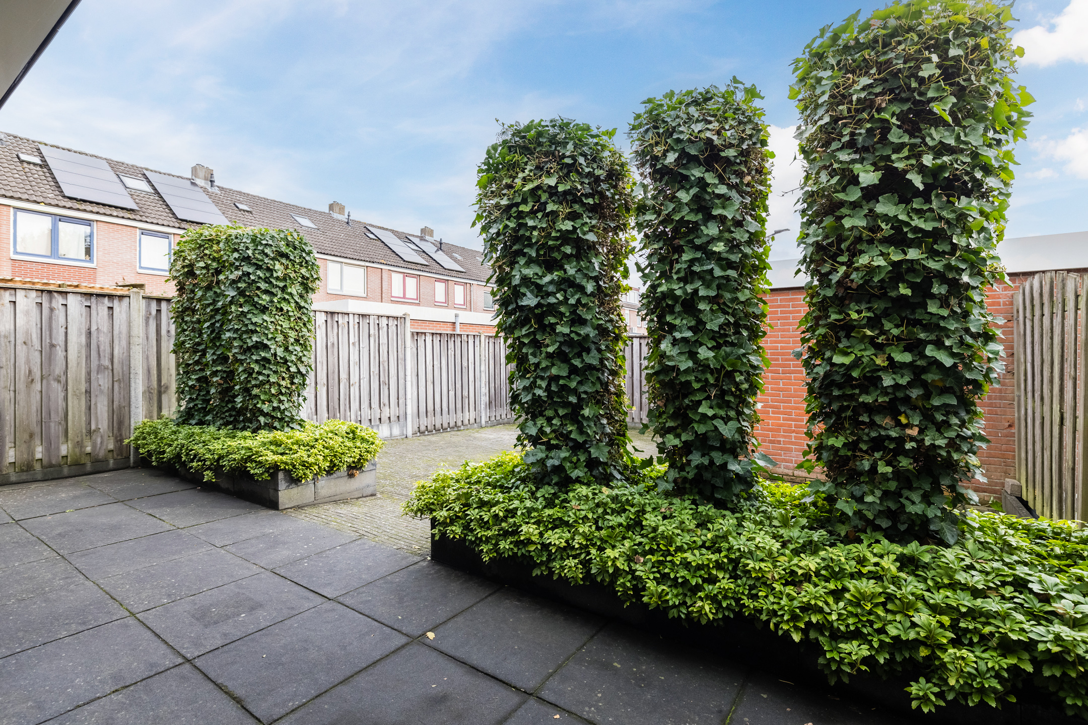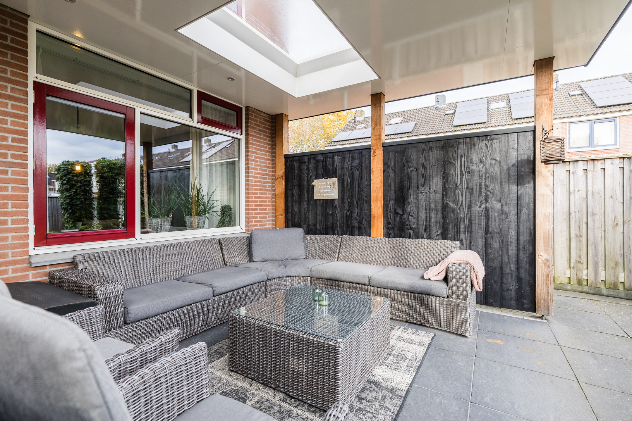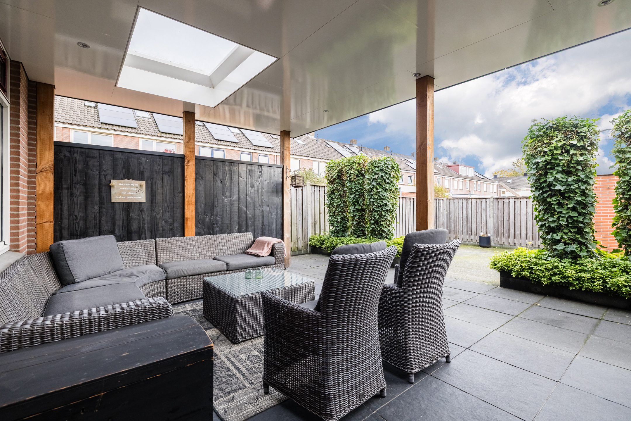 – Achtertuin met een overkapping