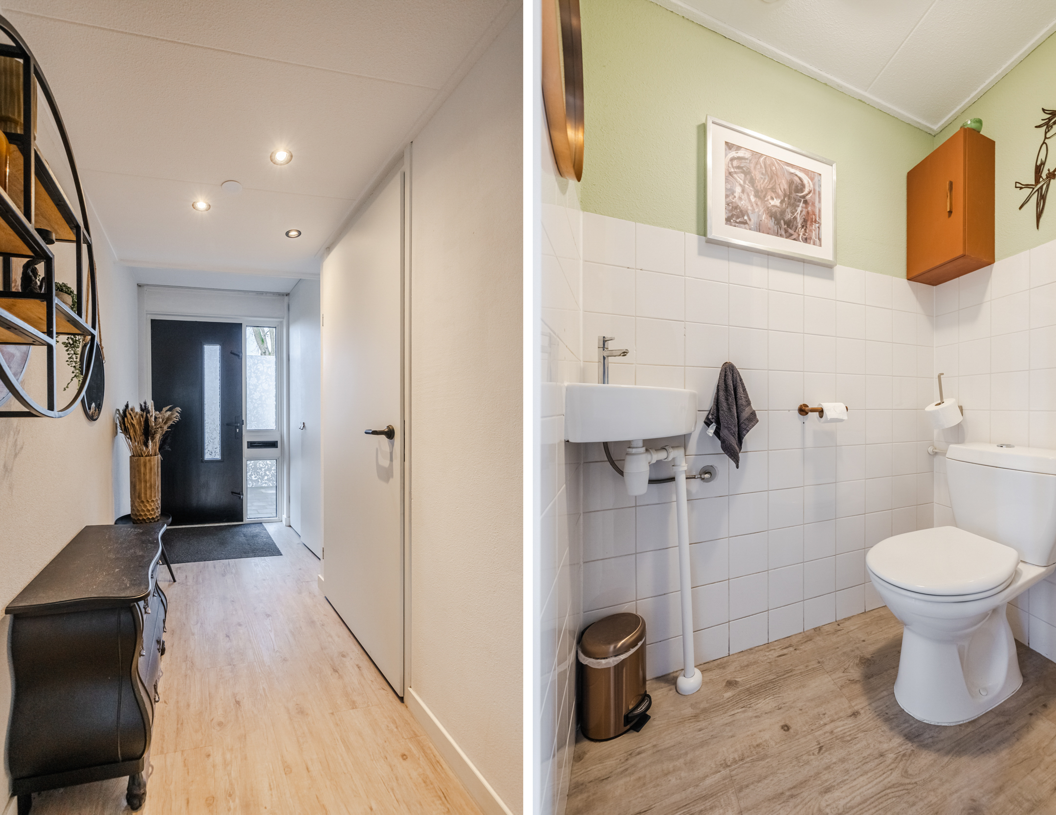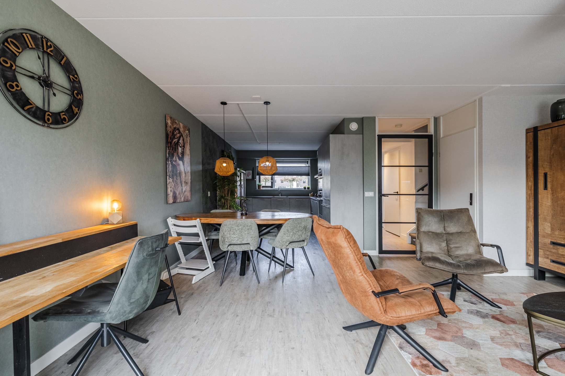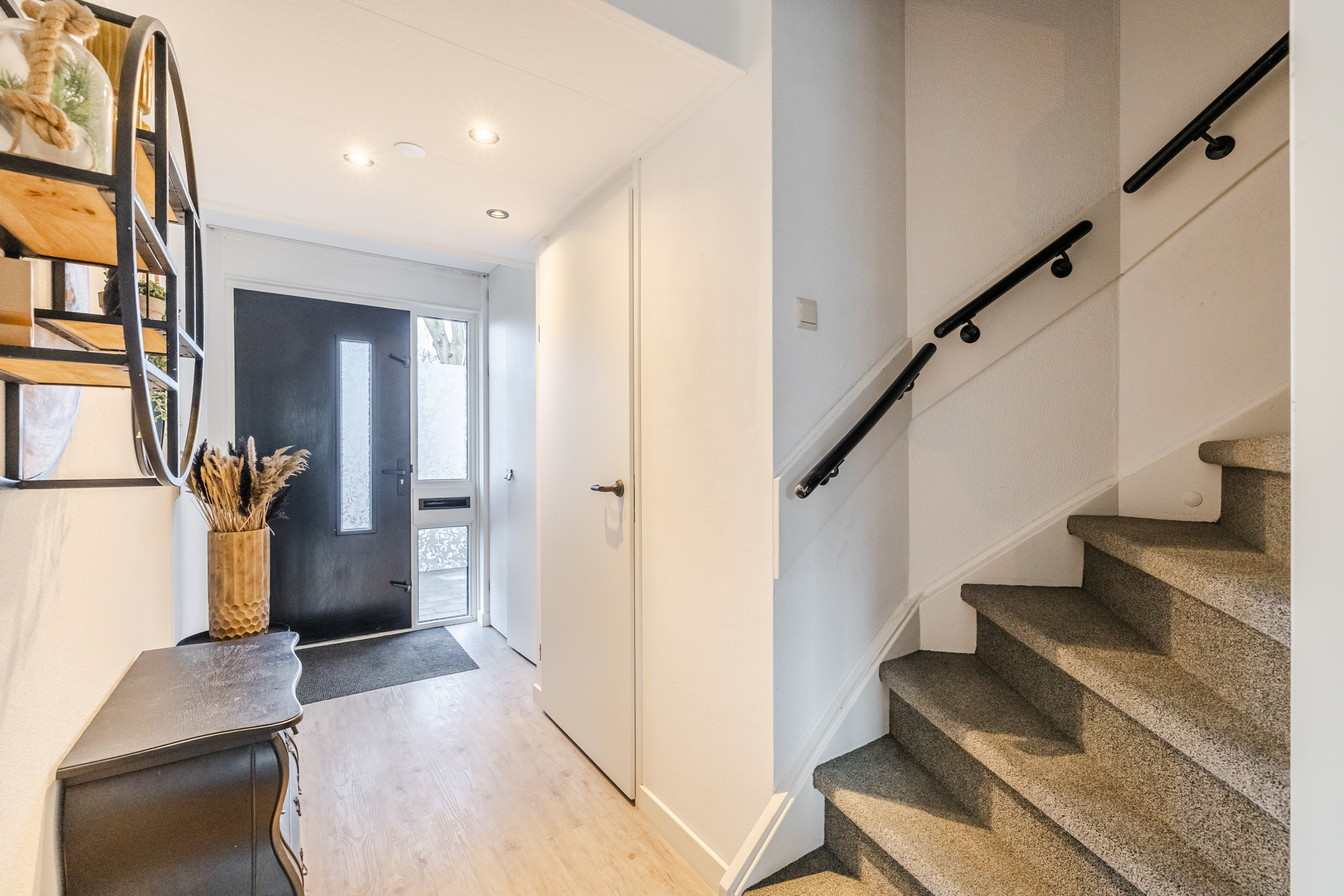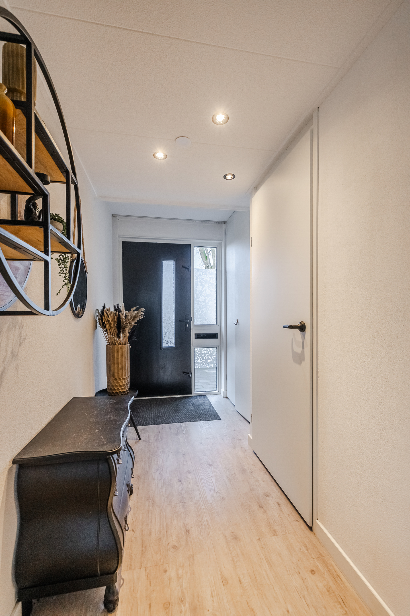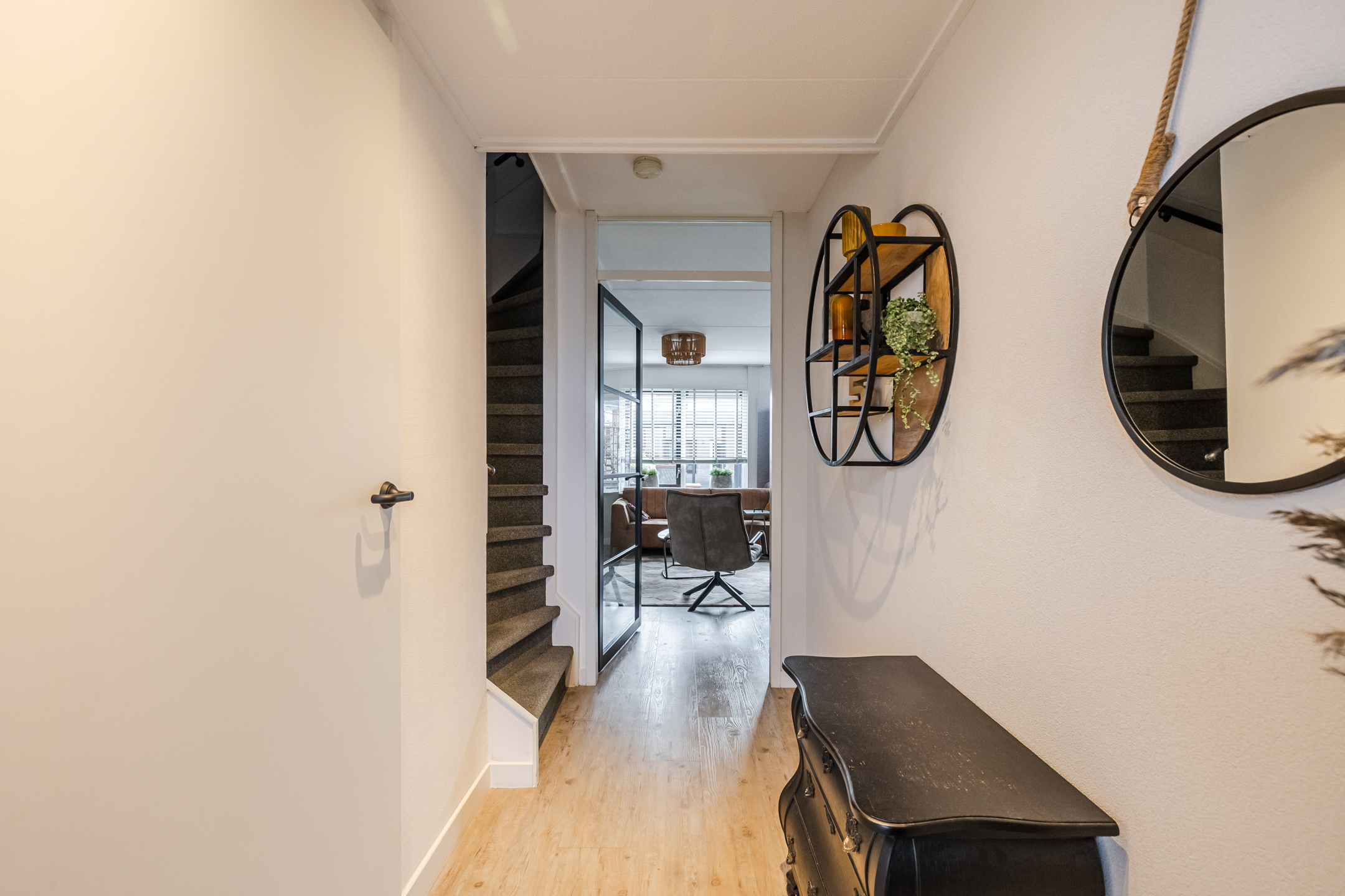 De begane grond is volledig voorzien van vloerverwarming en een pvc-vloer. In de ruime hal is een praktische inbouwgarderobe aanwezig.