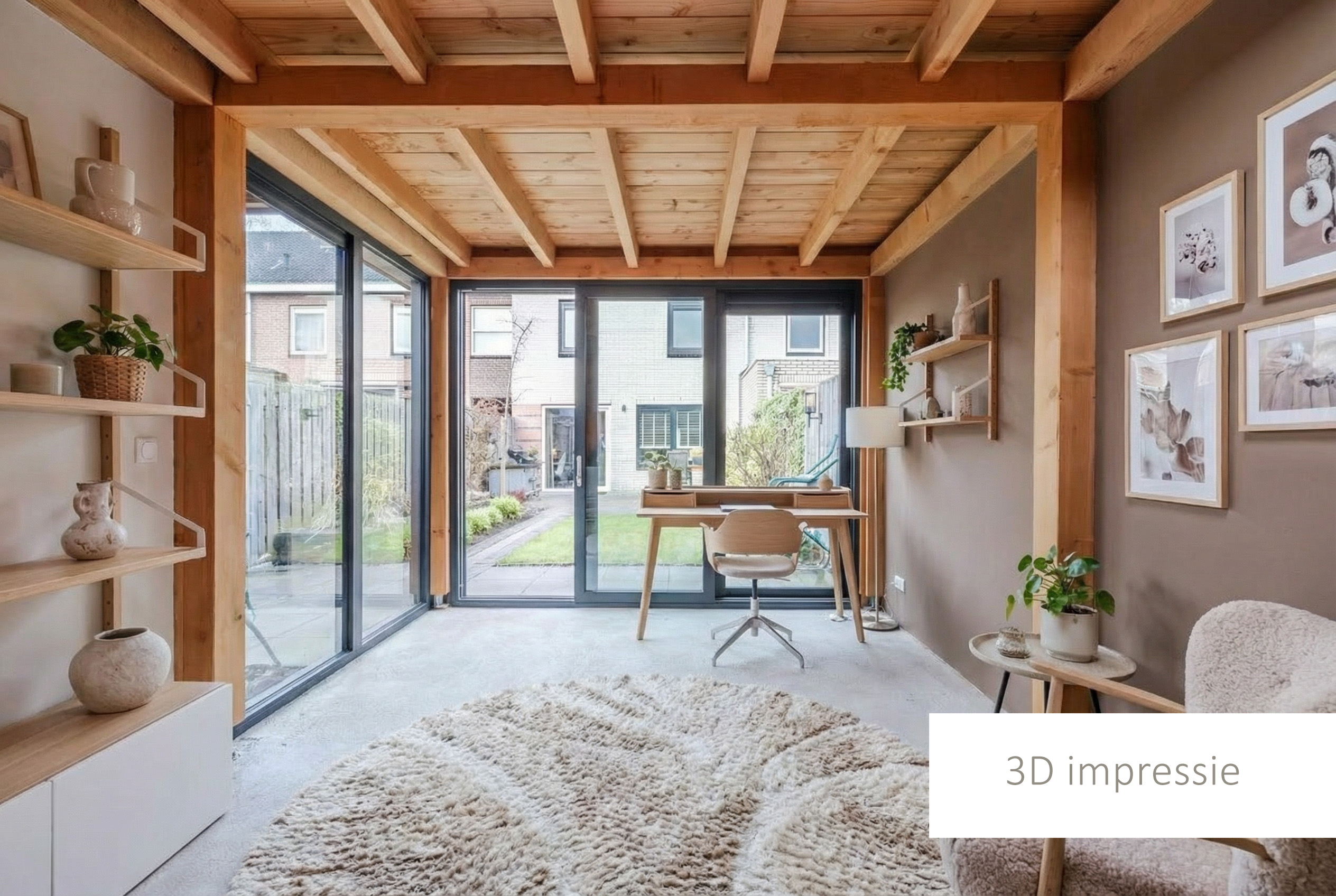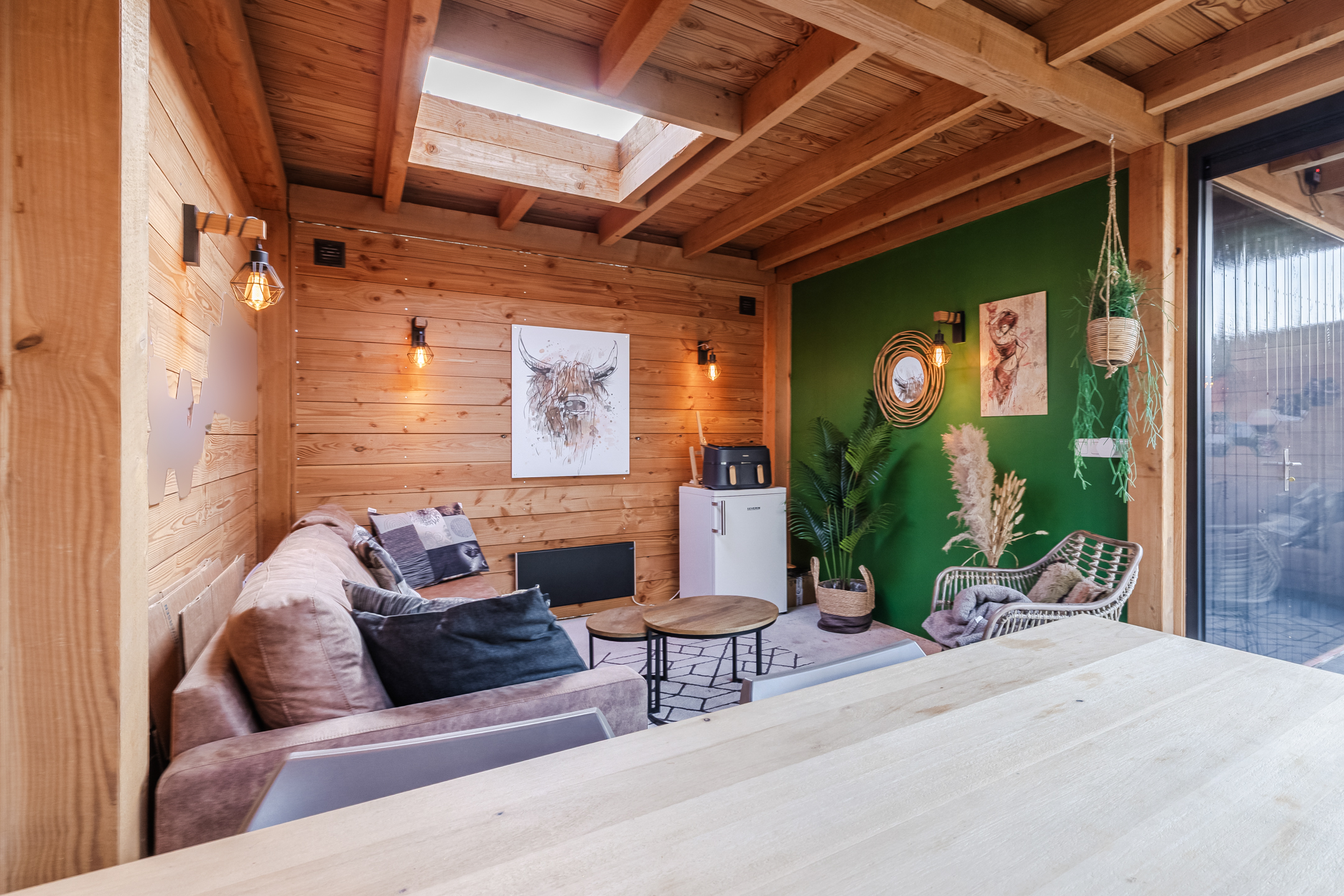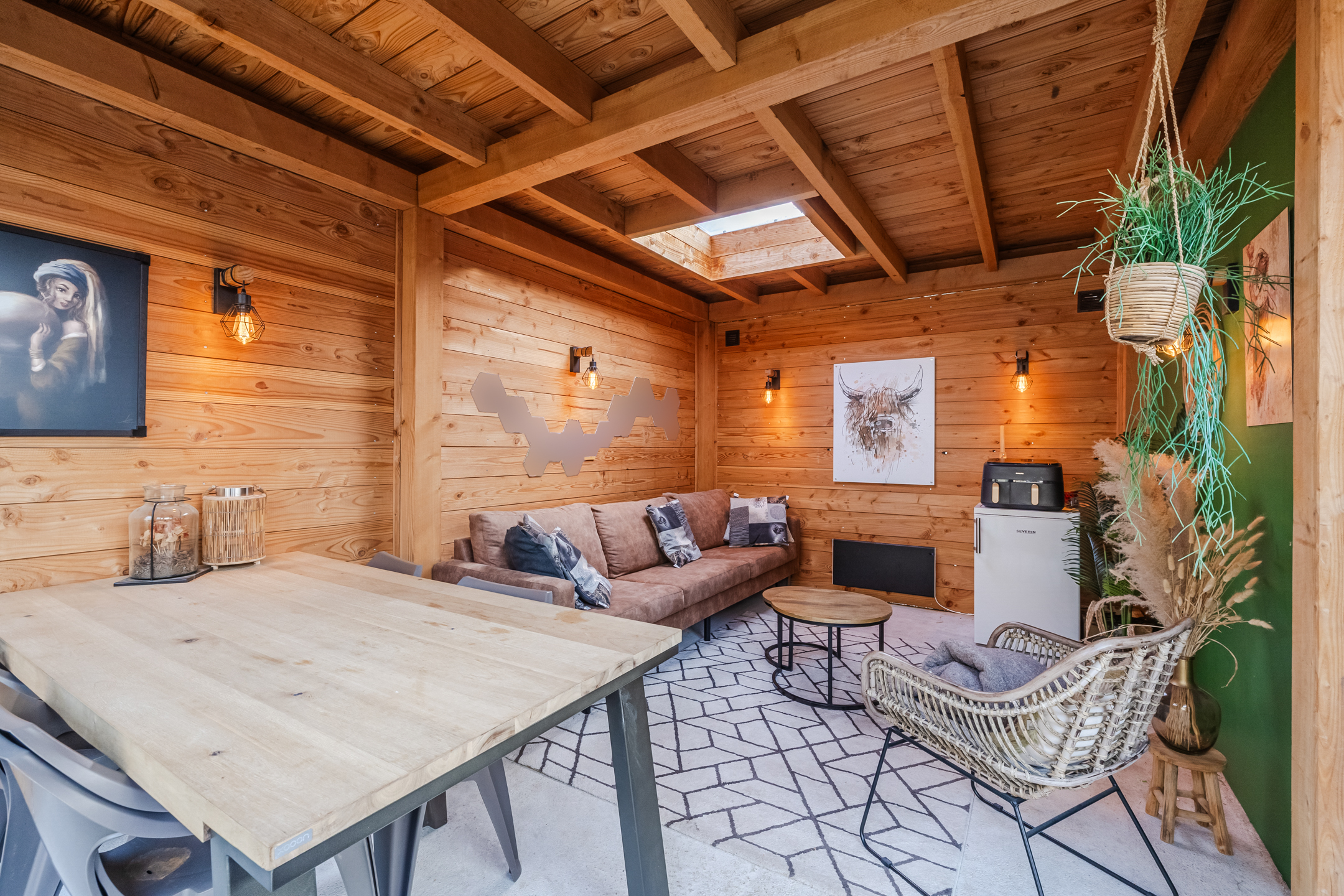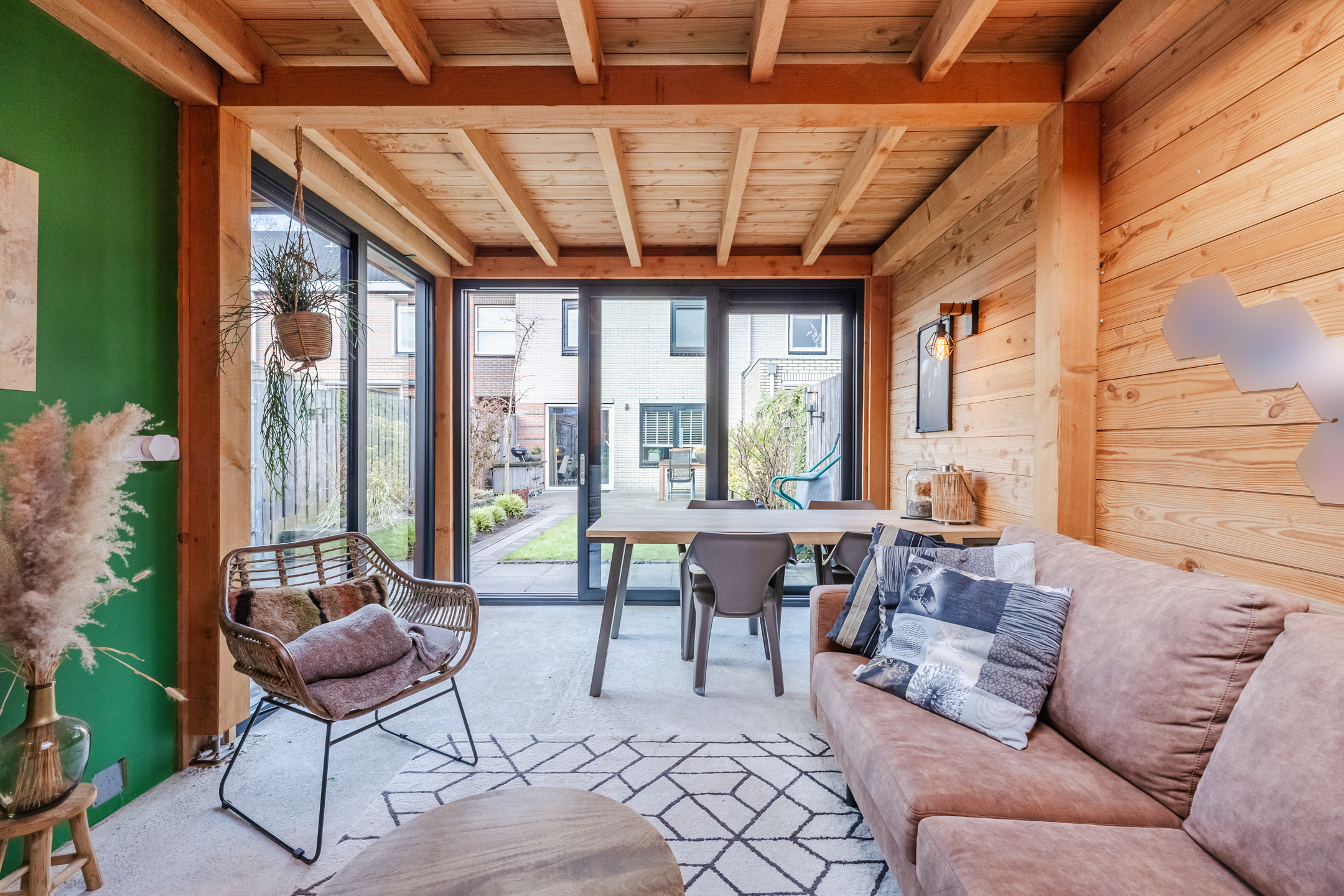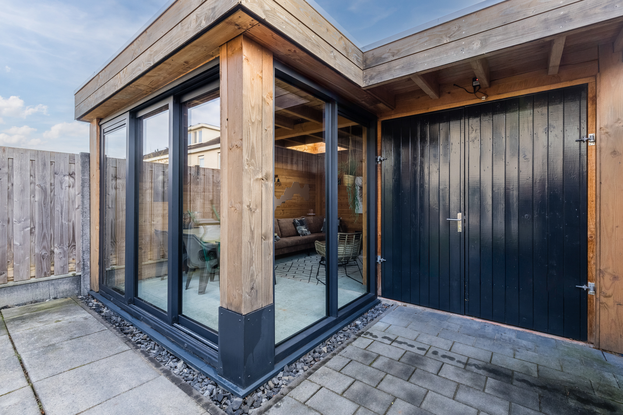 De tuin, aangelegd in 2020, ligt op het oosten. Dit zorgt voor veel zon tot in de middag en in de zomer juist voor aangename schaduw op het terras. Aansluitend bevindt zich de geïsoleerde tuinkamer (2020) met hoog plafond en schuifpui met dubbelglas. Deze ruimte is goed warm te stoken en daardoor geschikt als extra kamer, werkruimte of hobbyruimte.