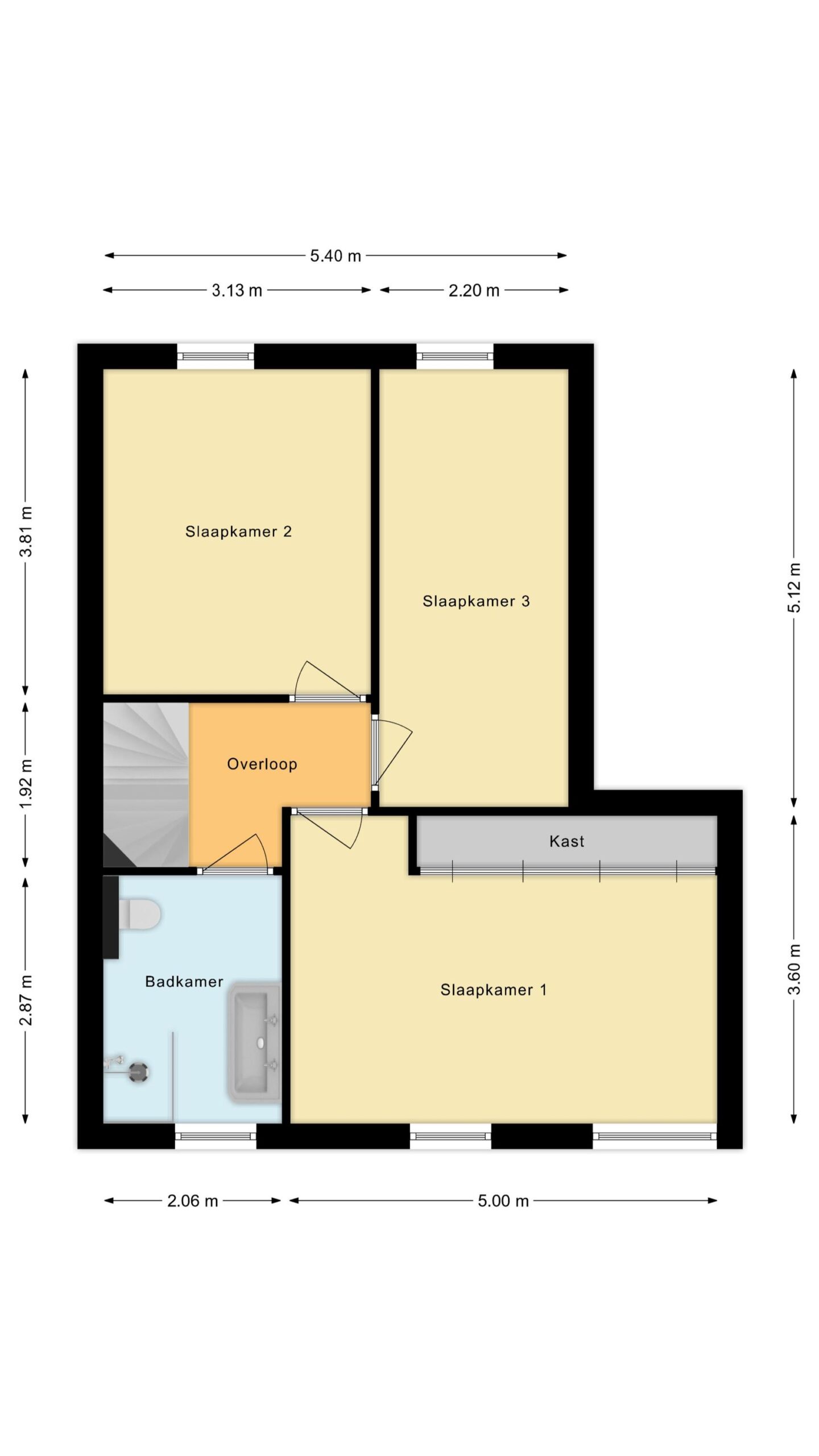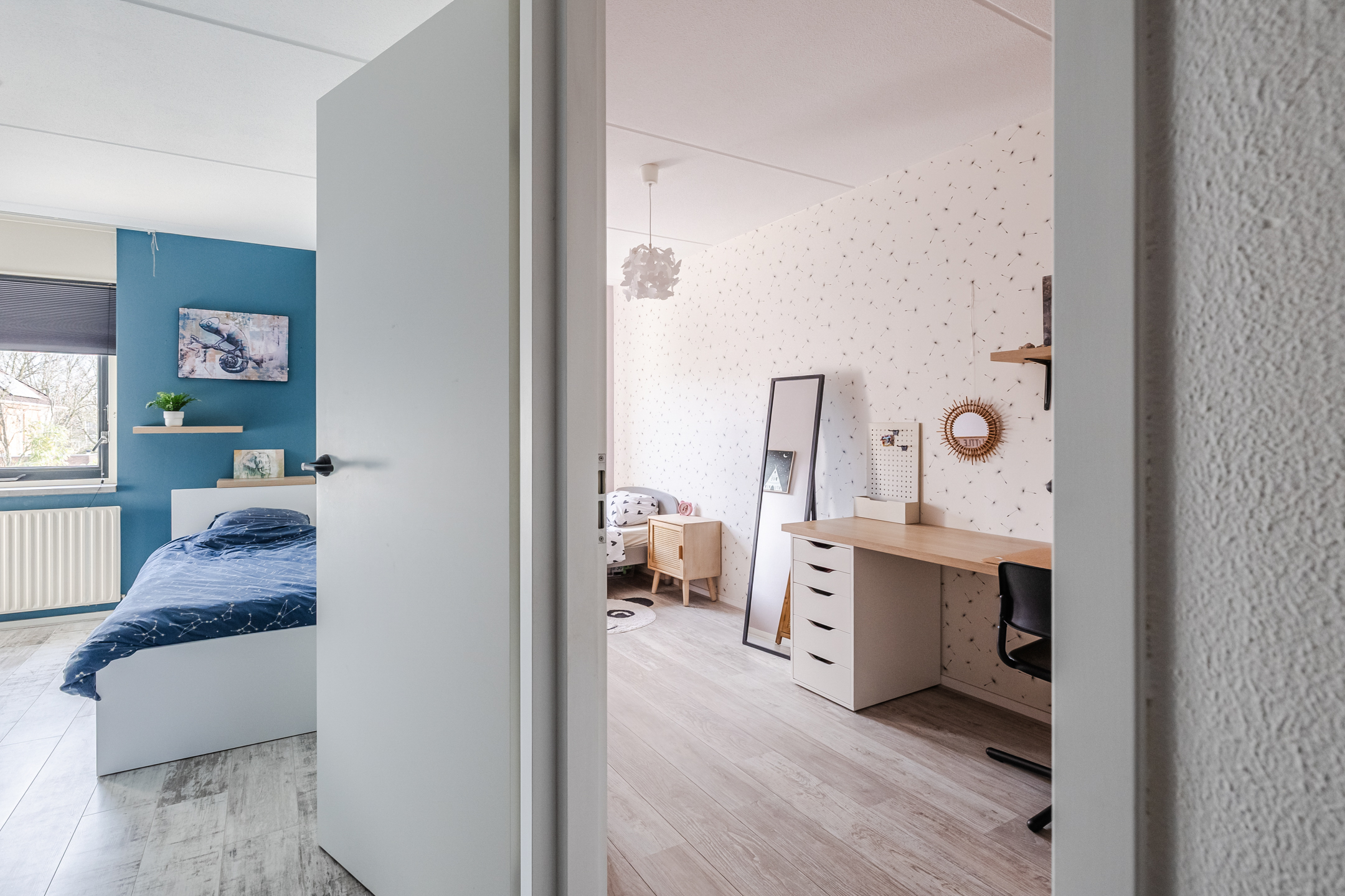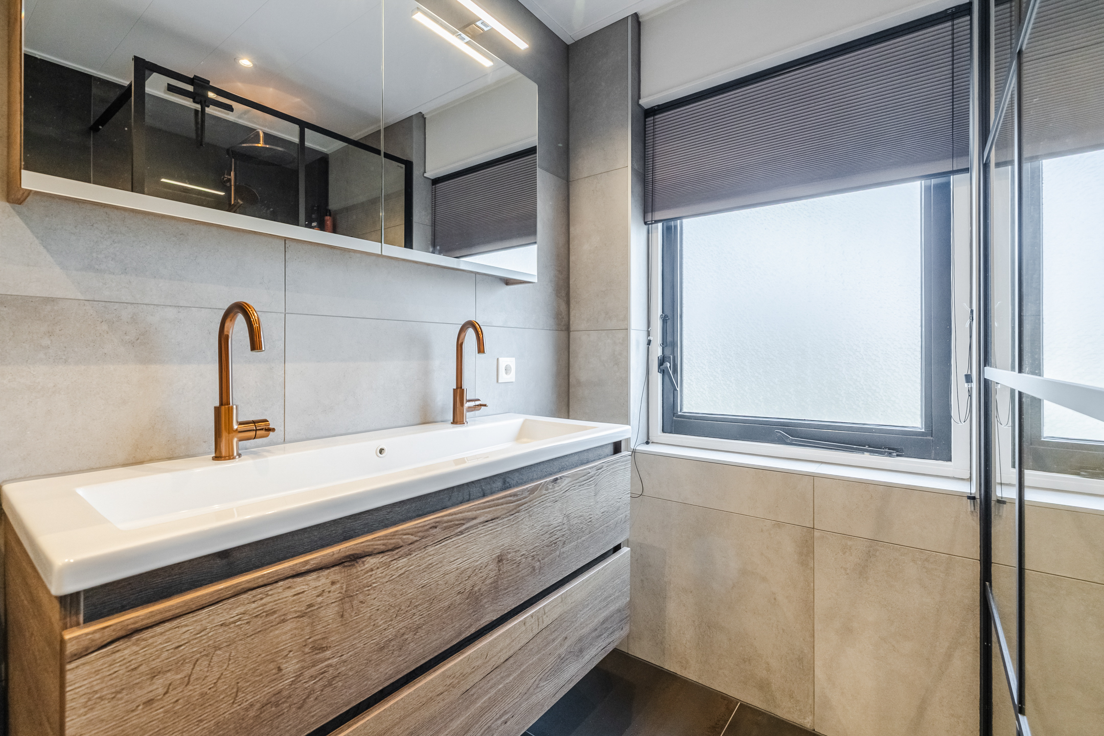 Op de eerste verdieping zijn drie ruime slaapkamers en een moderne badkamer (2023) met dubbele wastafel en veel ruimte.