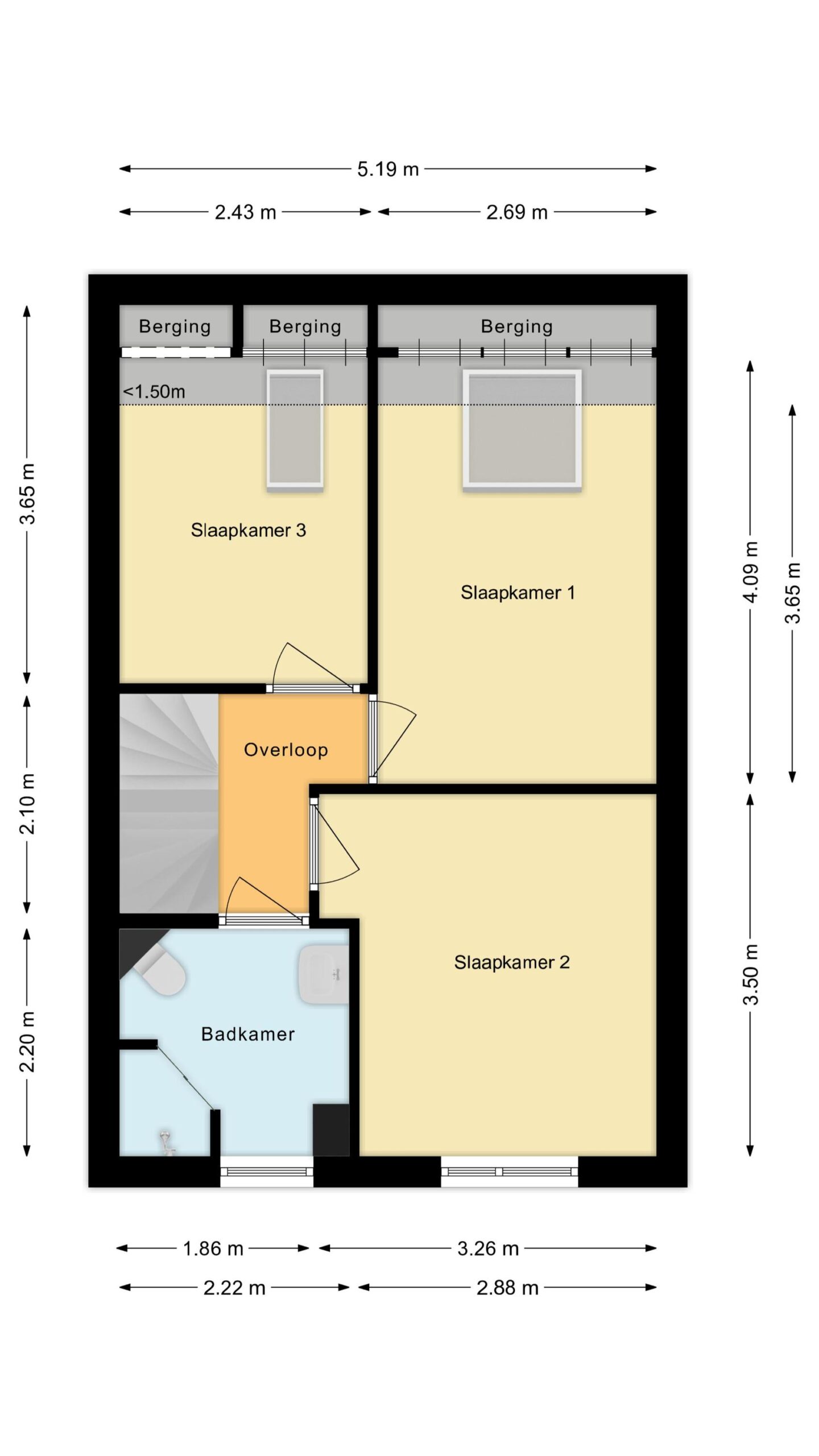 Via de overloop bereik je 3 slaapkamers, waarvan 3 zijn voorzien van praktische knieschotten. De kamers zijn goed van formaat en bieden volop mogelijkheden voor slapen, werken of hobby.