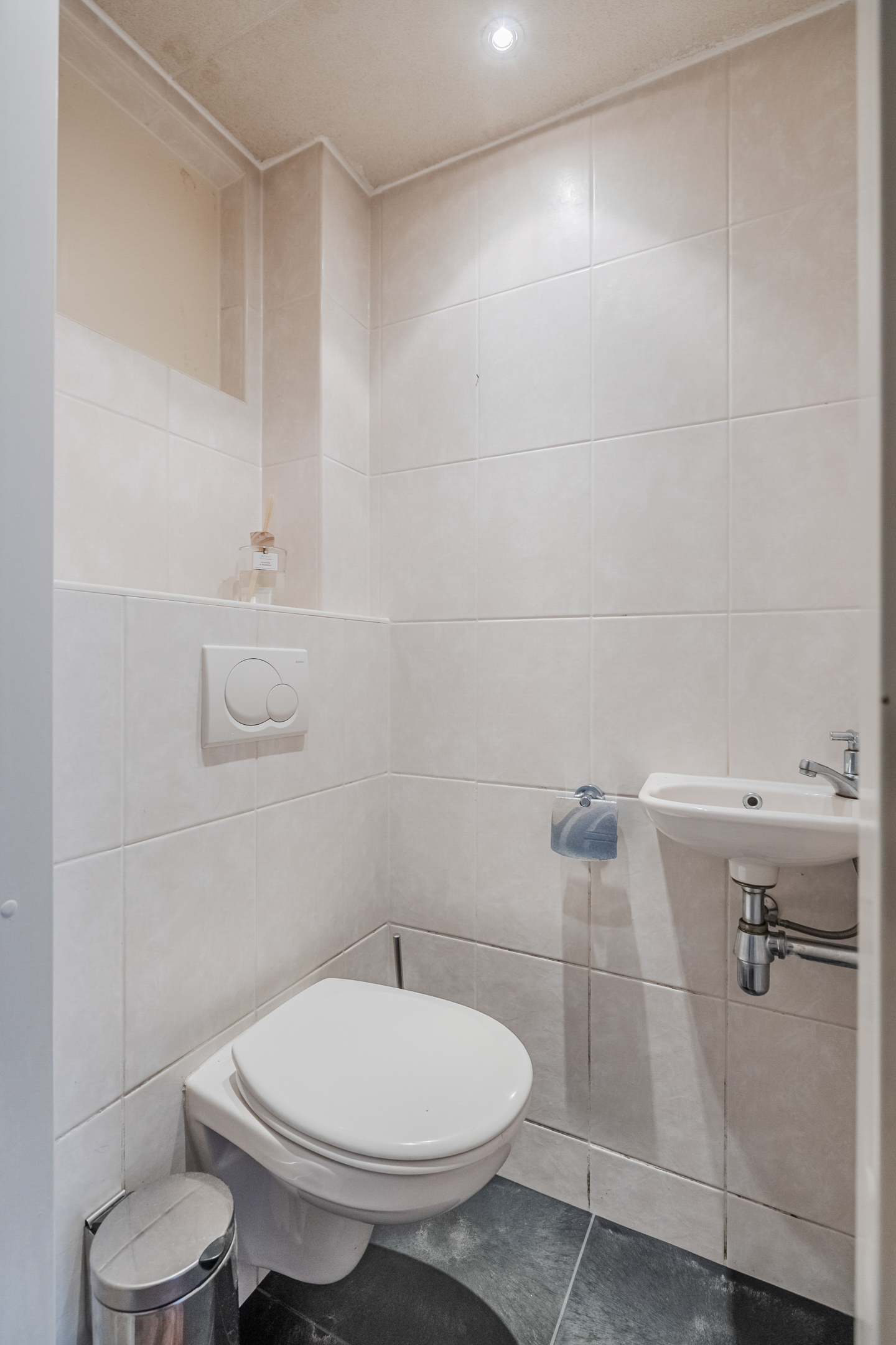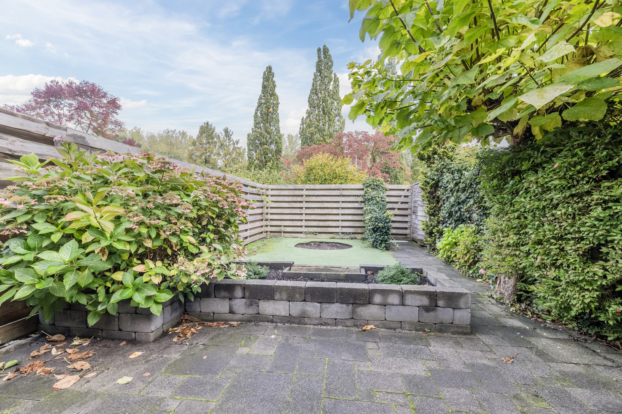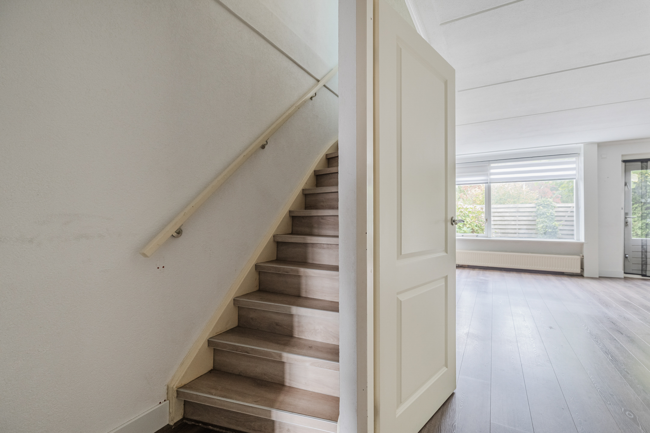 Via de royale entree met meterkast, toilet met fontein en trapopgang bereik je de woonkamer van ca. 30 m². Vanuit de woonkamer heb je toegang tot de zonnige tuin met volop privacy en een praktische achterom.