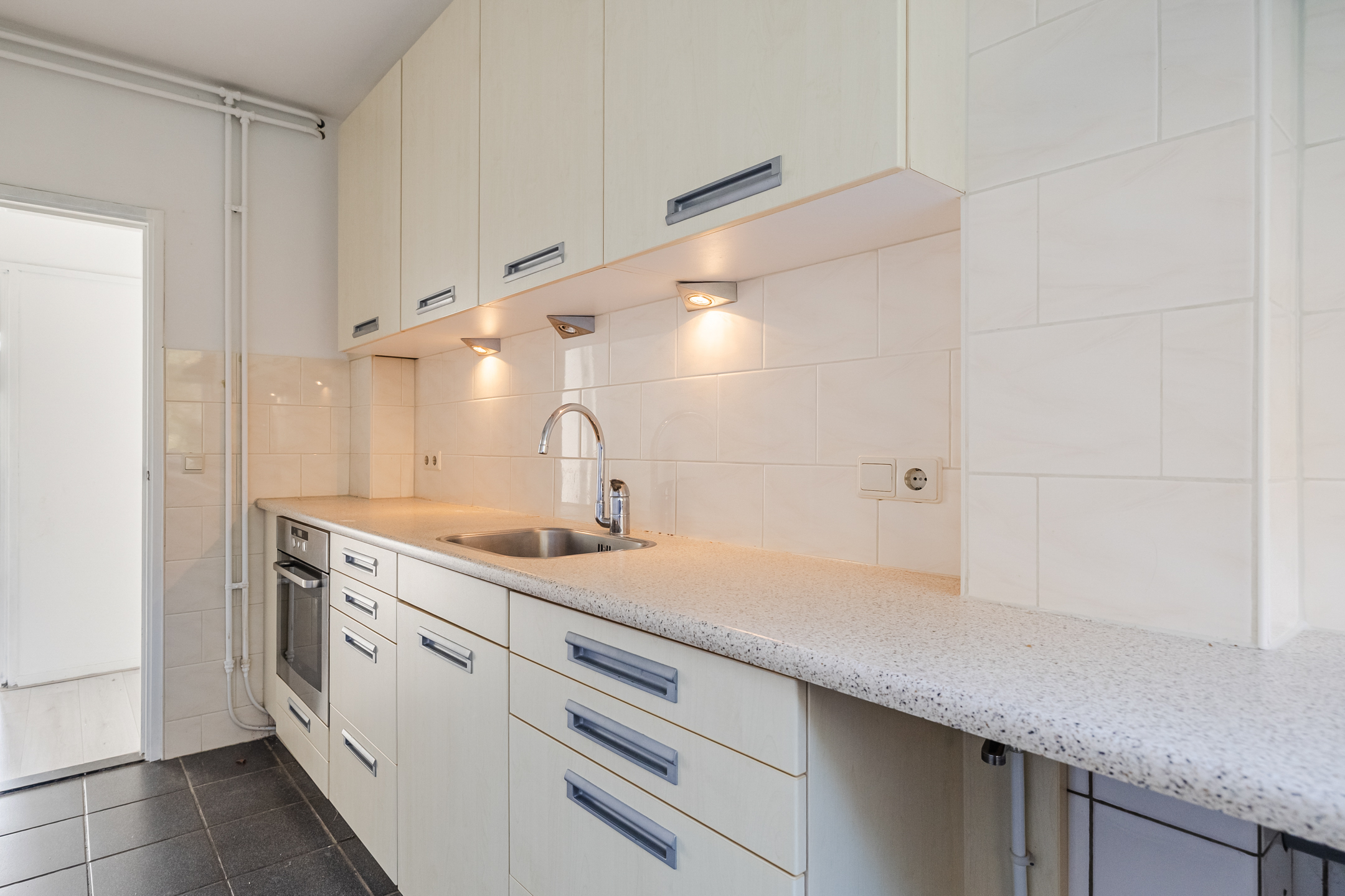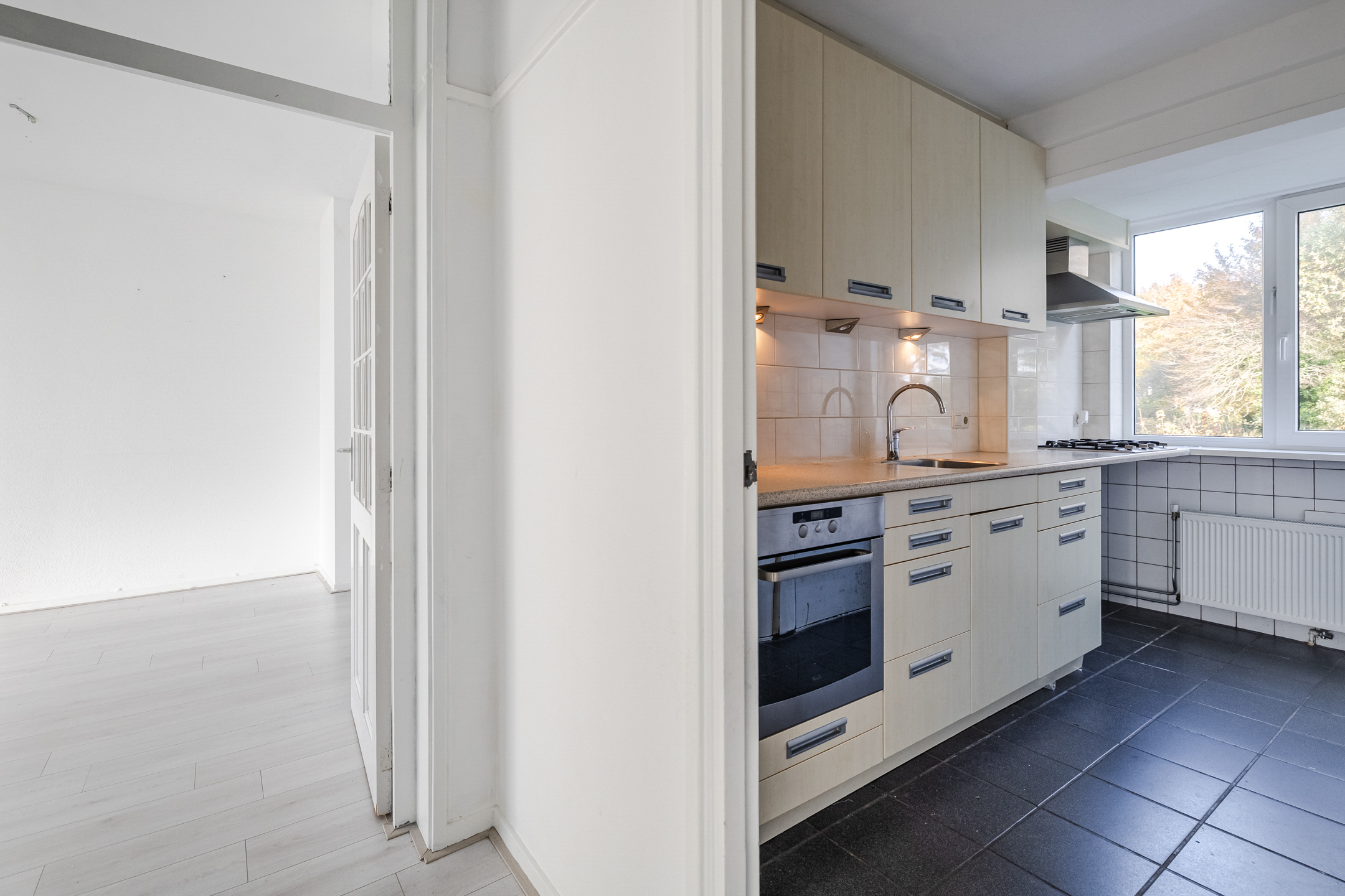 Entree met meterkast, toilet en toegang tot de diverse vertrekken. De lichte woonkamer (ca. 26 m²) is voorzien van grote ramen met fraai uitzicht over openbaar groen. De dichte keuken is voorzien van inbouwapparatuur en heeft een praktische opstelling. Er zijn drie slaapkamers aanwezig, waarvan één toegang biedt tot het balkon. De badkamer is voorzien van een wastafel en een inloopdouche.