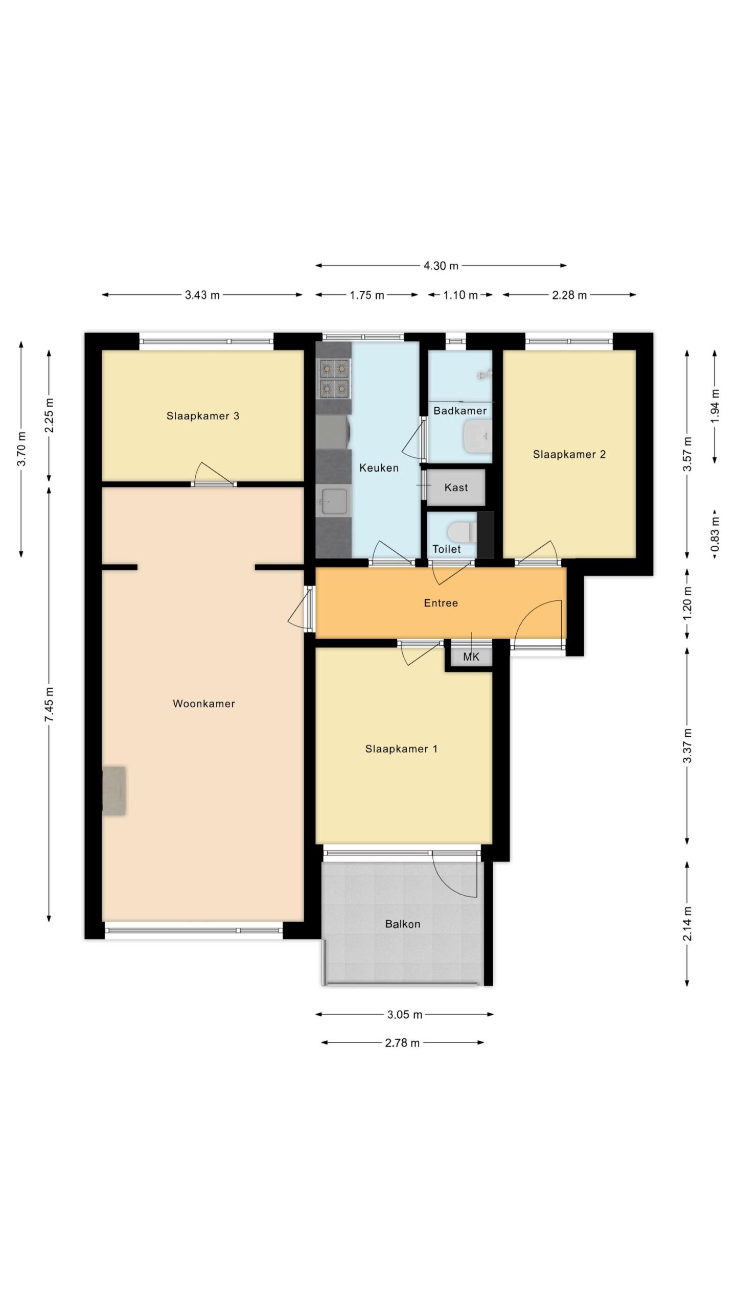 Dit ruime appartement beschikt over drie slaapkamers, een lichte woonkamer, een nette keuken en badkamer en een inpandige berging in het souterrain welke voorzien is van elektra. De woning is goed onderhouden en heeft een woonoppervlakte van ca. 72 m². Het balkon ligt op het westen, waardoor je hier heerlijk van de middag- en avondzon kunt genieten.