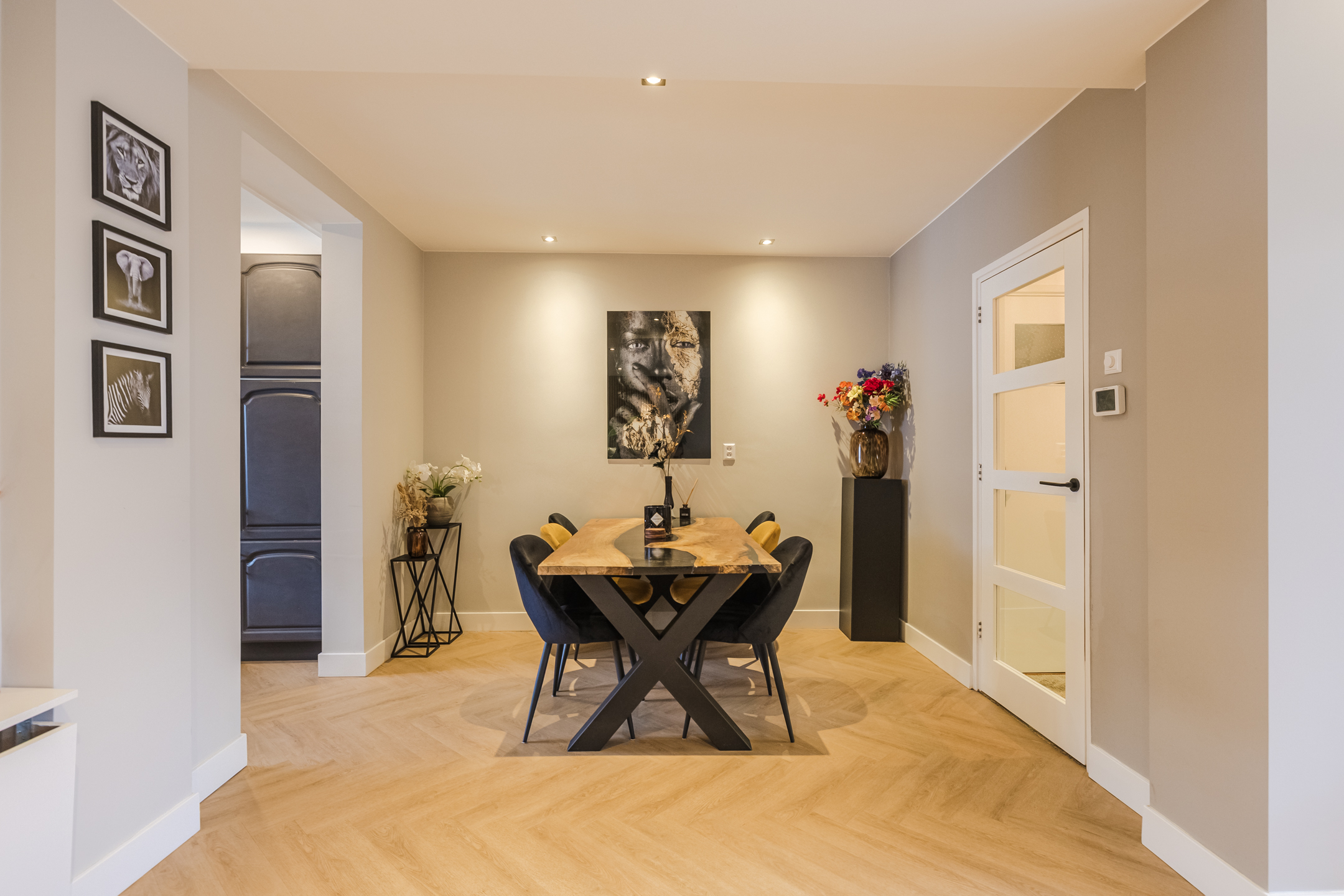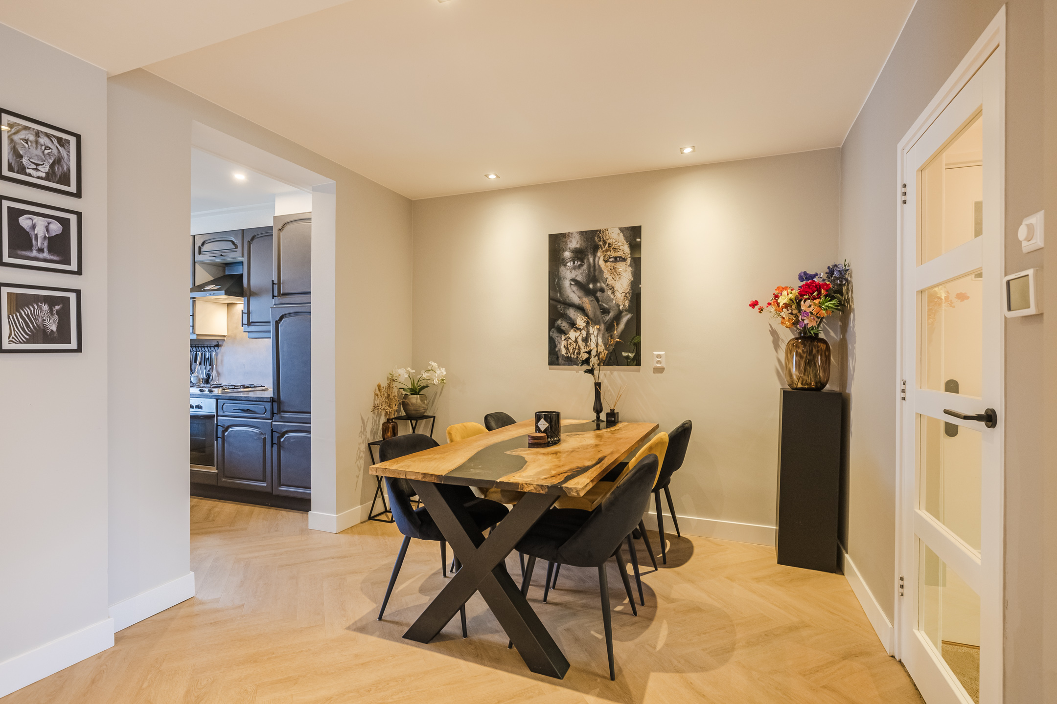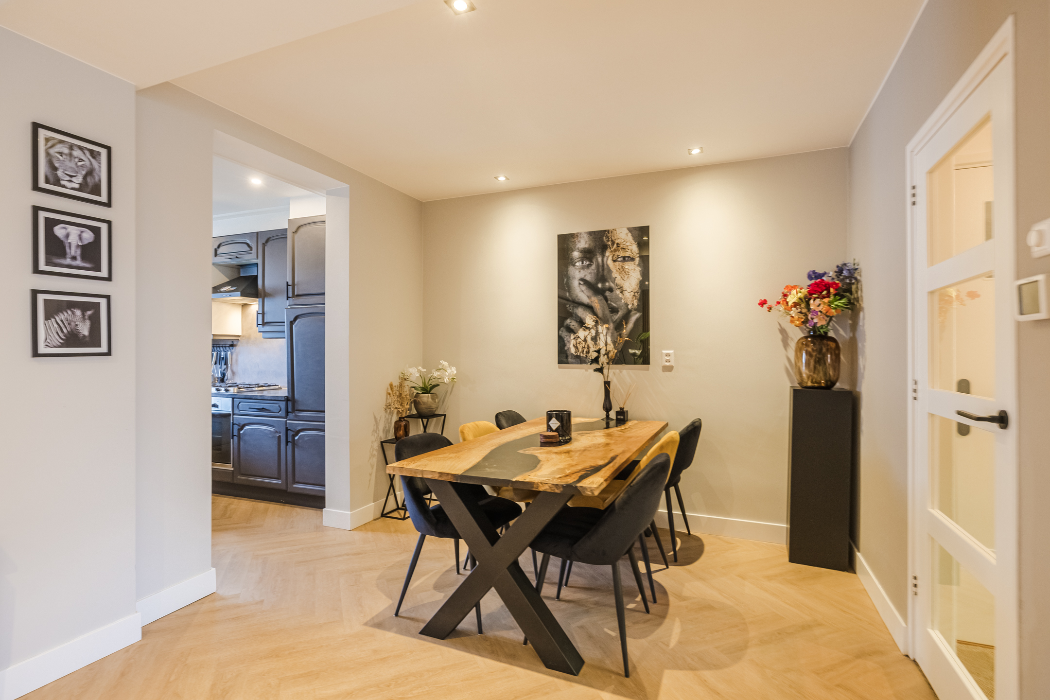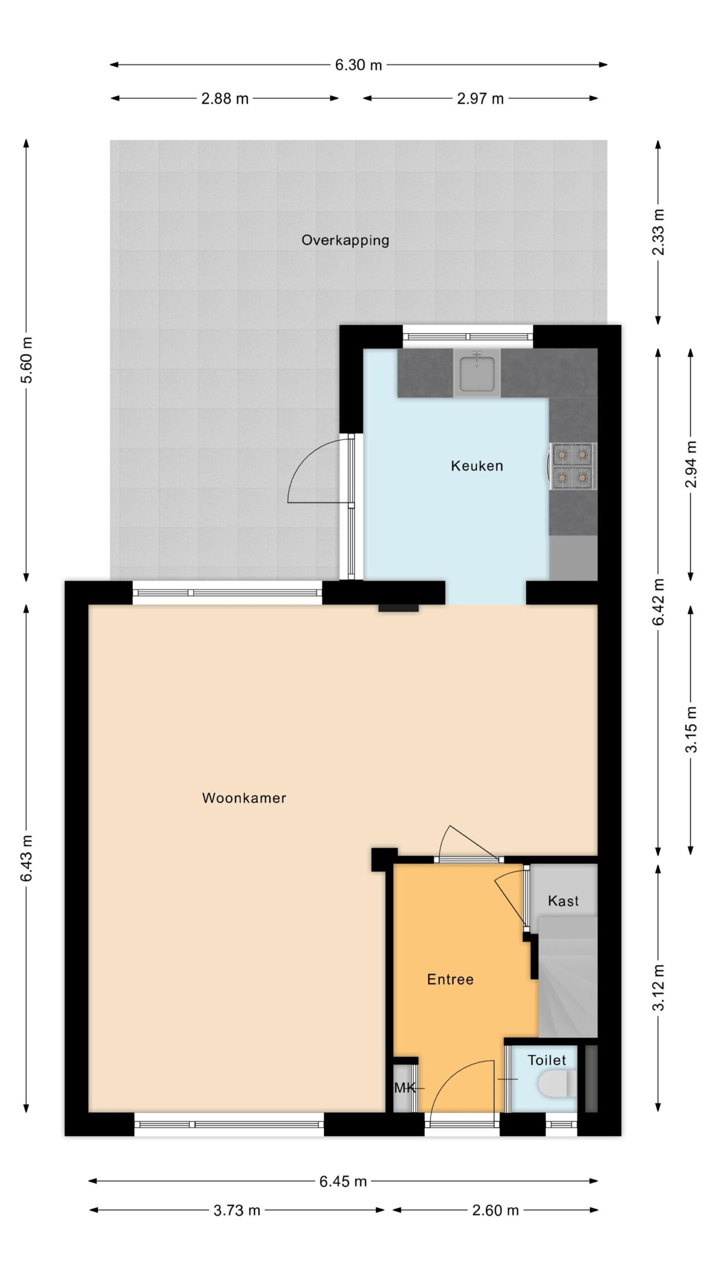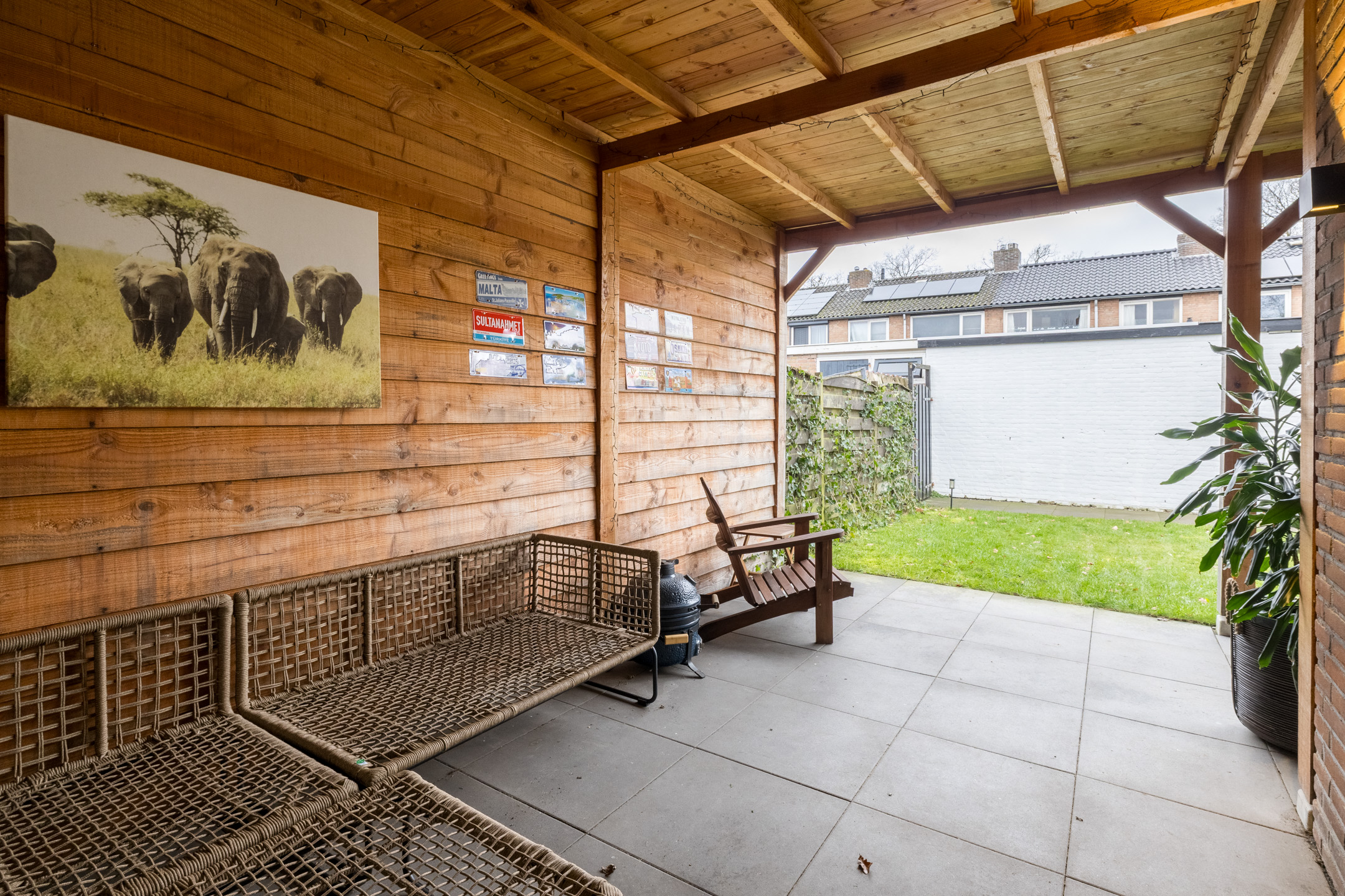 Entree met vernieuwd toilet, provisiekelder en vernieuwde en uitgebreide meterkast, woonkamer met fraaie PVC-vloer, in visgraad gelegd en glad gestucte wanden, de aangebouwde keuken met eenvoudige keukenopstelling is voorzien van enig inbouwapparatuur. Vanuit de keuken kom je in de op het westen gelegen tuin met een ruime overkapping en achterom.