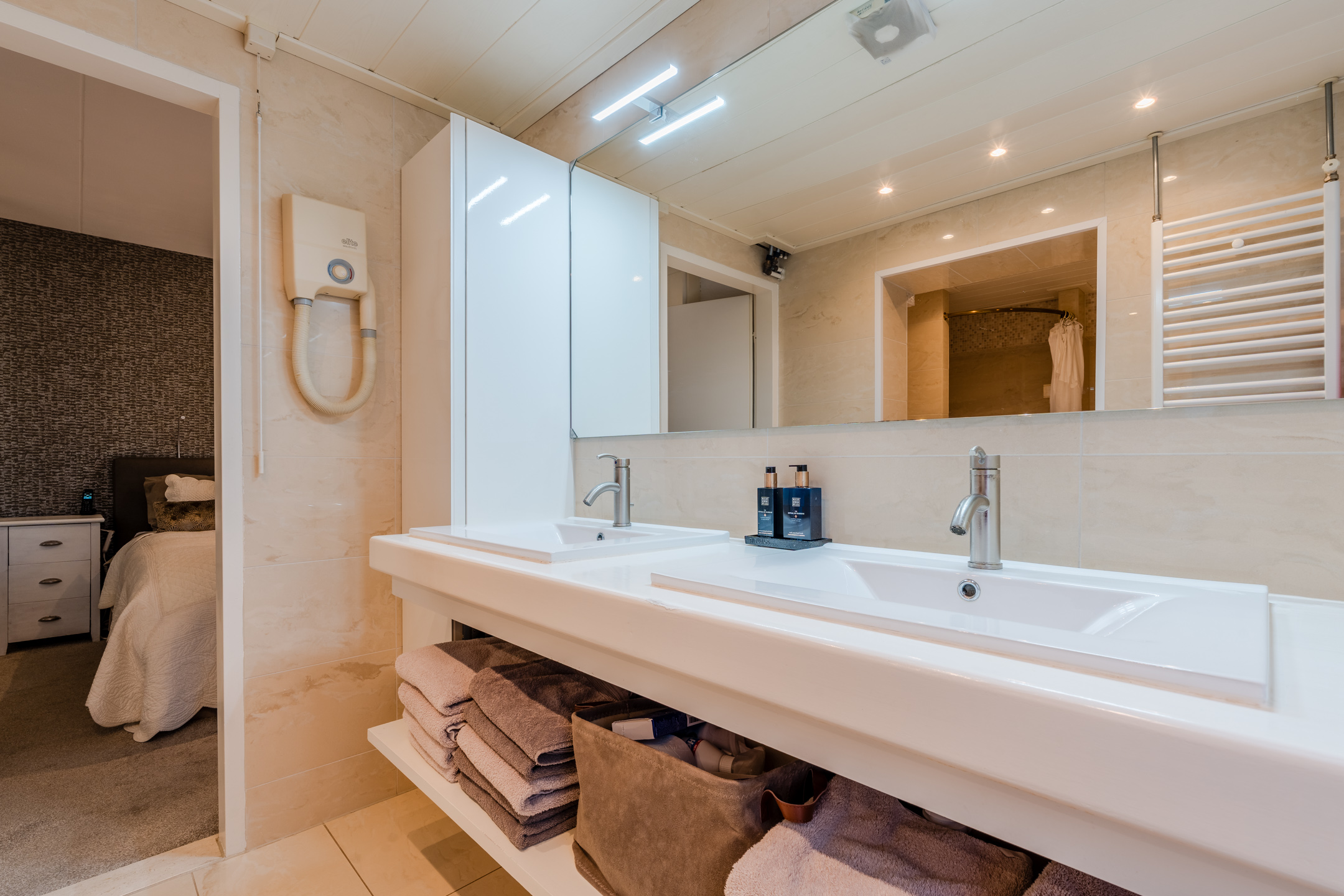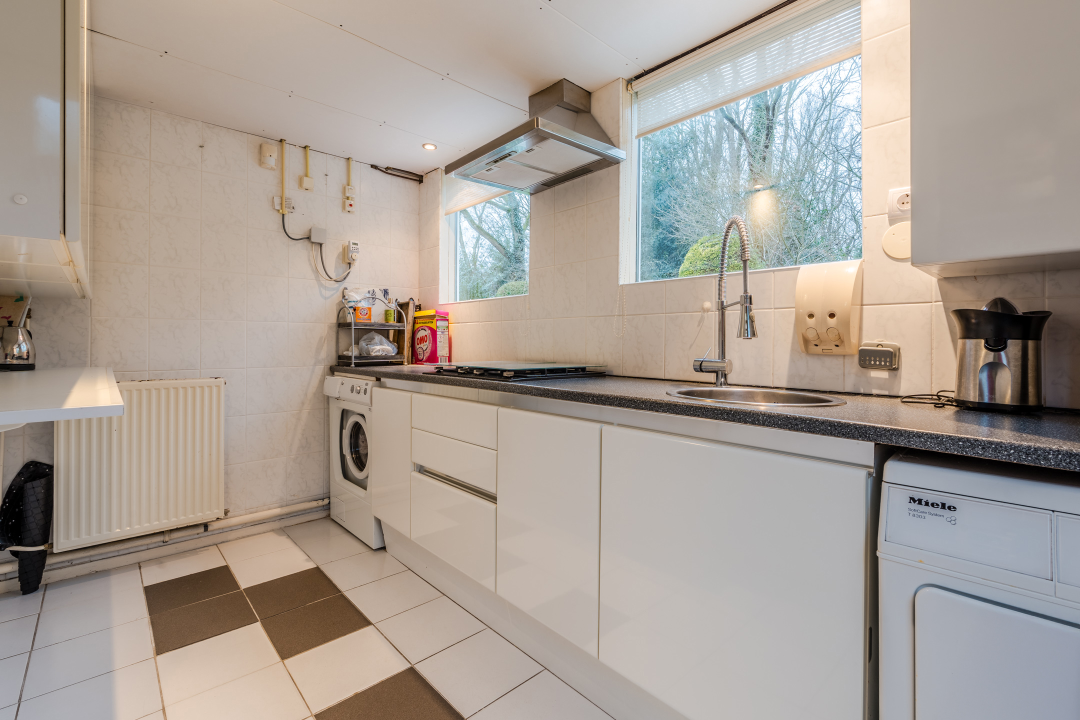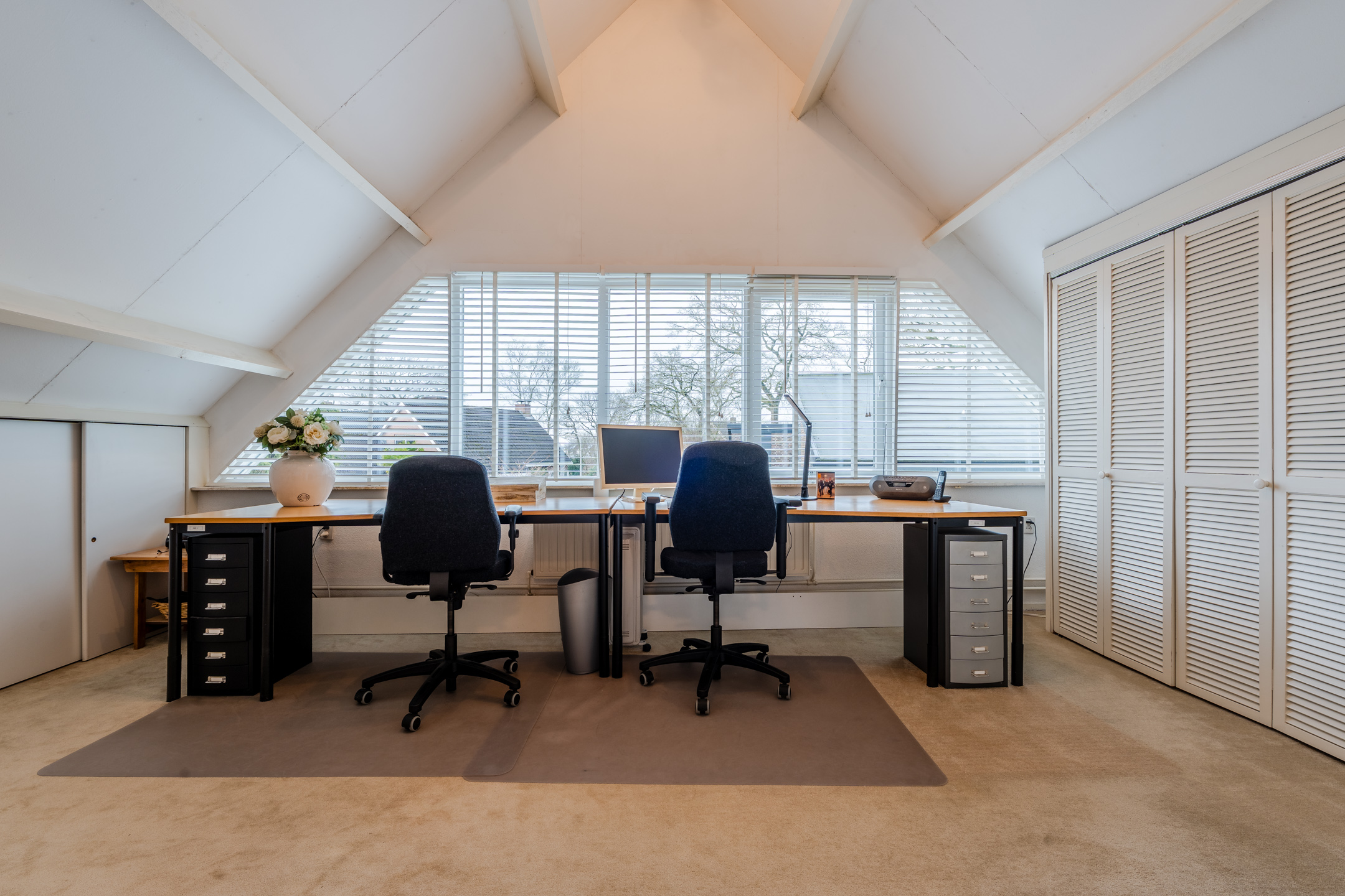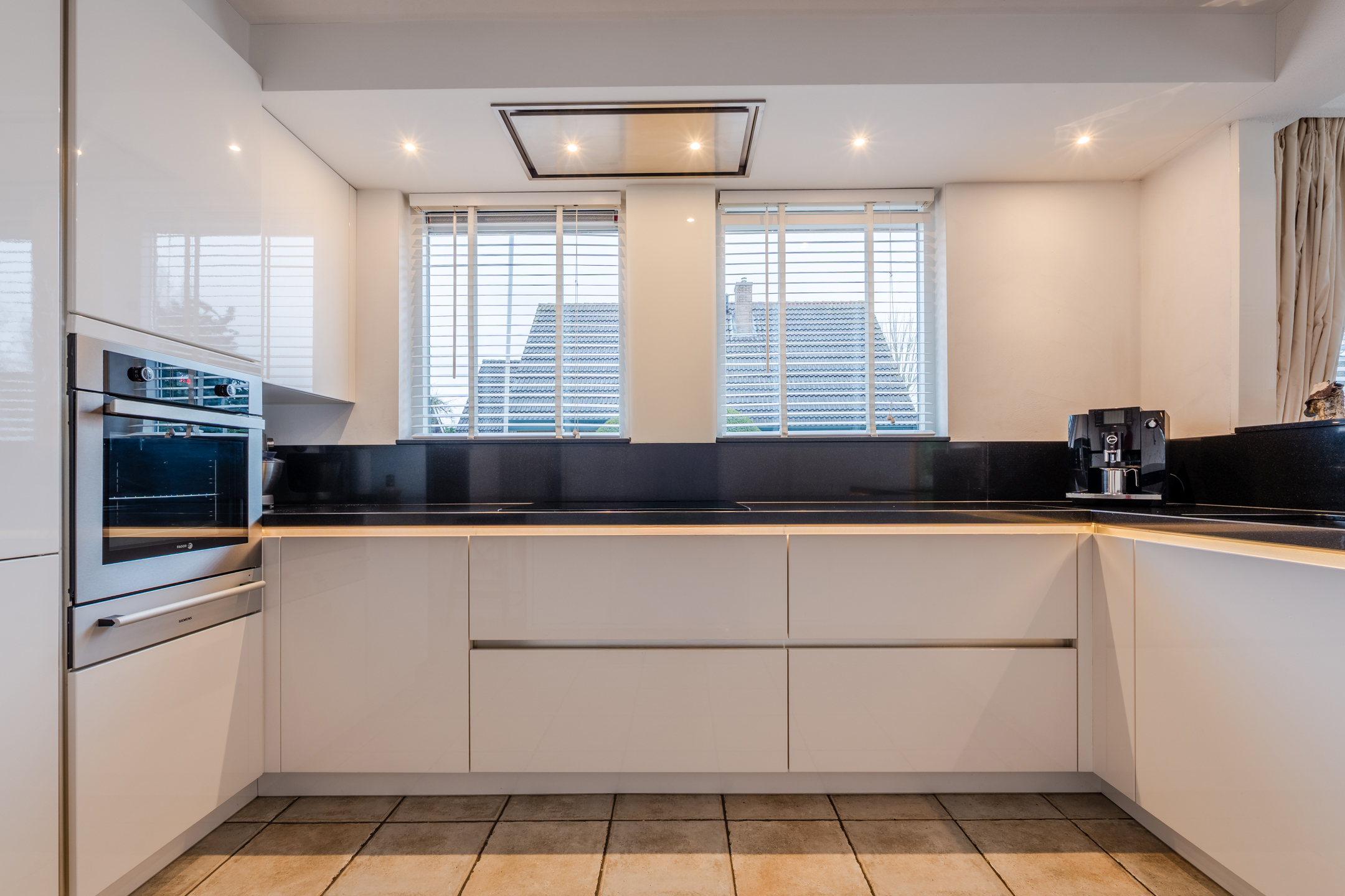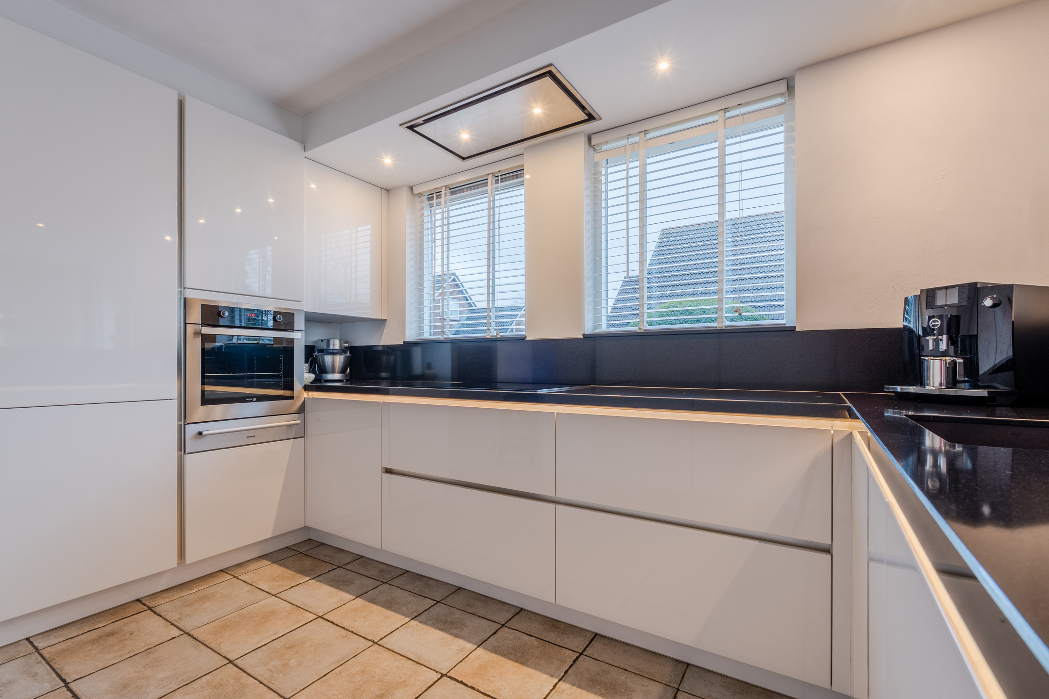 Vanuit de entree kom je tevens in de ruime aangebouwde en geïsoleerde garage met een gecoate vloer en elektrische overheaddeur, in de garage tref je tevens de bijkeuken aan met een keurig keukenblok en de witgoedaansluitingen.