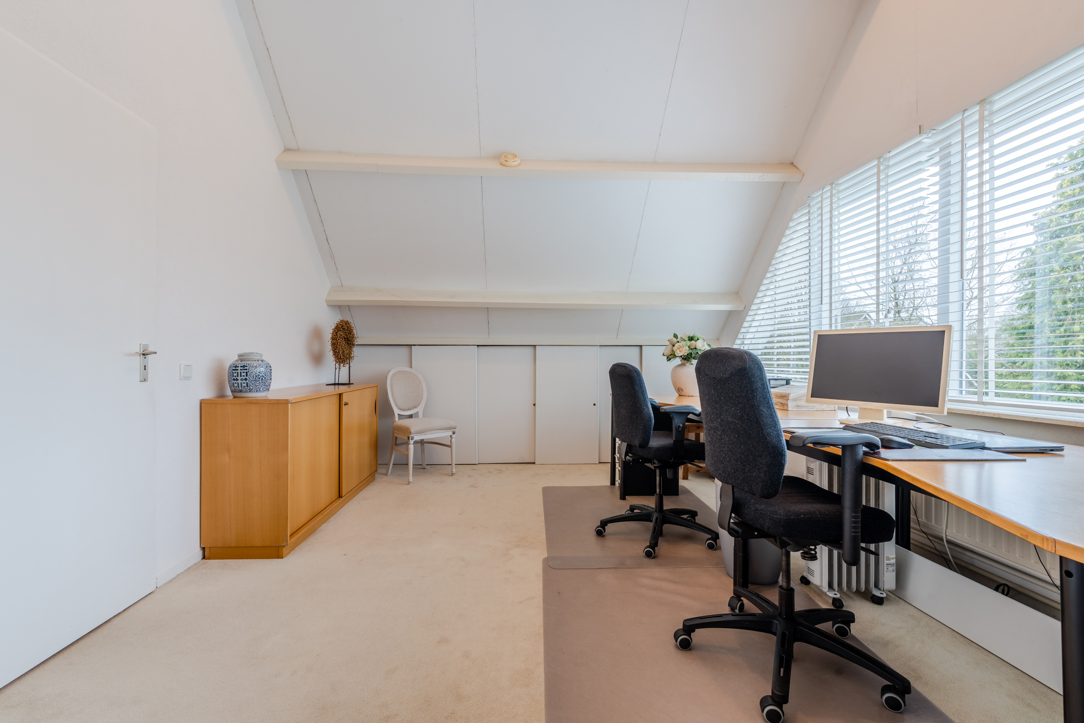 Ruime, zeer goed onderhouden en lichte vrijstaande semi-bungalow met alle voorzieningen op de begane grond en tevens nog een badkamer en 3 slaapkamers op de verdieping. Deze woning heeft een ruime aangebouwde geïsoleerde garage en een fraai aangelegde tuin grenzend aan het “Kinholtsbos” met een tuinberging en prachtige vijverpartij.