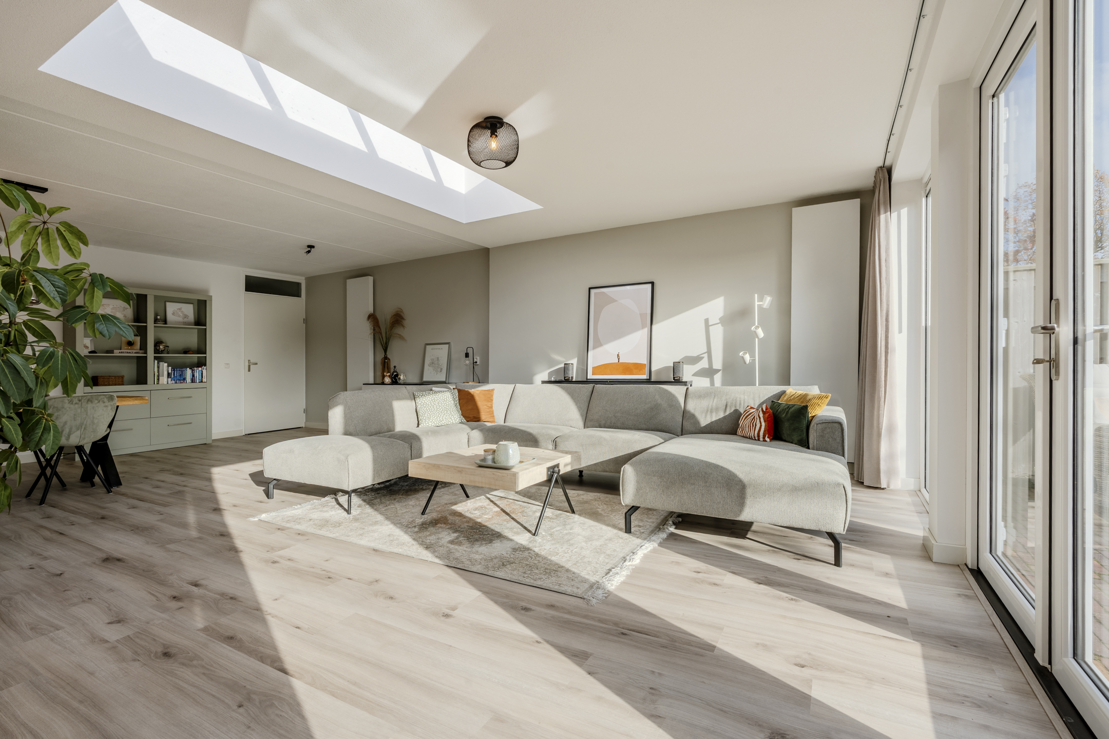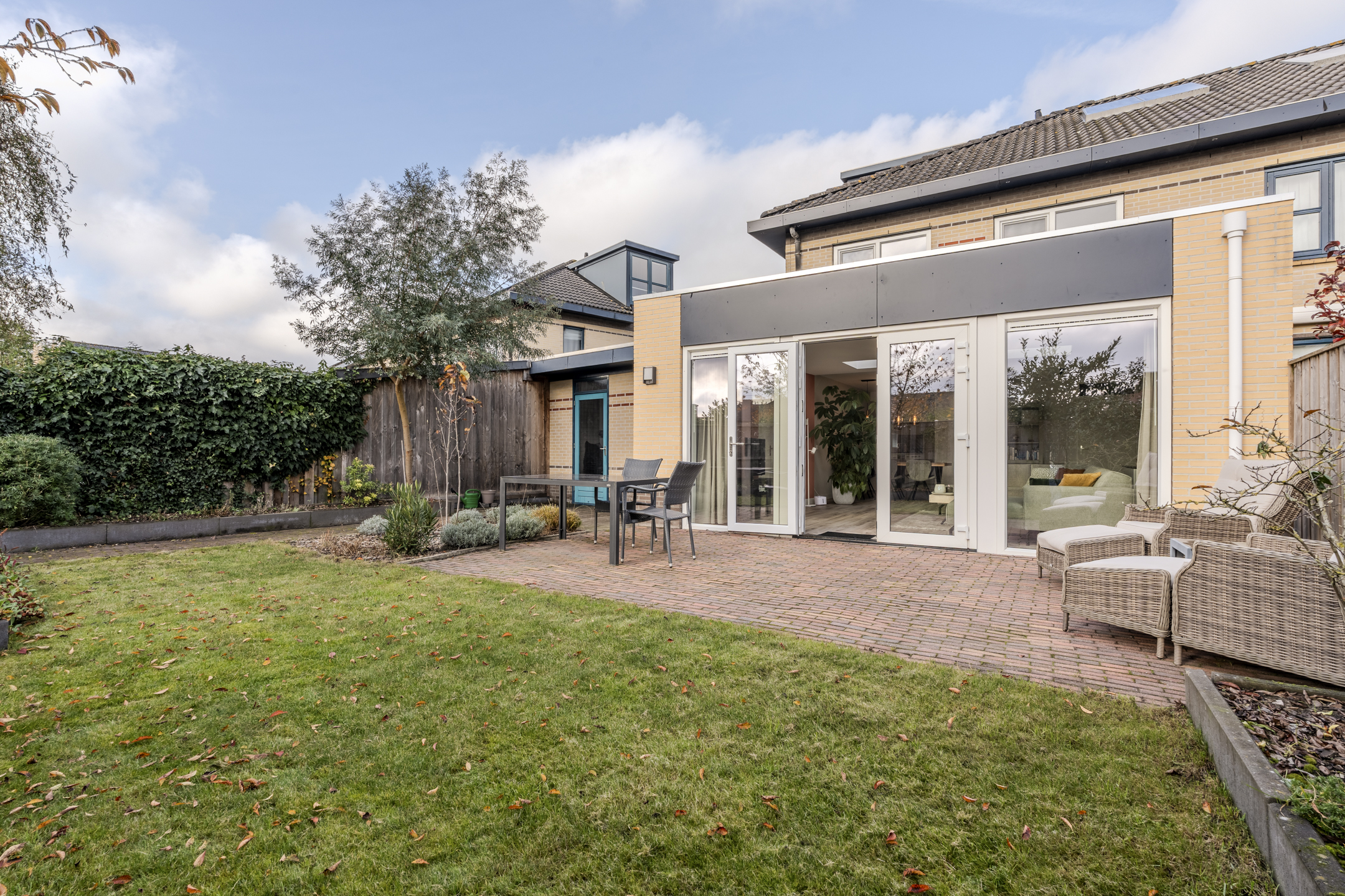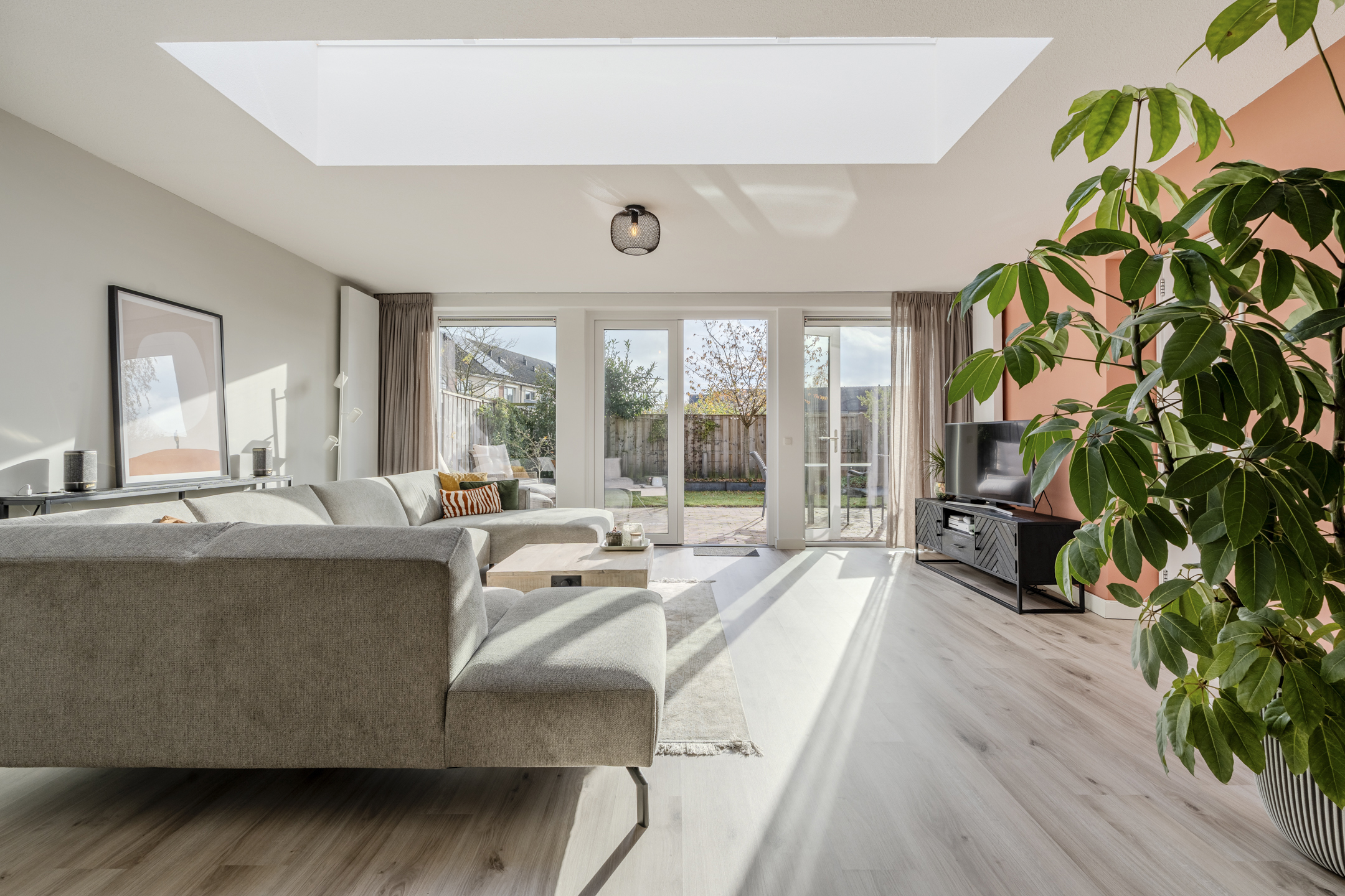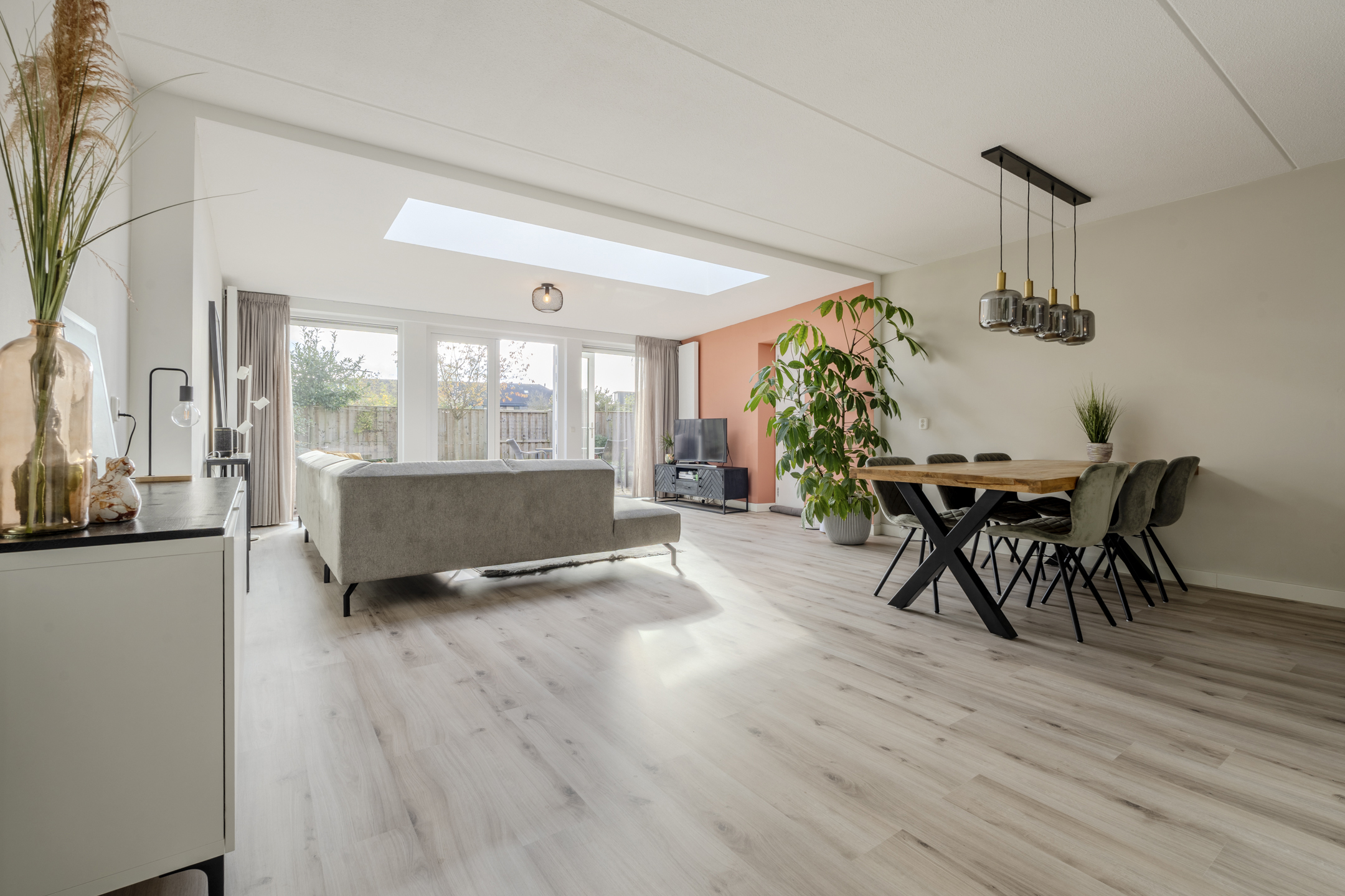 Volledig instapklare hoekwoning met zeer royale uitgebouwde woonkamer, garage, eigen oprit, drie slaapkamers en een tuin op het zuiden.