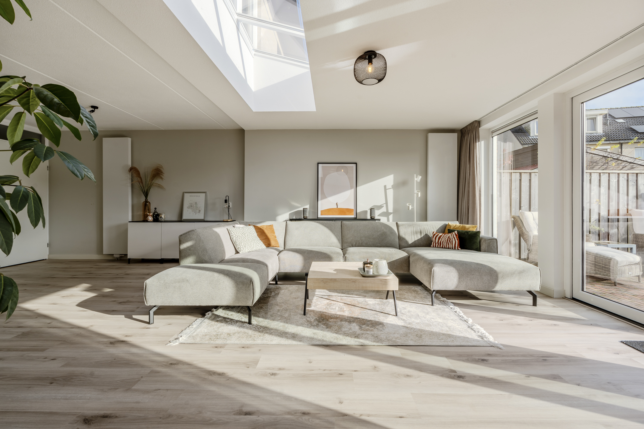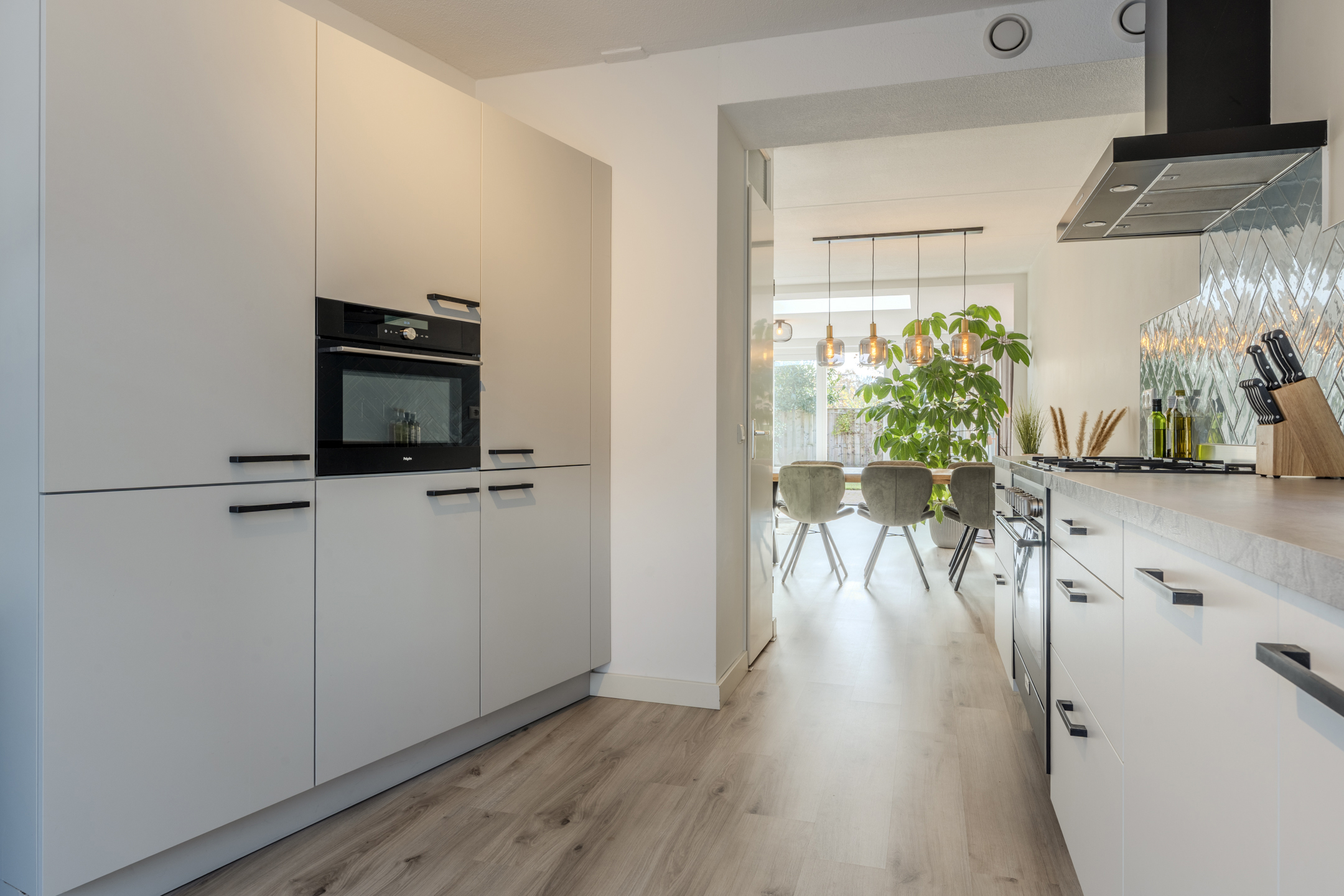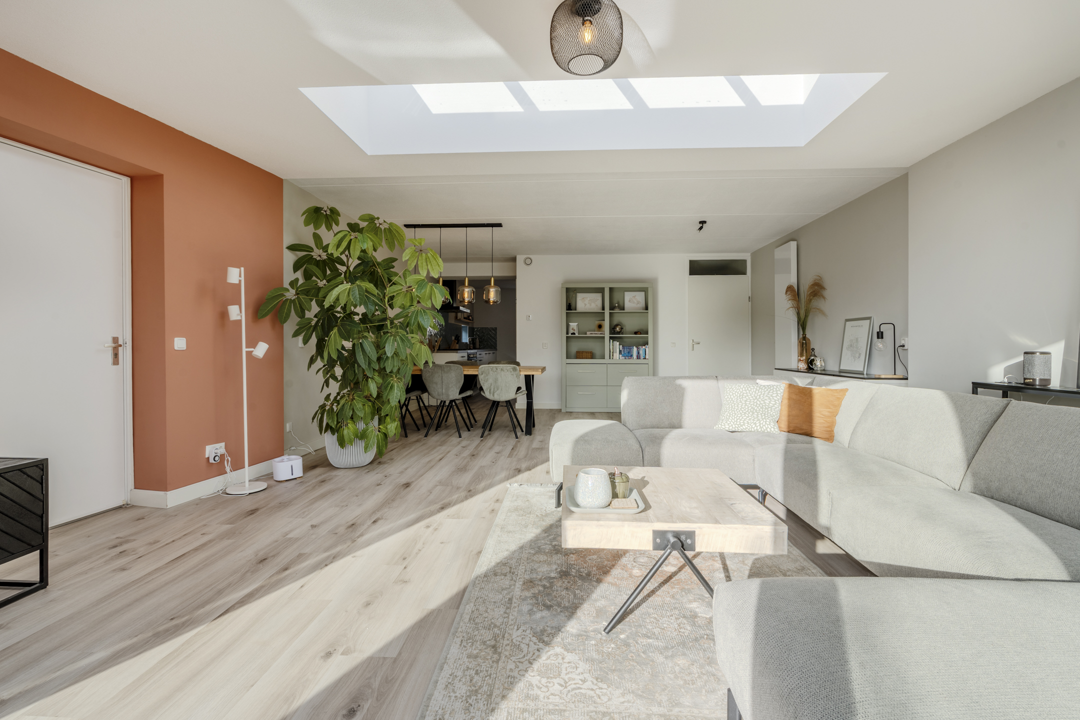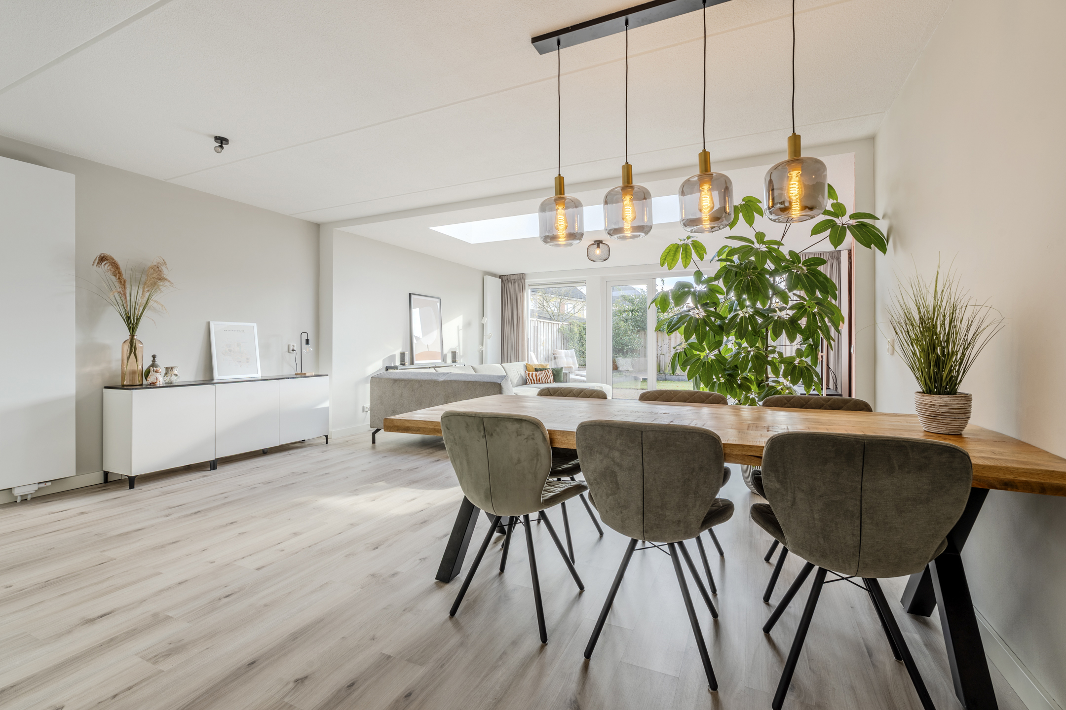 Volledig instapklare hoekwoning met zeer royale uitgebouwde woonkamer, garage, eigen oprit, drie slaapkamers en een tuin op het zuiden.