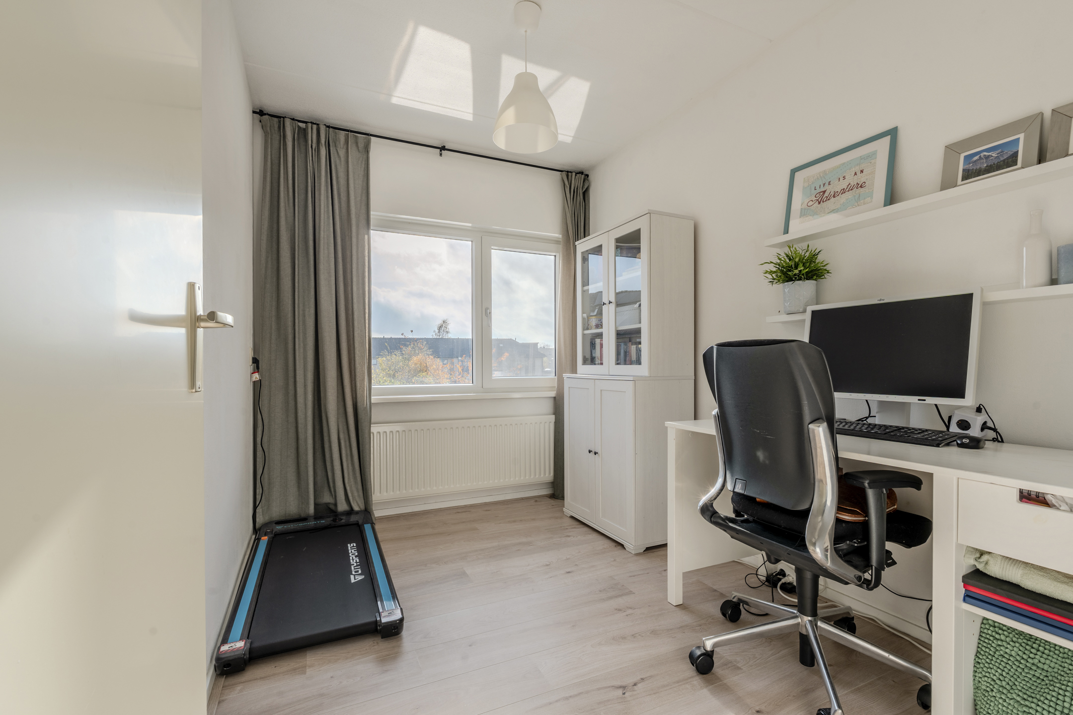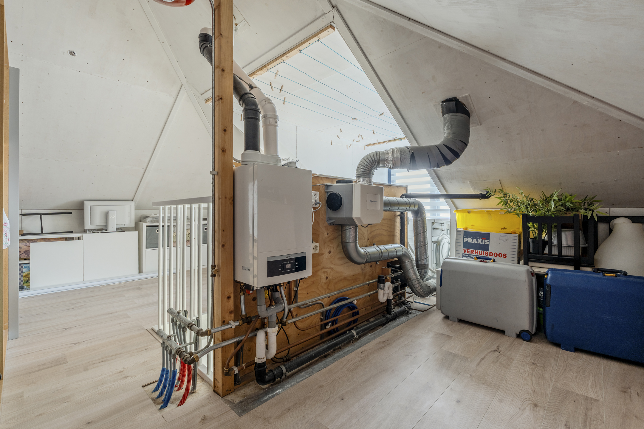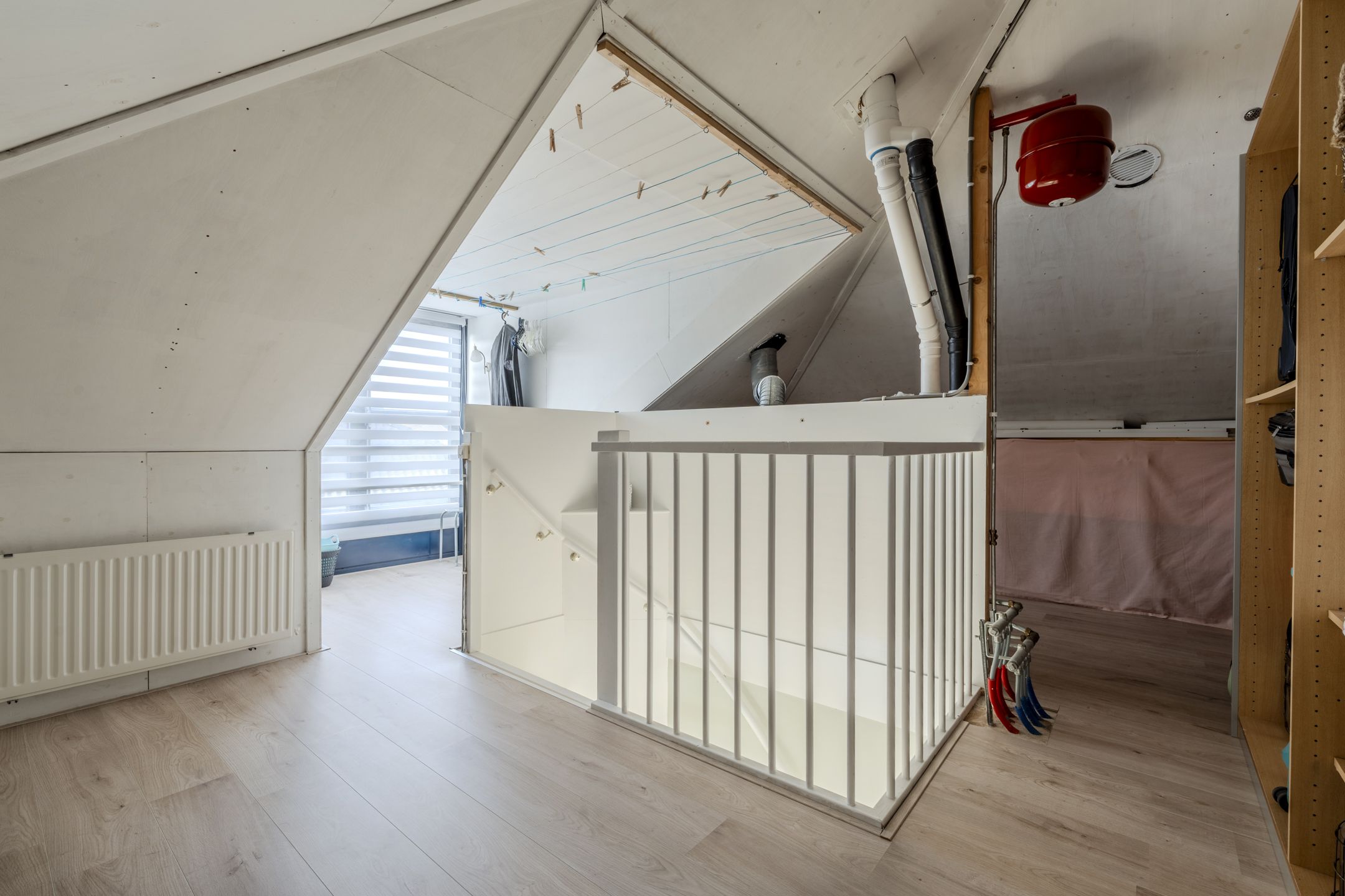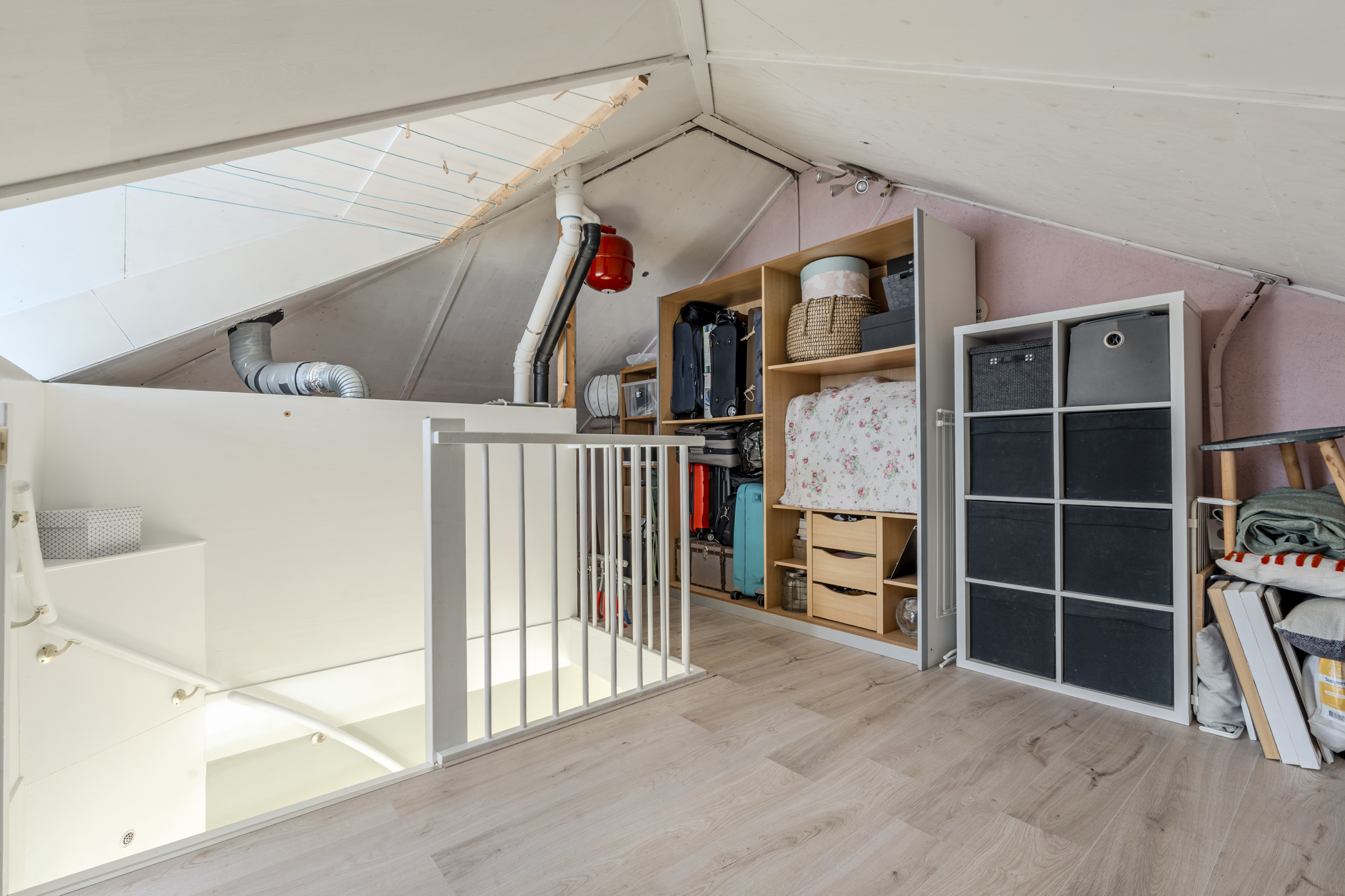 Via een vaste trap bereikbare zolderverdieping met veel bergruimte, dakkapel, witgoedaansluiting en mogelijkheden voor het creëren van een extra (slaap)kamer.