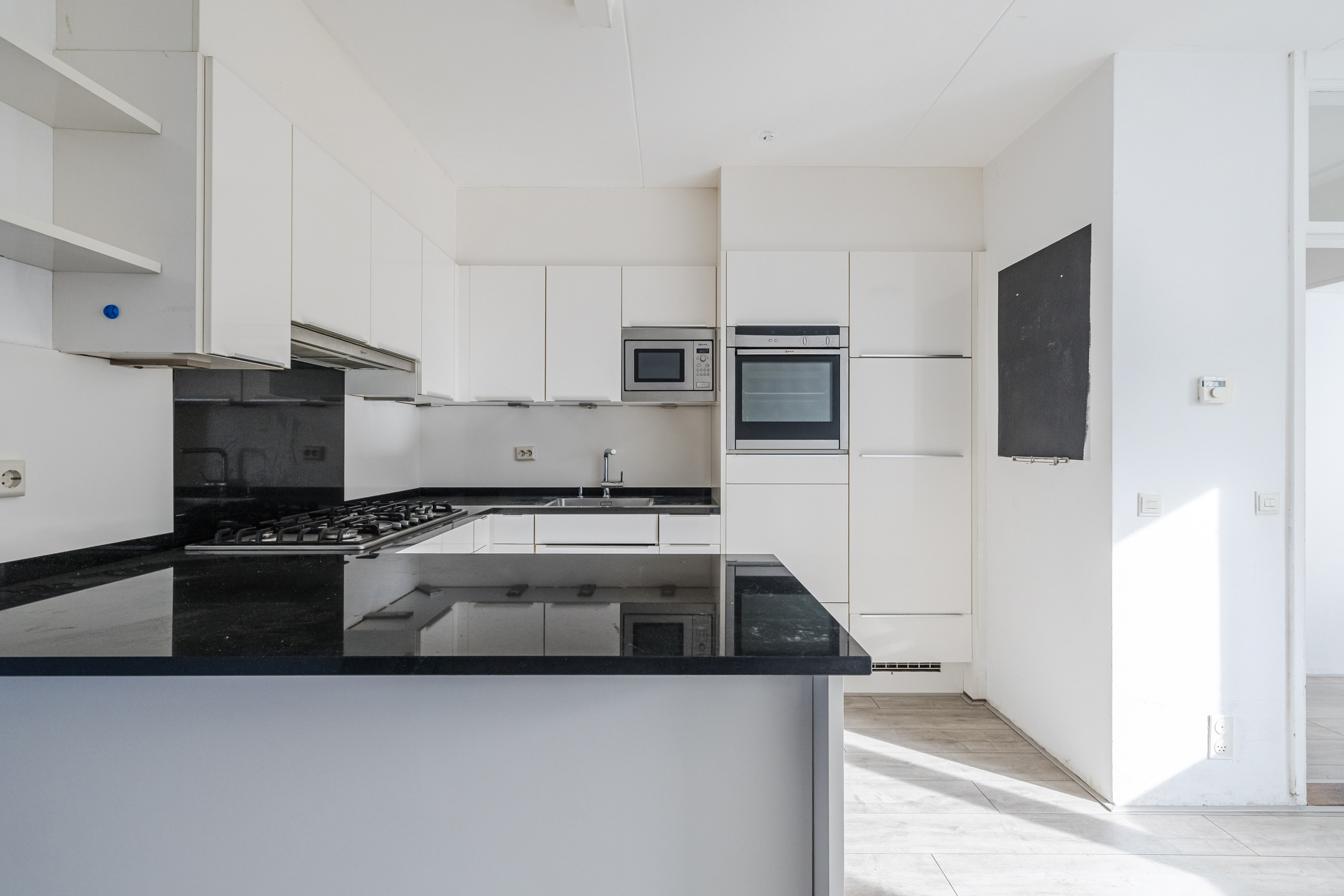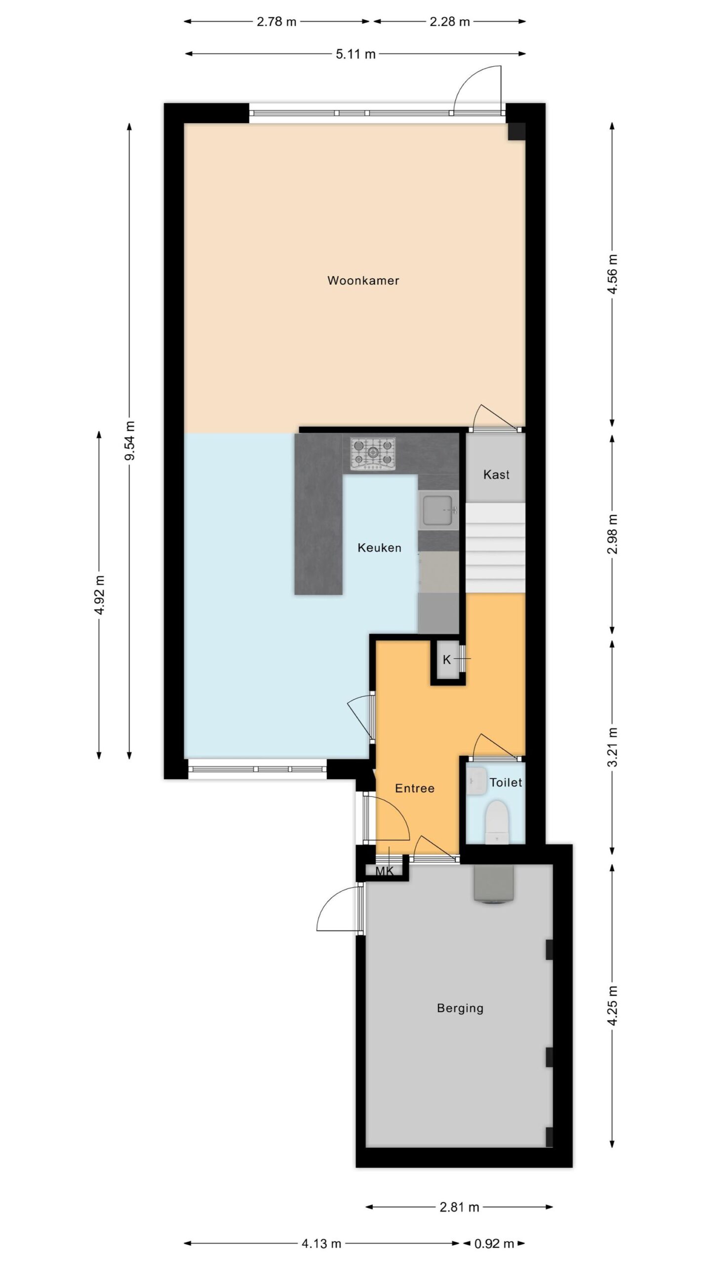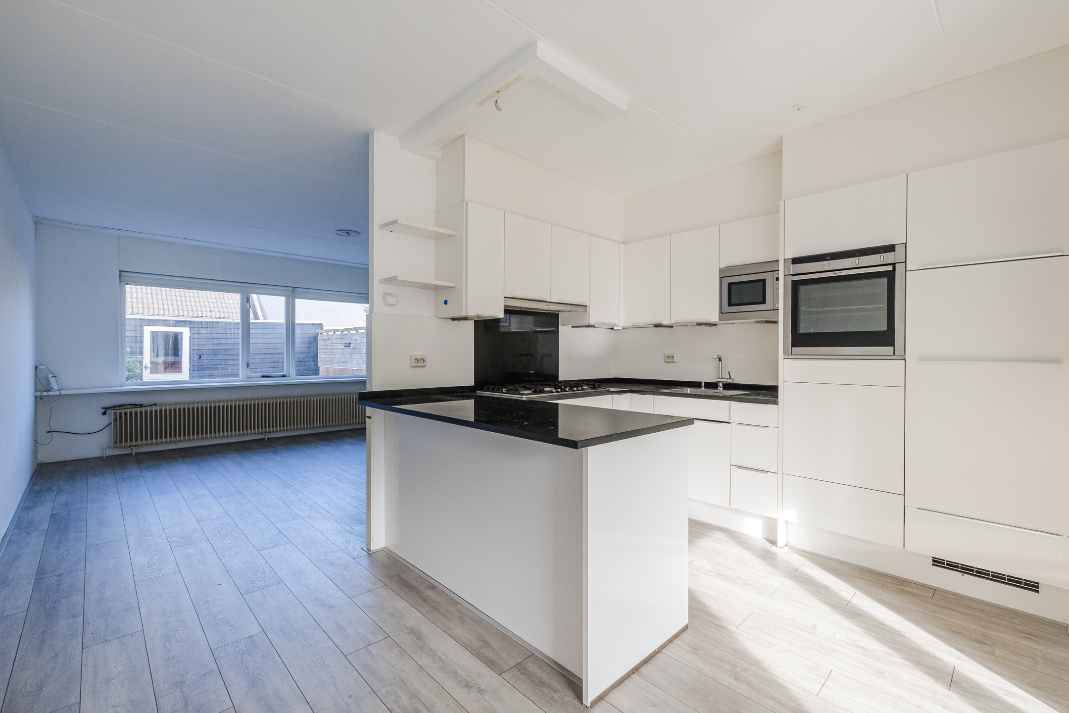 Entree met een binnendoor naar de berging, toilet, meterkast, tuingerichte woonkamer met een moderne keuken, voorzien van een 5 pits gaskookplaat, oven, magnetron en een koelkast.