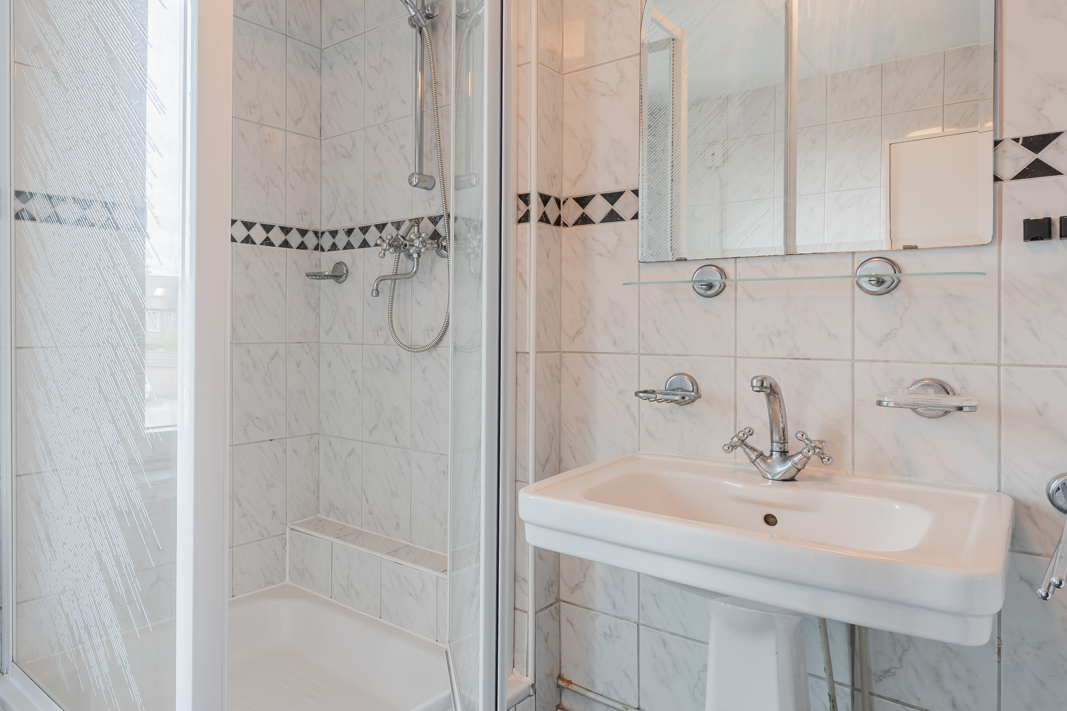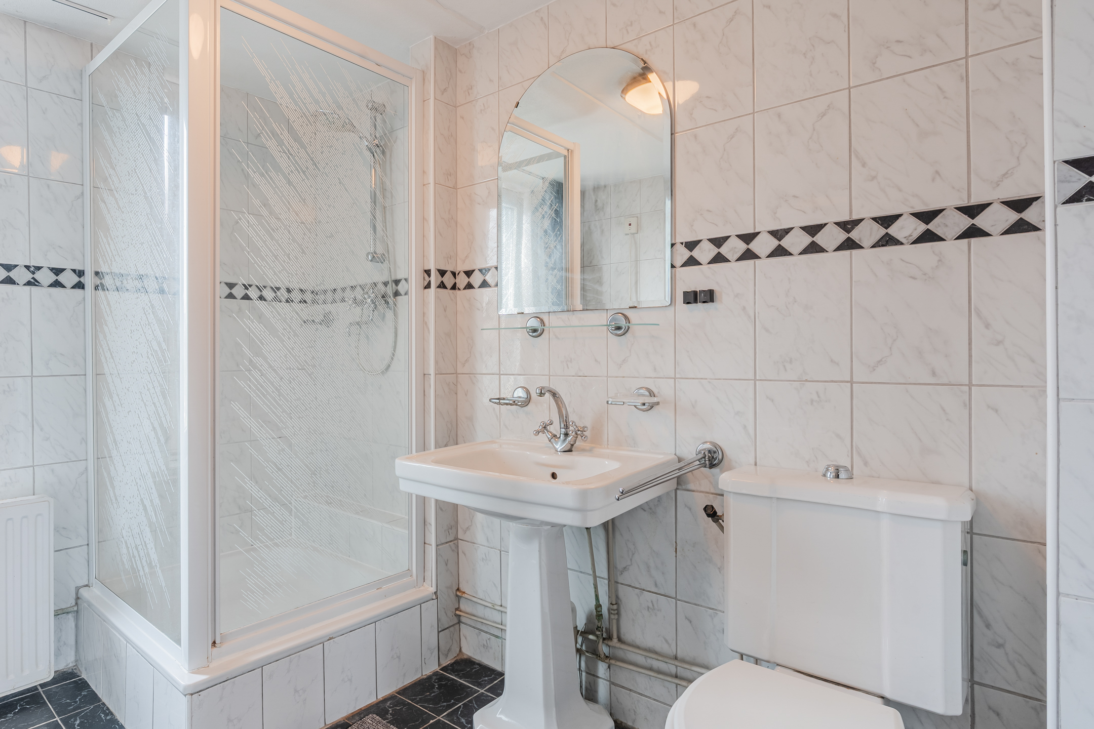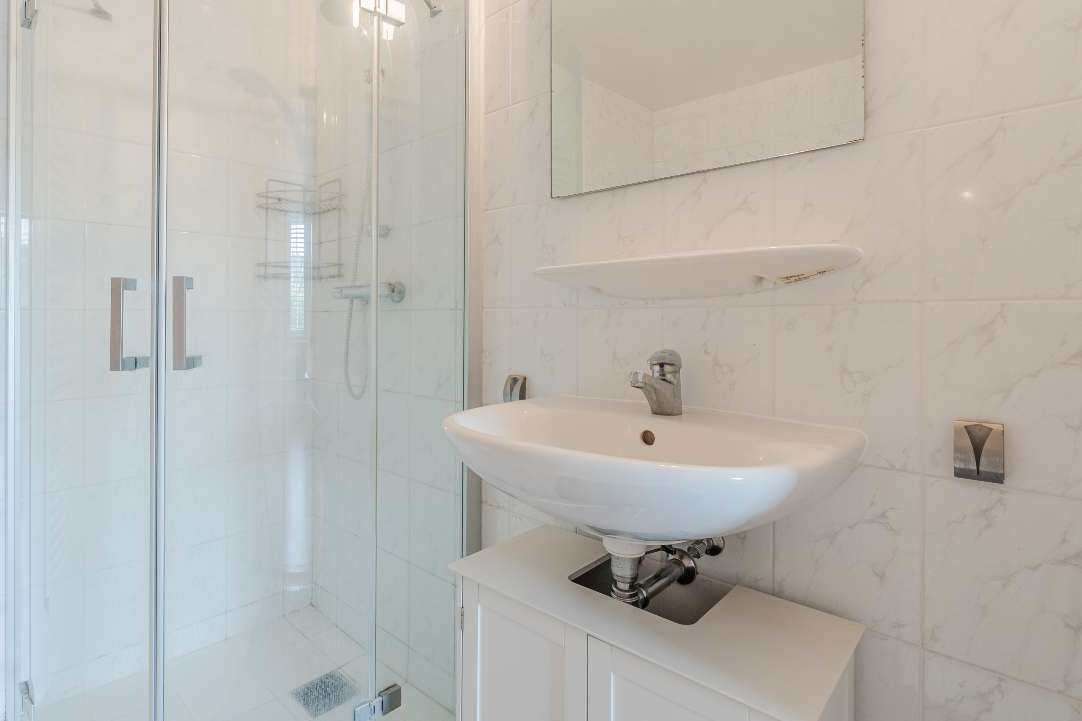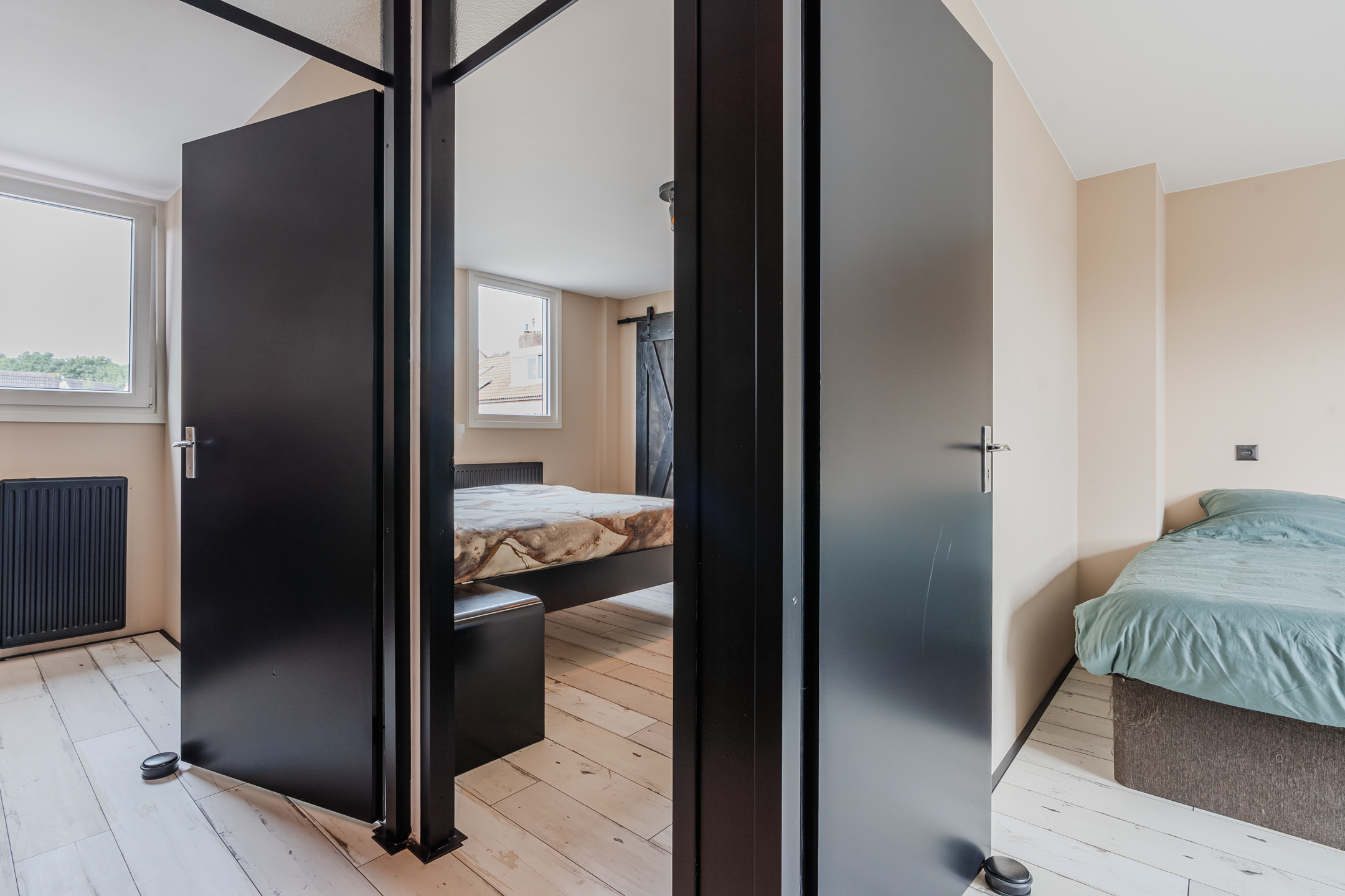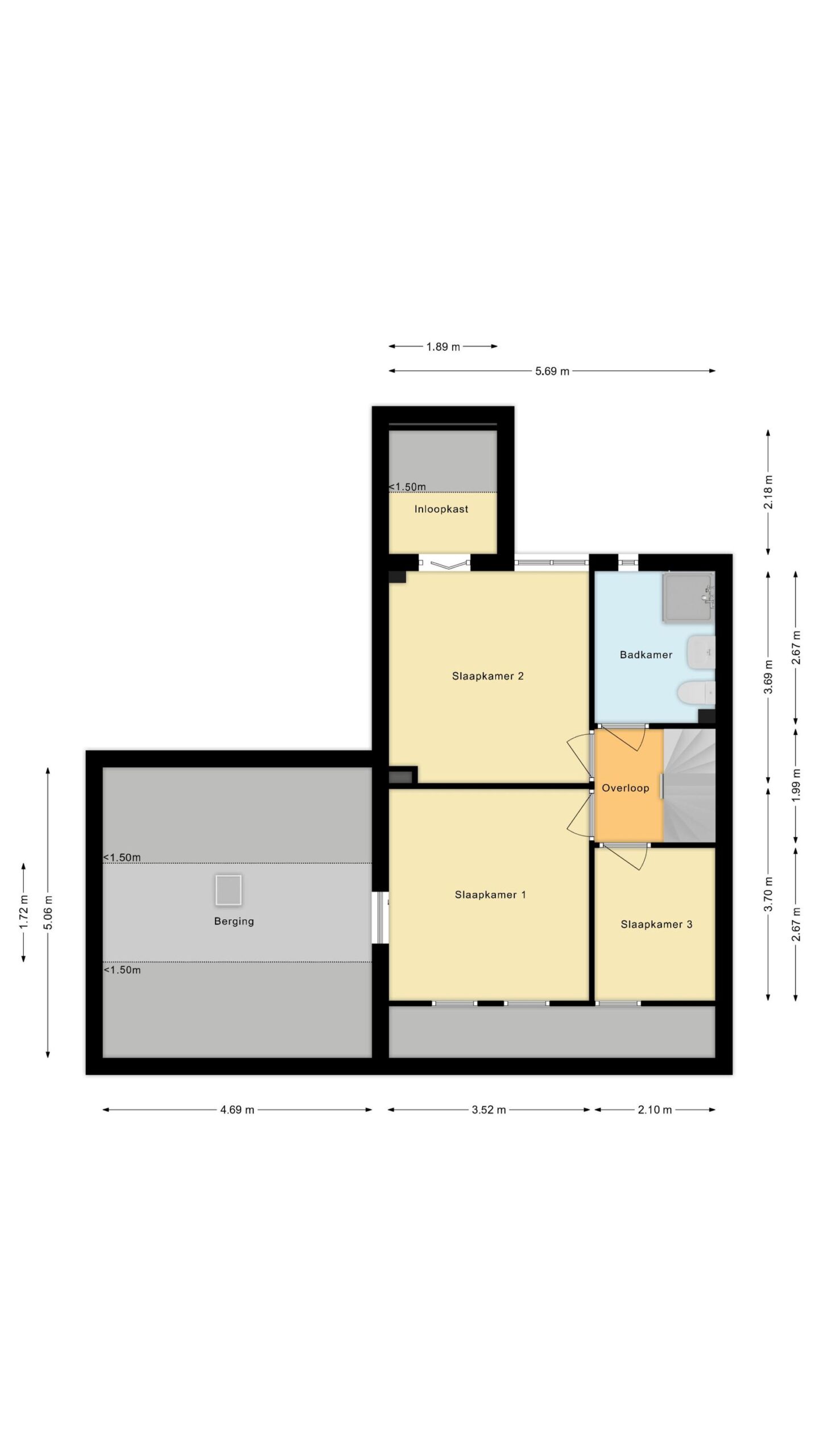 De overloop geeft toegang tot drie slaapkamers, waarvan één is voorzien van een handige berging en een andere van een royale inloopkast/berging. Op deze verdieping bevindt zich tevens de tweede badkamer, uitgerust met douche, wastafel en toilet.