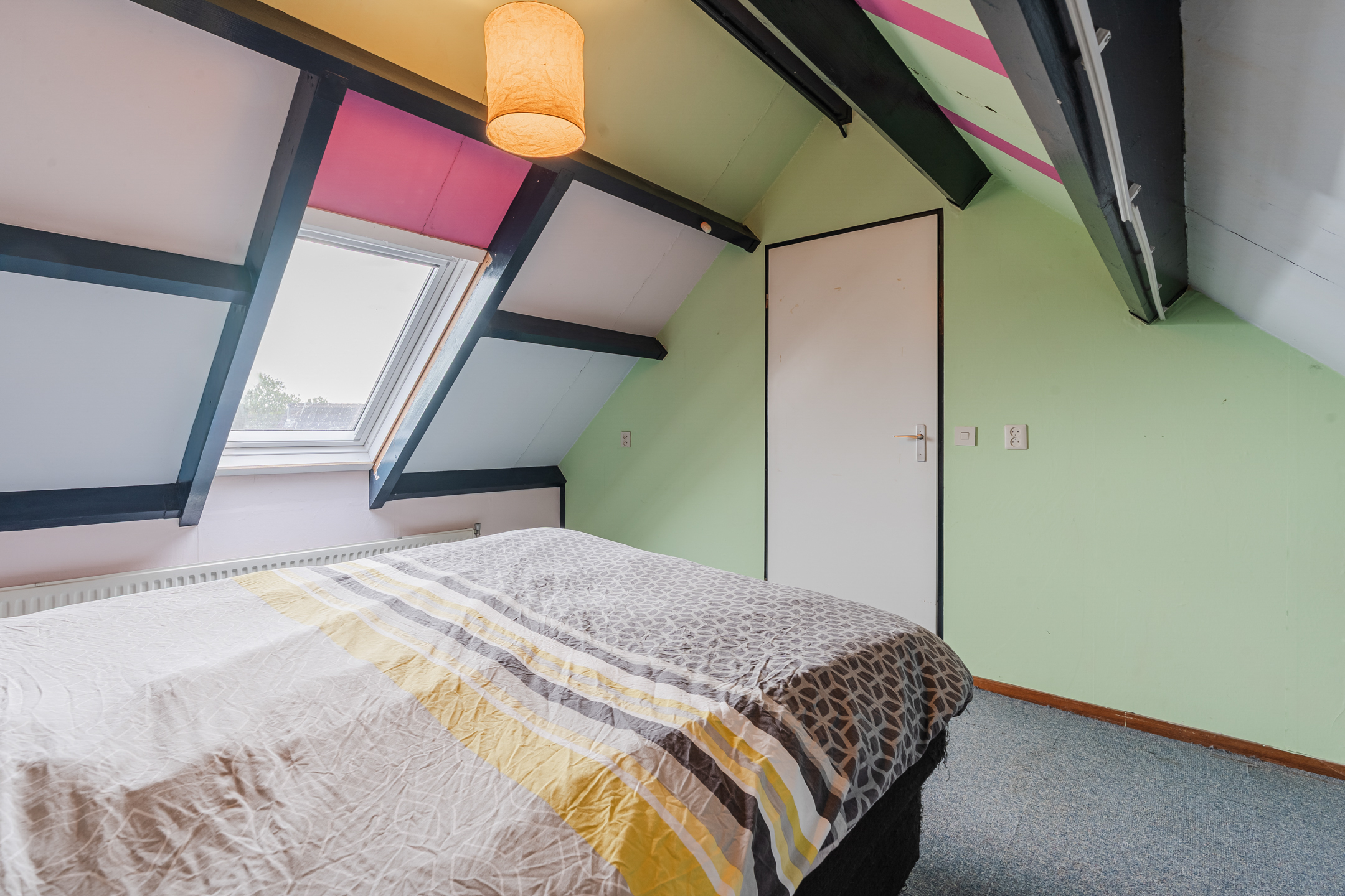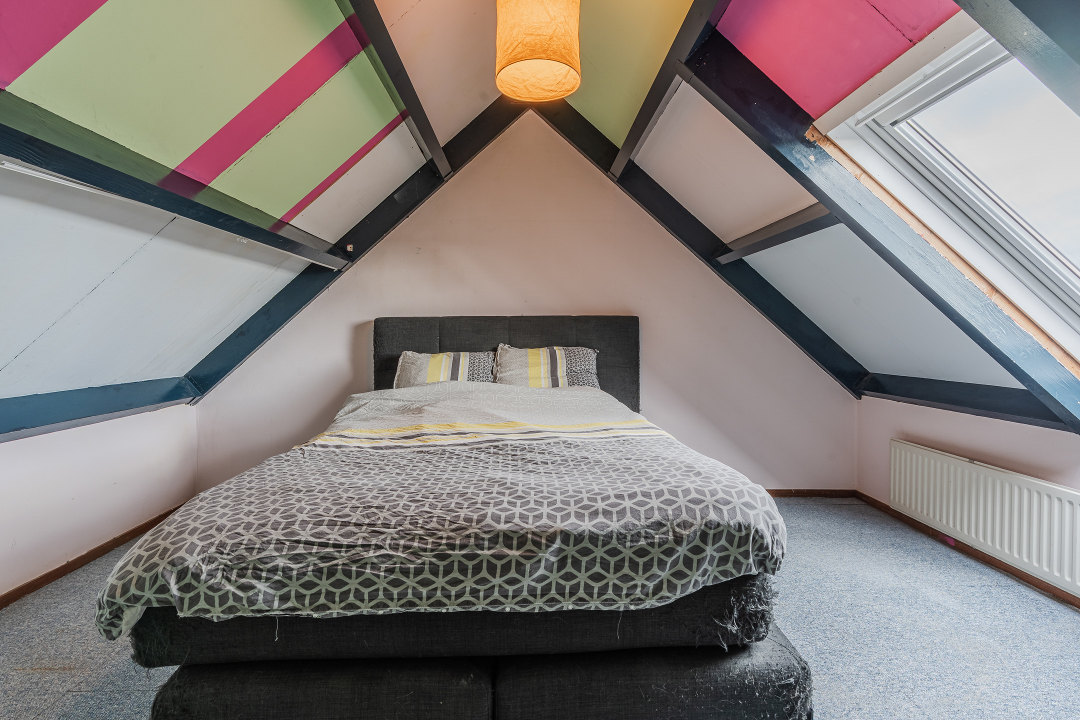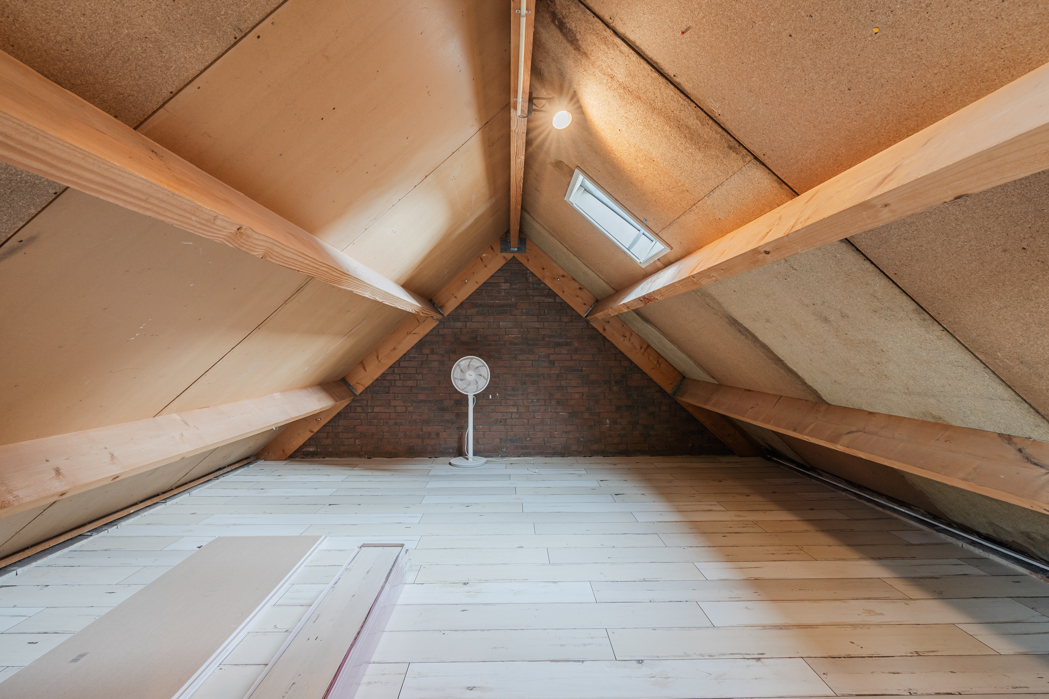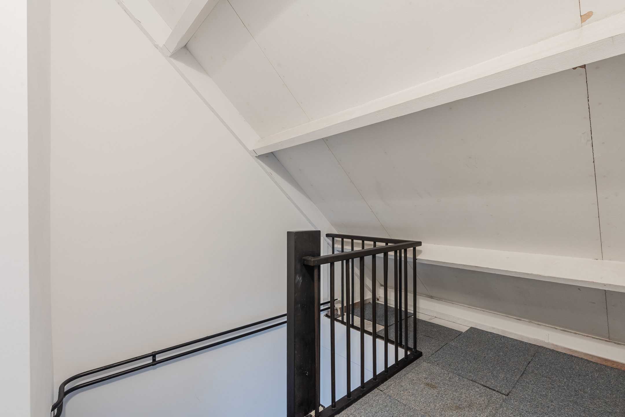 Via de vaste trap bereik je de tweede verdieping met overloop, een berging met de Cv-ketel (2023) en een slaapkamer.