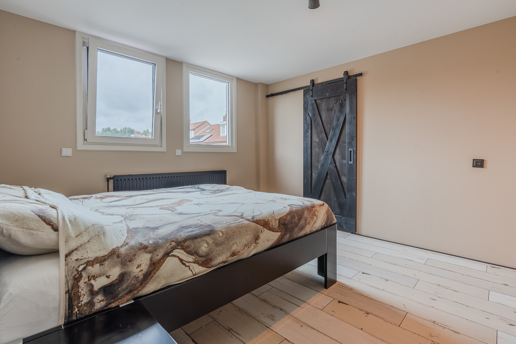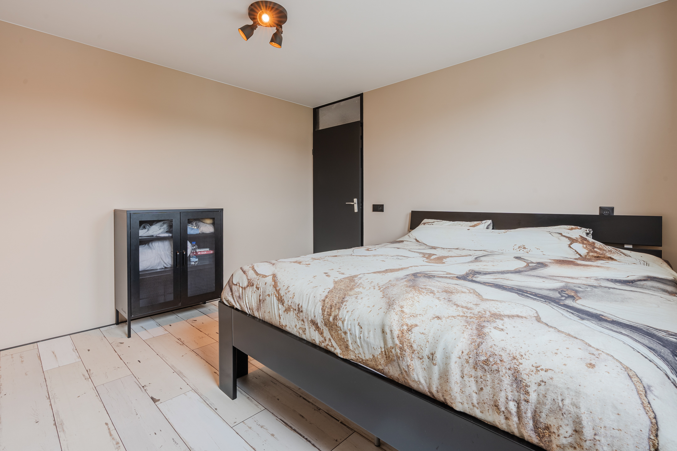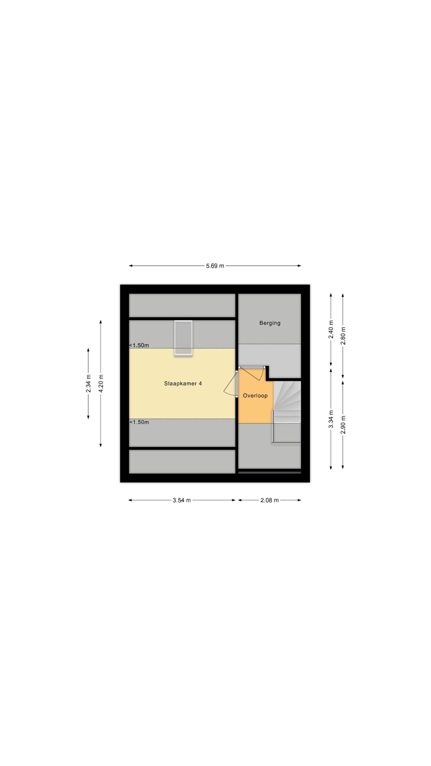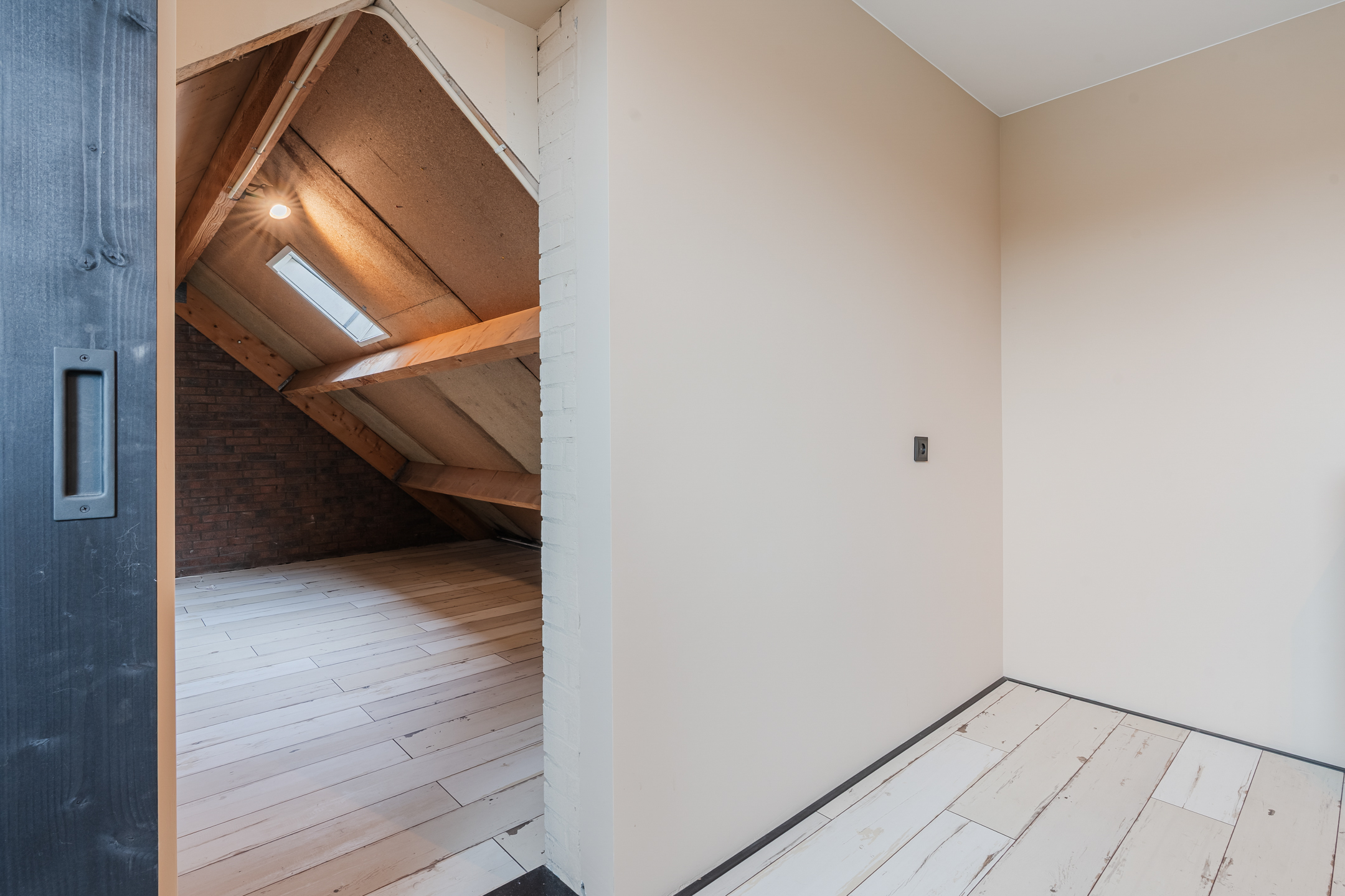 Via de vaste trap bereik je de tweede verdieping met overloop, een berging met de Cv-ketel (2023) en een slaapkamer.