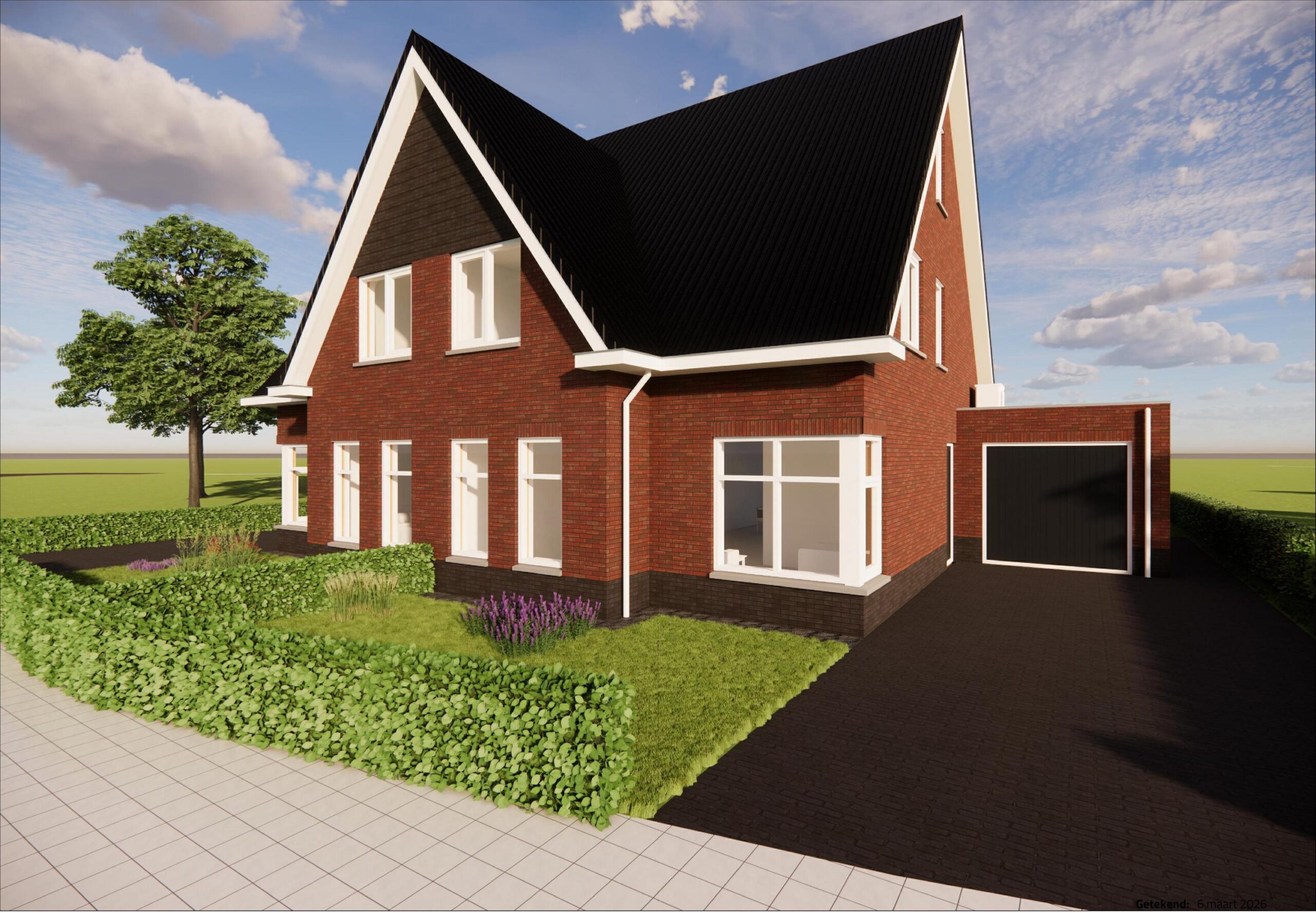 De tweekapper op kavel K6 is praktisch en ruim opgezet. Op de verdiepingen is ruimte voor meerdere slaapkamers en een complete badkamer. Het geïsoleerde bijgebouw biedt extra opslag of hobbyruimte.
