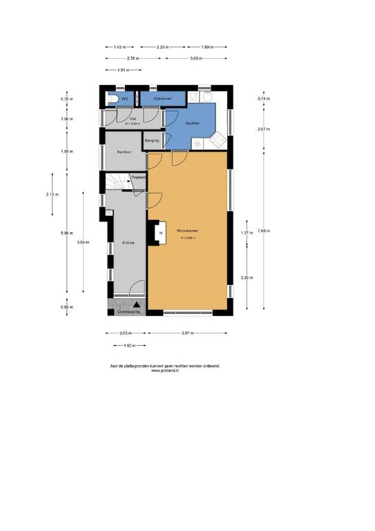 Begane grond: hal/ entree, woonkamer, opkamer, moderne dichte keuken, hal naar de achteruitgang met toilet en bijkeuken voor witgoedaansluiting.