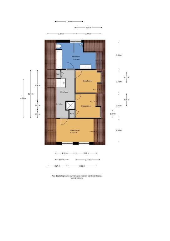 Eerste verdieping: Overloop, 3 slaapkamers, badkamer met bad, douche en toilet. Veel bergruimte aanwezig